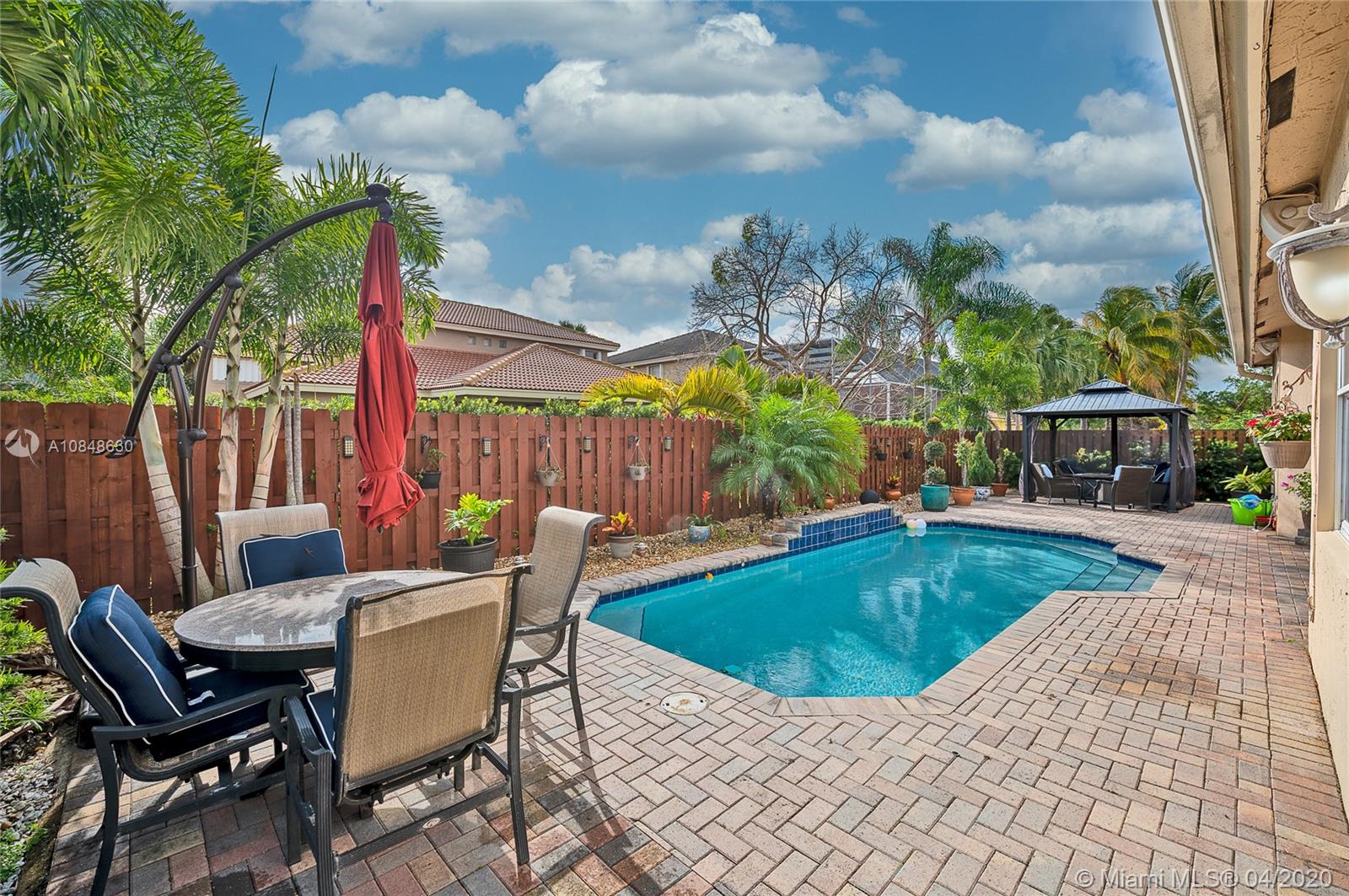 COME ENJOY THIS BEAUTIFUL 4 BEDROOM/3 BATH POOL HOME LOCATED IN THE GATED COMMUNITY OF EMERALD ESTATES IN WESTON! THIS HOME BOASTS AN OPEN AND SPACIOUS LAYOUT WITH NATURAL LIGHTING THROUGHOUT. UPDATED KITCHEN, GRANITE COUNTERS, STAINLESS STEEL APPLIANCES AND SEPARATE BREAKFAST AREA. KITCHEN OPENS UP TO A HUGE FAMILY ROOM OVERLOOKING THE POOL/PATIO AREA. MASTER BEDROOM FEATURES LARGE WALK-IN CLOSET AND UPDATED SHOWER . PAVERS SURROUND THE ENTIRE HOME, CHARMING POOL AREA GREAT FOR ENTERTAINING. GREAT LOCATION, YOU CAN ACCESS THE COMMUNITY FROM WESTON ROAD (24H GUARD GATE ACCESS) OR SOUTH POST RD. (RESIDENTS ONLY ACCESS)