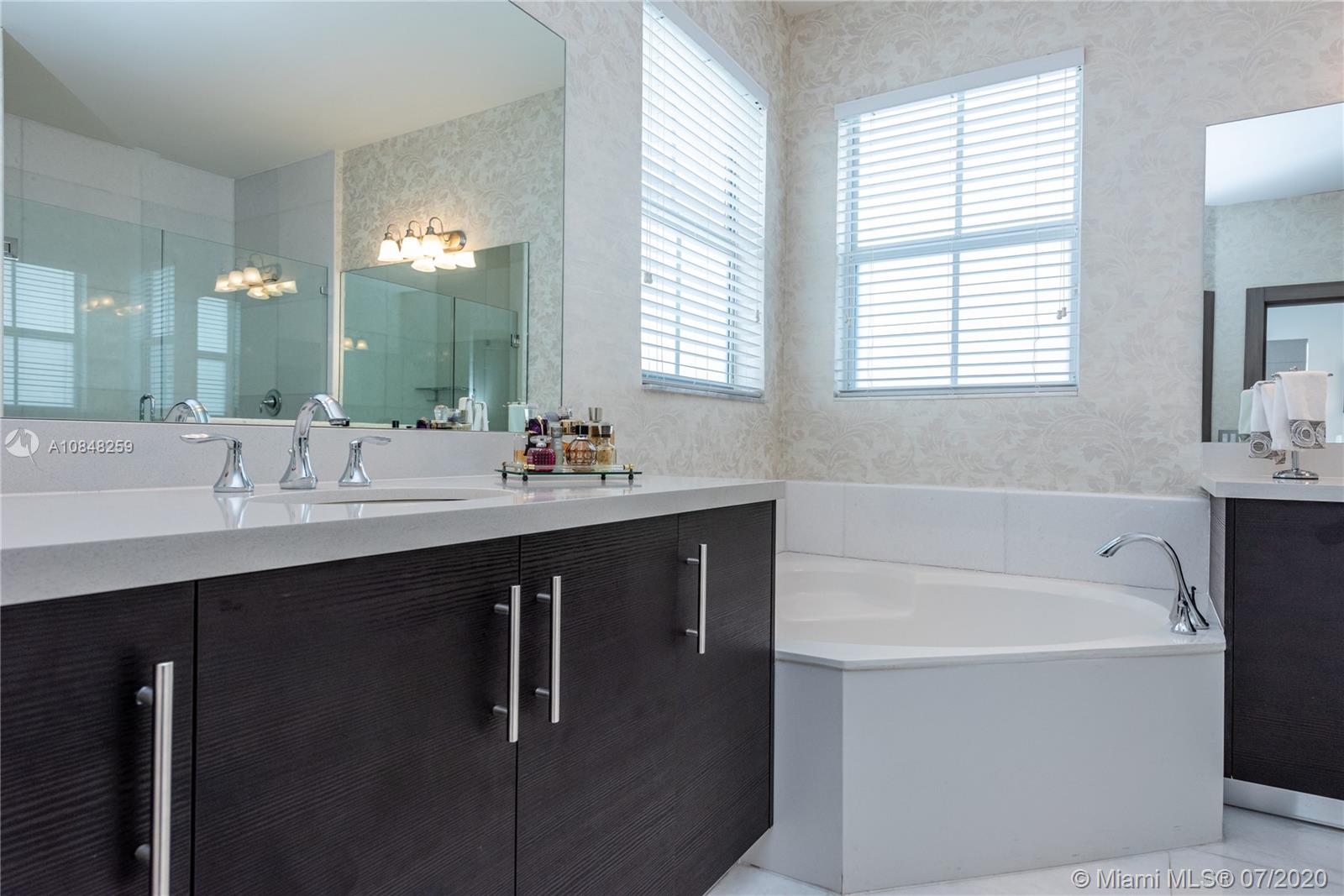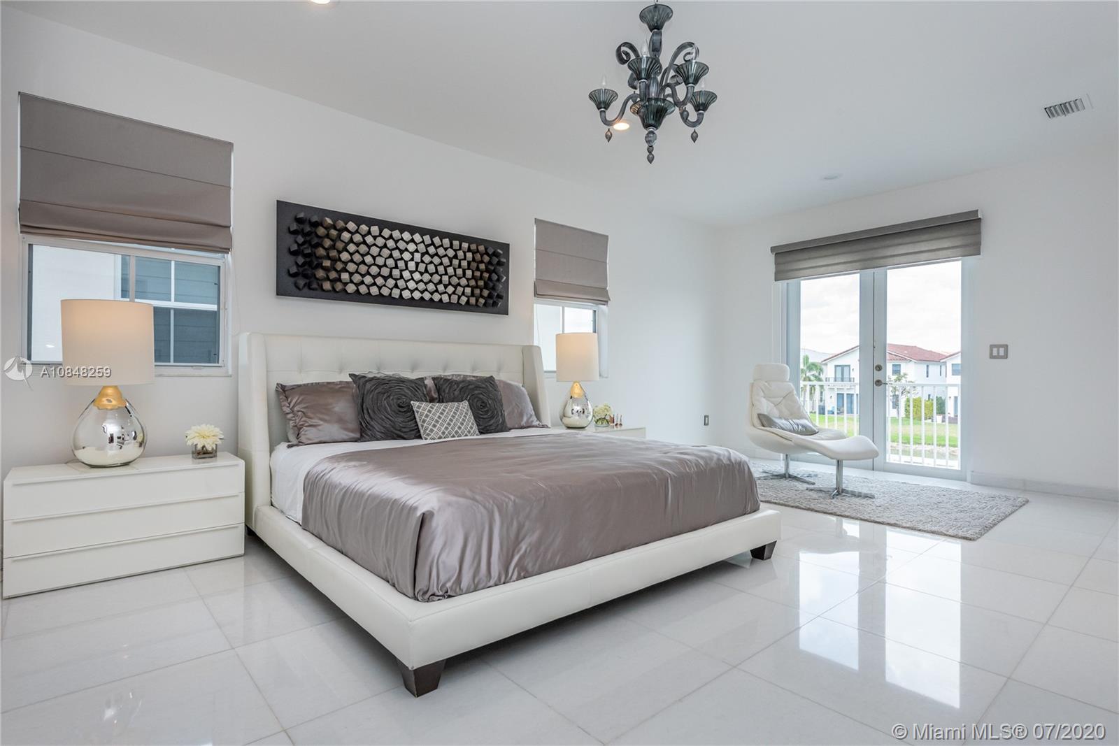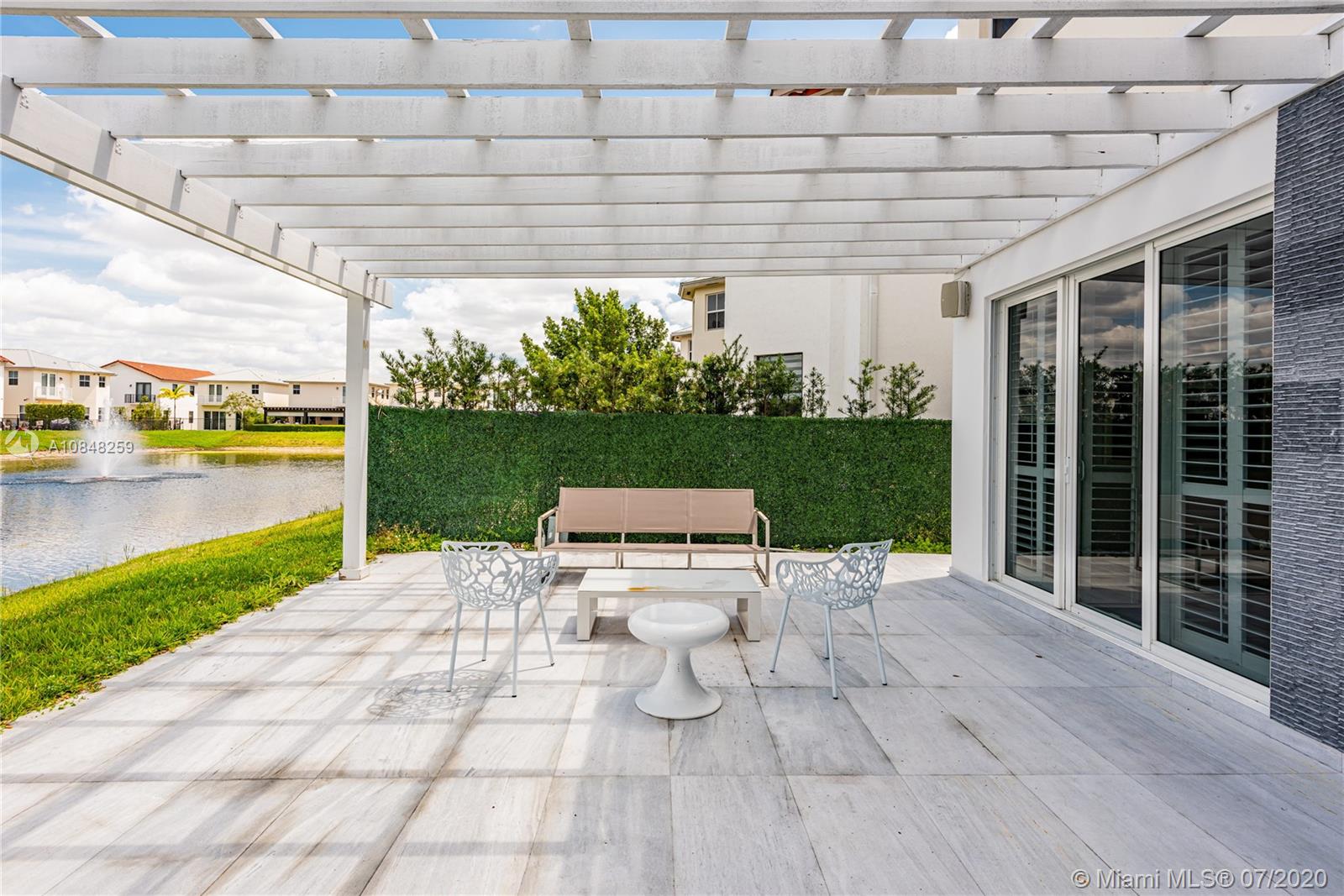 REDUCED FOR A QUICK SALE -Nestled in the heart of Doral, Vintage Estates is a beautiful community with amenities to enjoy. Pools & playgrounds to a gym and saunas. Within walking distance, our residents enjoy the convenience of two shopping malls and various restaurants to choose from. This unique largest model in Vintage features 5 bedroom & 4 full baths. Totally remodeled high-end touches. White marble throughout, modern glass and stainless steel staircase. Impact windows throughout, Italian contemporary closets cabinetry and doors with Stainless S handles, Hunter Douglas windows treatments, black out in all bedrooms, motorized in the stairs and plantation shutters downstairs to the deck/patio area. Smart Lighting Dimmer system.Luxurious totally equipped Summer Kitchen Overlooking lake.