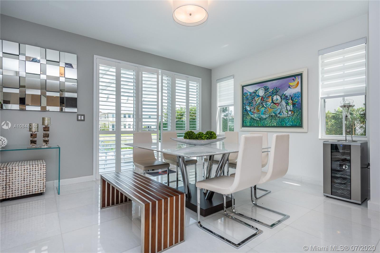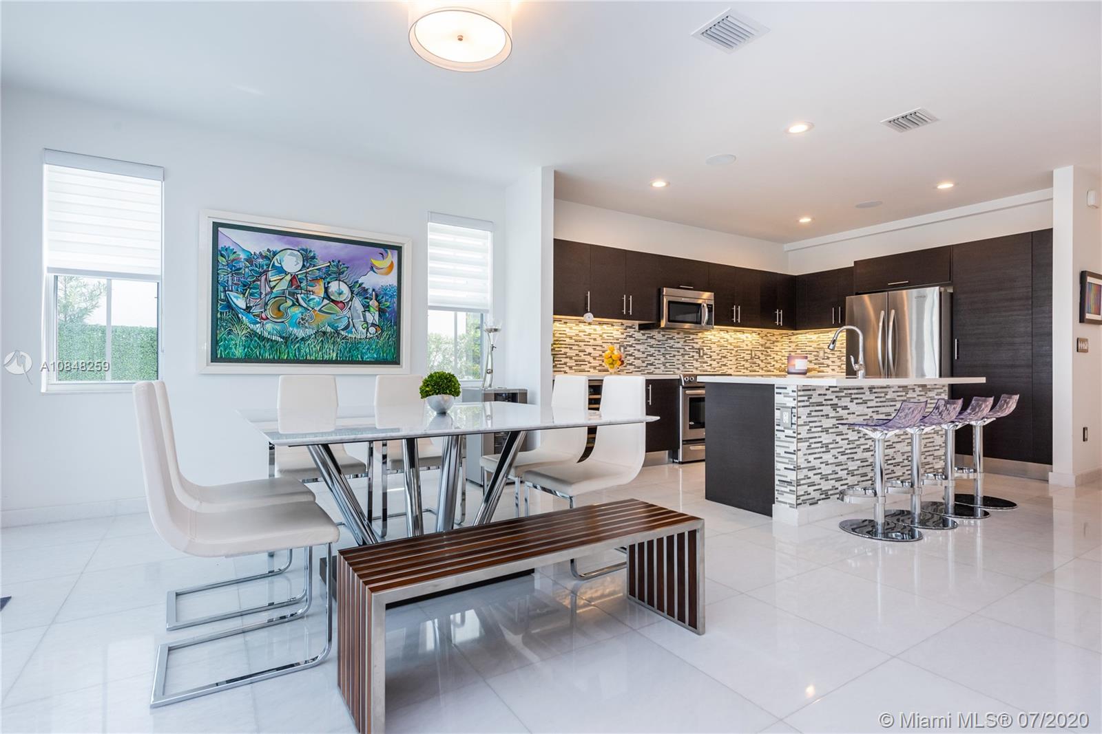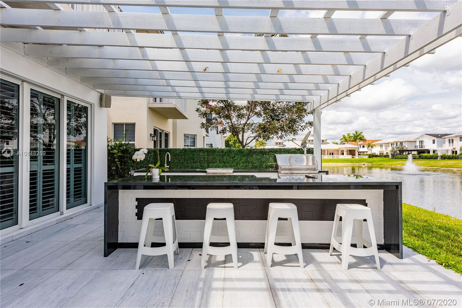REDUCED FOR A QUICK SALE -Nestled in the heart of Doral, Vintage Estates is a beautiful community with amenities to enjoy. Pools & playgrounds to a gym and saunas. Within walking distance, our residents enjoy the convenience of two shopping malls and various restaurants to choose from. This unique largest model in Vintage features 5 bedroom & 4 full baths. Totally remodeled high-end touches. White marble throughout, modern glass and stainless steel staircase. Impact windows throughout, Italian contemporary closets cabinetry and doors with Stainless S handles, Hunter Douglas windows treatments, black out in all bedrooms, motorized in the stairs and plantation shutters downstairs to the deck/patio area. Smart Lighting Dimmer system.Luxurious totally equipped Summer Kitchen Overlooking lake.
