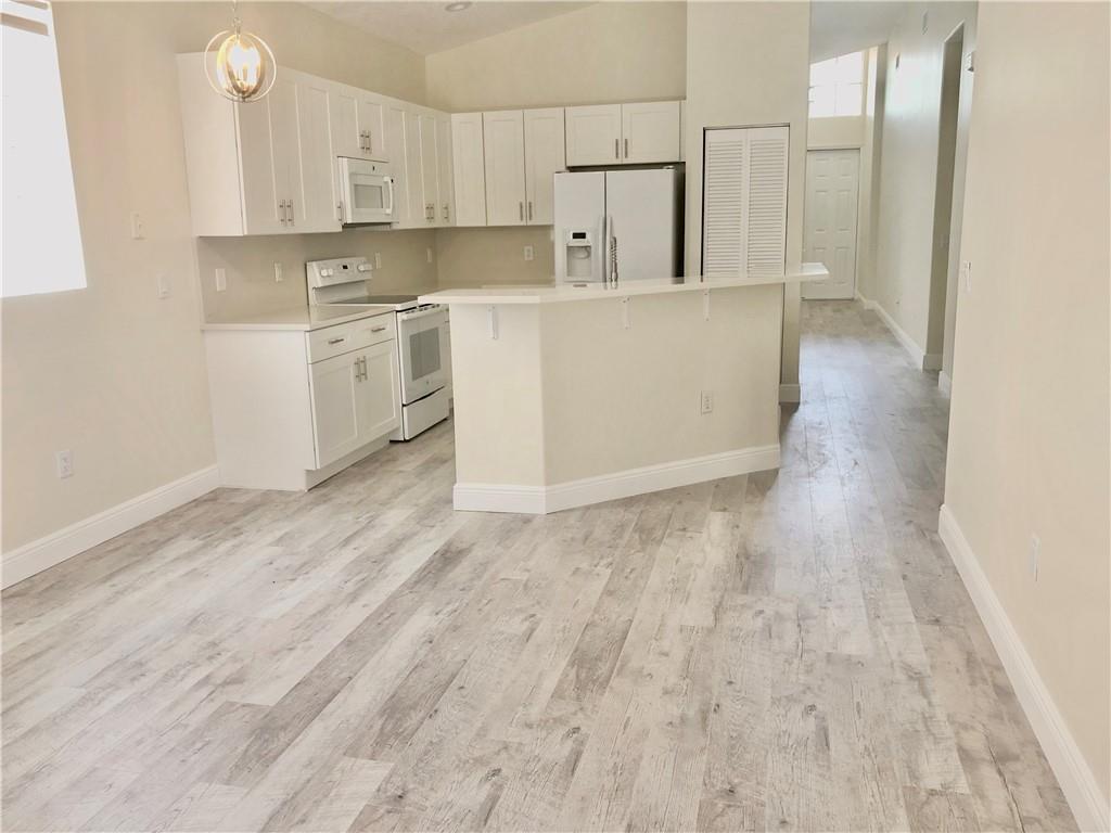 Easy to view this lowest priced 4 bedroom one story house in Wyndham Lakes! Gated community. BRAND NEW kitchen cabinets with beautiful quartz countertops! / NEW ROOF installed Dec 2018 / NEW AIR CONDTIONING-installed April 2020 / Large open kitchen. Bright and airy with volume ceilings in all rooms. Both bathrooms are remodeled with NEW tile and vanities. NEW flooring throughout the house. Inside Laundry Room. New impact rated front door, Hurricane shutters, Freshly painted interior and exterior. Two car garage. Low maintenance fee of only $80 per month. Great Schools, Sidewalks, BEAUTIFUL COMMUNITY POOL!