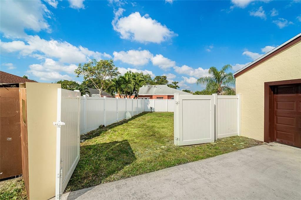 This 3/2.5 Home has over 2000 square feet and is ready for a new buyer! Surrounding schools K-12 all A-Rated. This over-sized property has brand new vinyl fencing, brand new A/C Unit, brand new Kitchen appliances with a remodeled Kitchen with wood cabinets, granite counters, skylight, freshly painted interior and exterior. New French doors installed from dining room to back patio as well as the living room. Large walk-in closets in master with updated bath that includes dual sinks and a walk-in shower. Plenty of space for a pool or RV parking. Comes with an office space right off the Kitchen. 1 Car Garage replaced door. Large patio, perfect of hosting events. House also comes with Accoridan hurricane shutters front and back. Driveway fits up to 5 cars.