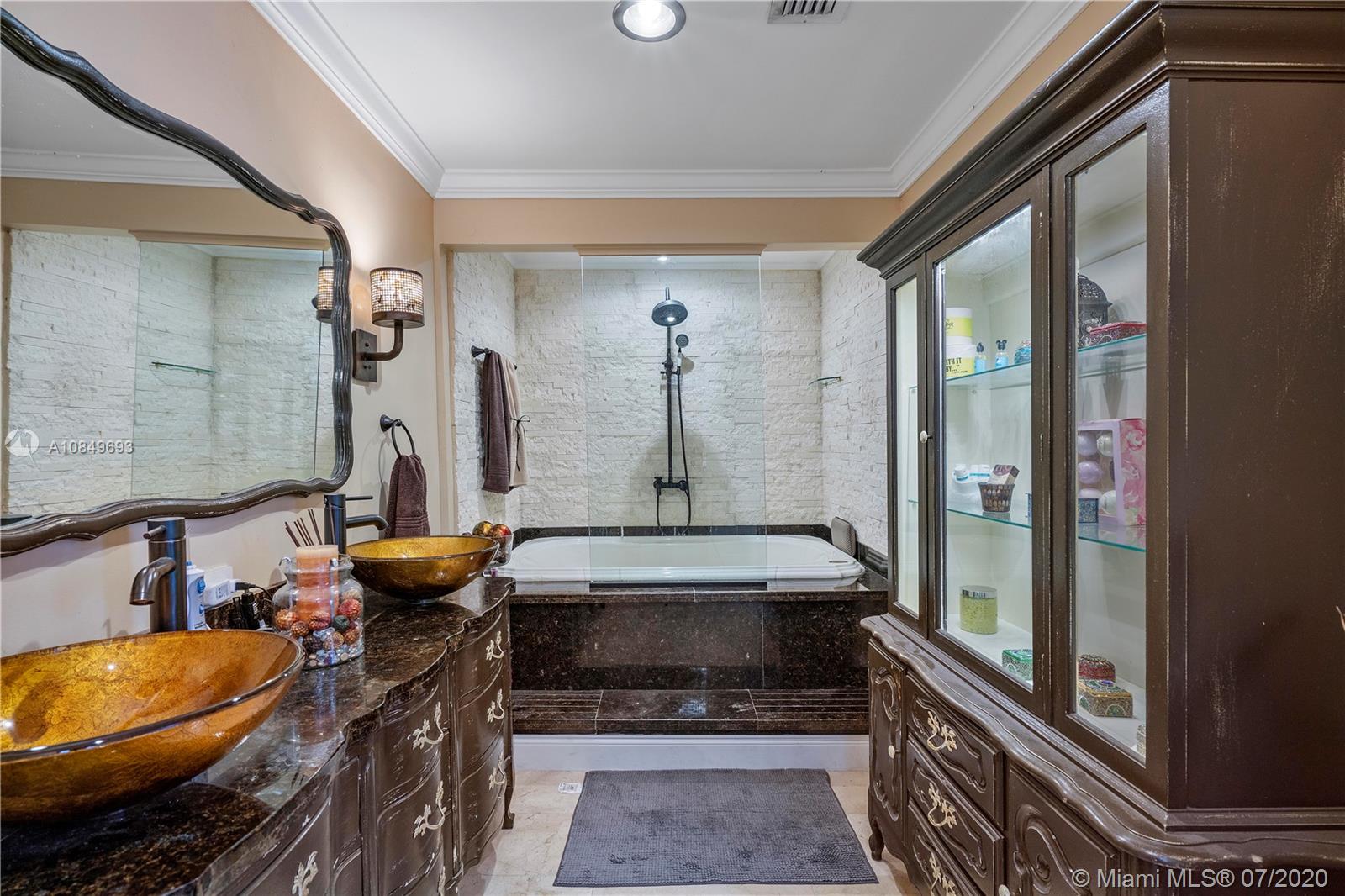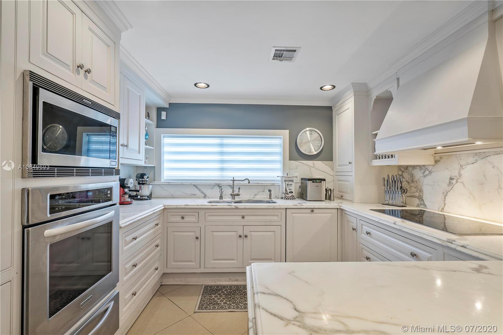 Completely remodeled home with 1997 sqf under ac as per seller , images speak for themselves, Calacatta marble counter tops and back-splash with oven baked painted cabinets and high-end Stainless steel appliances make an amazing kitchen that cannot be duplicated with less than $35k . In addition home features marble bathrooms(master with Jacuzzi tub and double sink) , marble floors thru-out , smooth ceilings , lots of closet space including a 144 sqf walk in closet in master bedroom . All doors and windows are high impact , paver circular driveway with new iron fence , and to top it off you can entertain friends and family in the BBQ area with custom made grill and pizza oven , fridge , freezer , wet bar , beer tab, sound system , see pics please