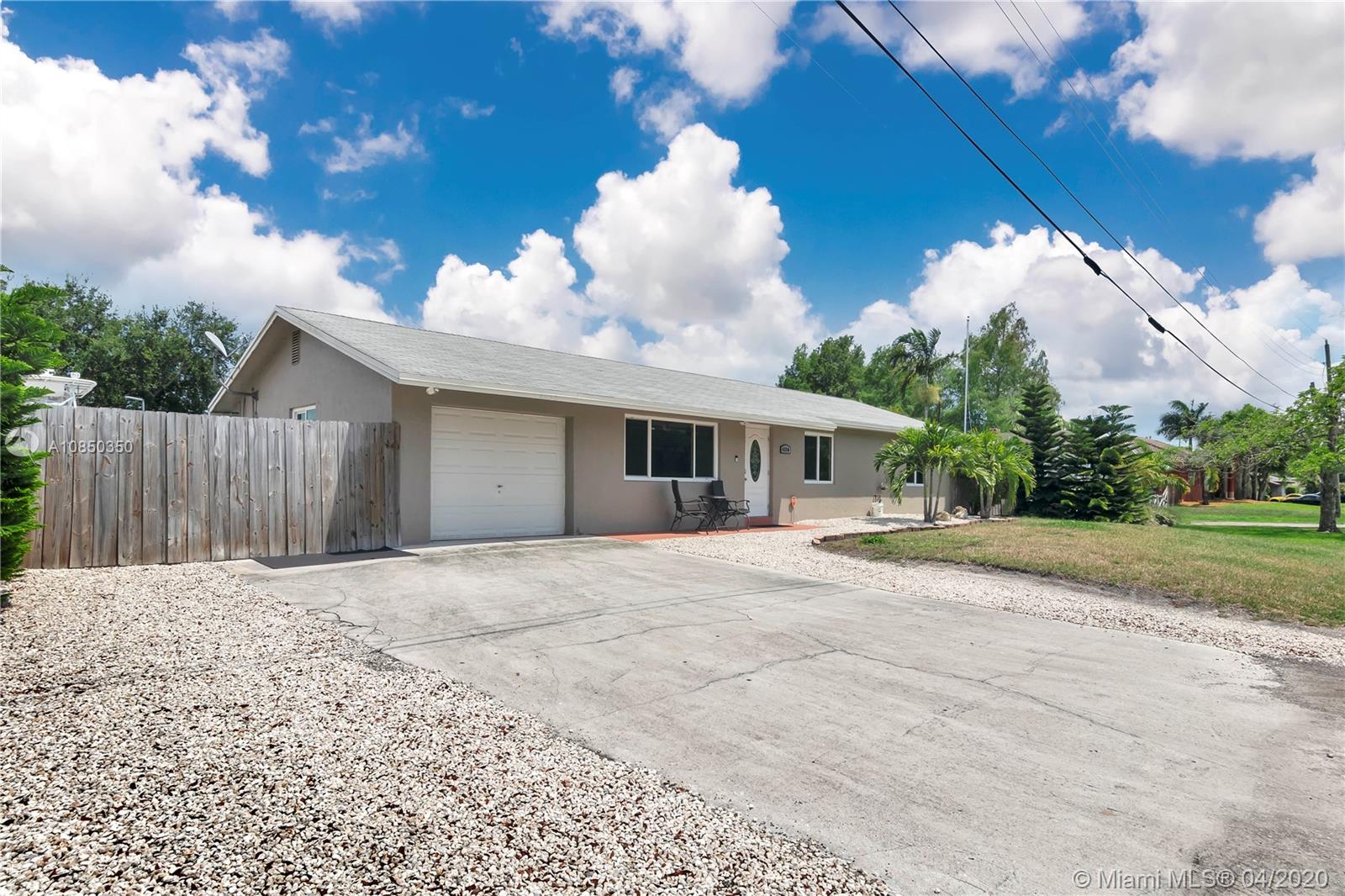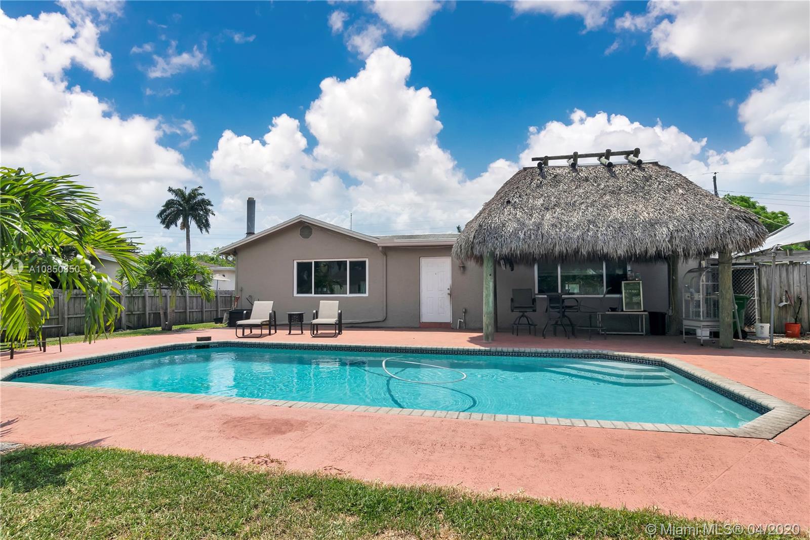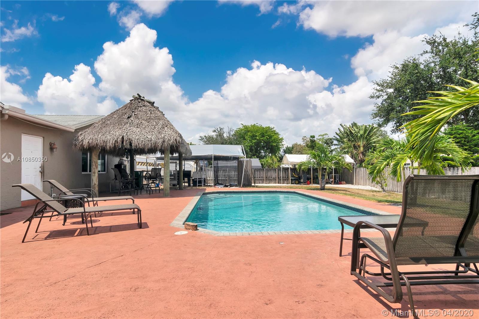 PREMIUM LOCATION!!! Located off University and Orange Drive. NO HOA!!! Large home over 2,200 sq ft. Big property over 1/3 acres with plenty of space to park your boat. The backyard is Paradise with a Tiki Hut and a salt water pool to enjoy in the hot summer days. Backyard also has a brand new shed. The home boast a newer kitchen with large bar. All appliances are fairly new. Master bedroom has a fireplace. All the windows are HURRICANE IMPACT windows. House has security system with camera which stays with the house. Prime location near Nova schools, all the shopping you can desire, restaurants galore within minutes. Close to 595, Turnpike, Fort Lauderdale Airport, and the Hard Rock Casino. Come make this home your Paradise.