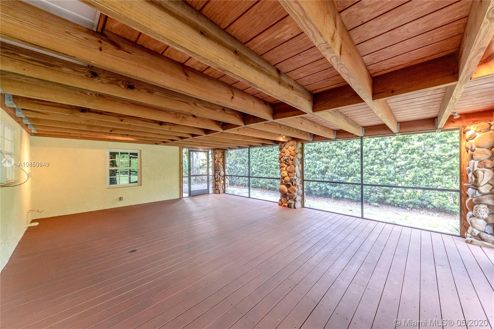 Proudly presenting the best priced 3-bedroom, 2.5 bath acre+ corner lot home in Broward county. Historic Plantation is one of the most sought after neighborhoods around. A rare gem. Country living but in the city. Second time this house has been available to the public. Large screened-in porch, 50 year metal roof, spacious stacked floorplan, extra-large kitchen featuring gas cooktop, gorgeous fireplace, real stone accents throughout, wood beam ceilings, and wood floors. This home can easily be converted into a 4-bedroom dwelling. Significantly large garage space hosts a workshop area. Old Florida charm in attractive East Plantation— park-like yard, oak trees lining the property, a real beauty.