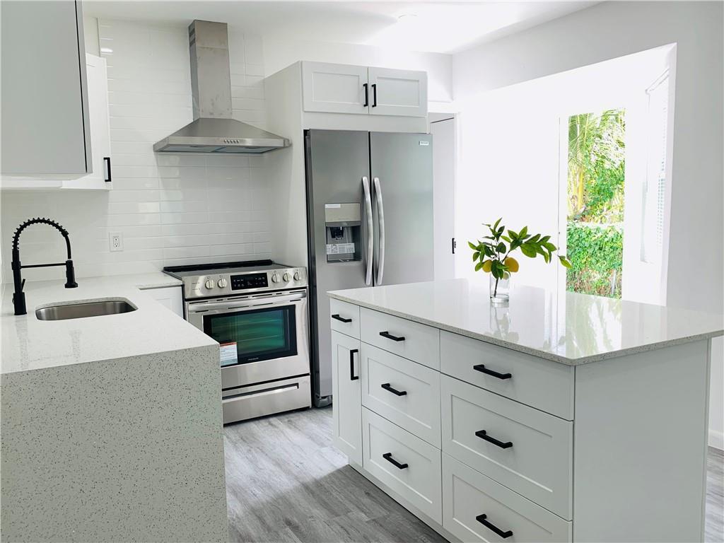 Beautiful clean modern designer style with everything completely renovated. Move in ready! Your new home awaits. Brand new roof in the process of being installed. This house has a brand new Kitchen with quartz waterfall counters and a moveable island. Remodeled bathrooms, new engineered waterproof floors, recessed lighting, hurricane impact windows and doors, brand new central AC, new tankless water heater and a backyard patio that would be great for entertaining. It has it all on a corner lot located in the heart of it all! This property is conveniently located near commuting arteries, shopping, dining and entertainment venues. Don't miss out on this opportunity, make your appointment today.