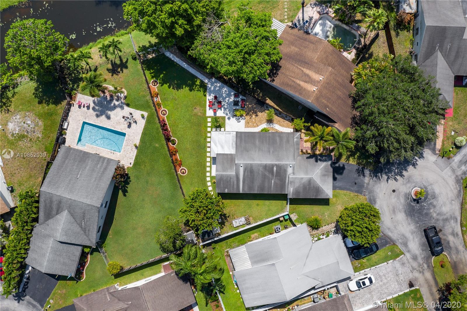 Adorable & Affordable with HUGE waterfront lot! Over $36,000 in recent upgrades including gorgeous Bamboo wood floors throughout ($6500) More upgrades include Impact Windows & Slider ($16,000) Rated Garage door. New vanity in master bath, 3 years old appliances, knock down ceilings & the list goes on and on. This home is in pristine turn-key condition. Open layout with big eat in remodeled kitchen & updated baths. The back yard on this home is UNBELIEVABLE! Over 10,000 sf (most in the back!) of lush green grass and landscaping with garden sitting areas & walk ways. BIG covered screened patio & peaceful views & breezes from the canal. Bring your fishing pole! Fenced property on cul de sac with extra parking area. Perfect location near schools, shops & highways. Great Davie Schools!
