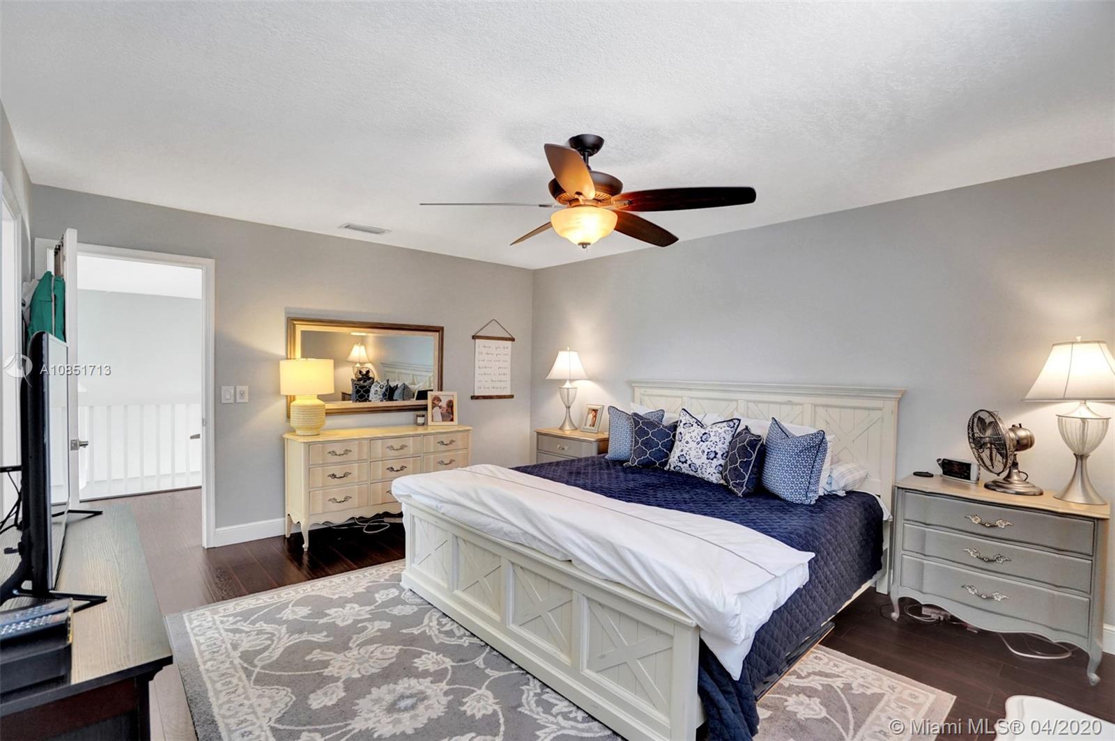 NEVER SETTLE FOR LESS! Neighborhood of Bridgewater III is tucked away & surrounded by lush landscaping, private community pools, beautiful lakes & close walking distance to local parks & tennis. One of the largest models & centrally located on a cul de sac. Roughly 2000 sqft with 4 bedrooms + bonus room & 3 renovated bathrooms. Most notable feature is the soaring vaulted ceiling with open staircase, which adds volume to the homes family room. Fantastic ground floor bonus room perfect as a home office. Kitchen is tastefully updated with exposure to the backyard for entertaining, complete with custom fire pit & natural wood pergola. Newer hurricane windows/ doors, HVAC system & water heater. Indoor laundry makes it very convenient. Plenty of added storage space. Virtual tour available.