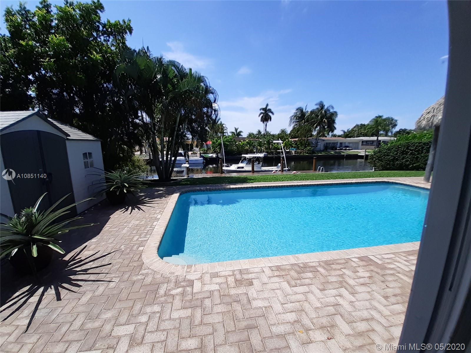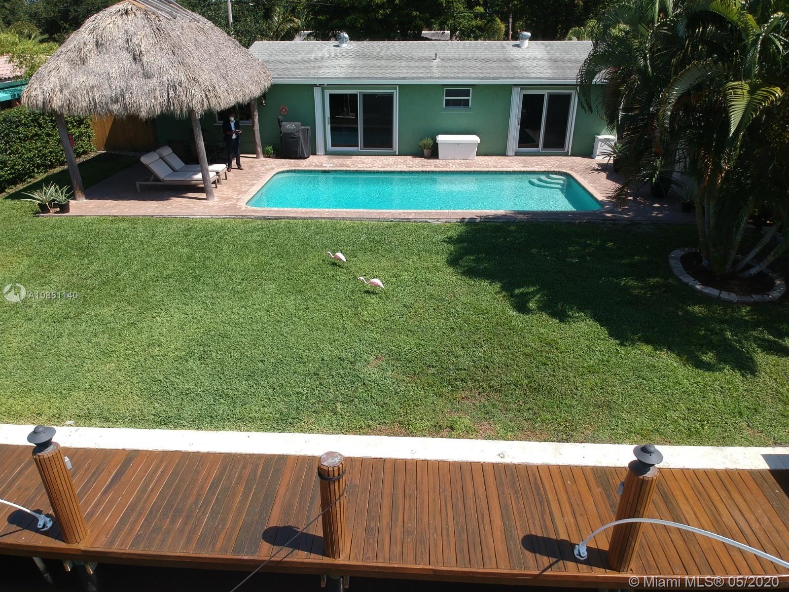 Boaters dream home! Perfectly priced with breathtaking water views and your own luxury dock for fishing. Huge pool and a lovely cypress log Tiki Hut, featuring a large screen tv and a full Bose surround sound system, perfect for entertaining! Move-in ready, this well-maintained home features new impact sliding doors and a beautiful open floor plan. Master bedroom oversees the pool and the dock. Tankless gas water heater for the entire home. Full house gas generator installed. The dock has water & 30 amp service, and a commercial ice machine. LED lighting along seawall. Beautiful large pool with saltwater system. Two sheds for plenty of storage, both sides of the house have a wooden closed fence for total privacy. Kitchen and bathrooms have been upgraded. No HOA for this beautiful property.