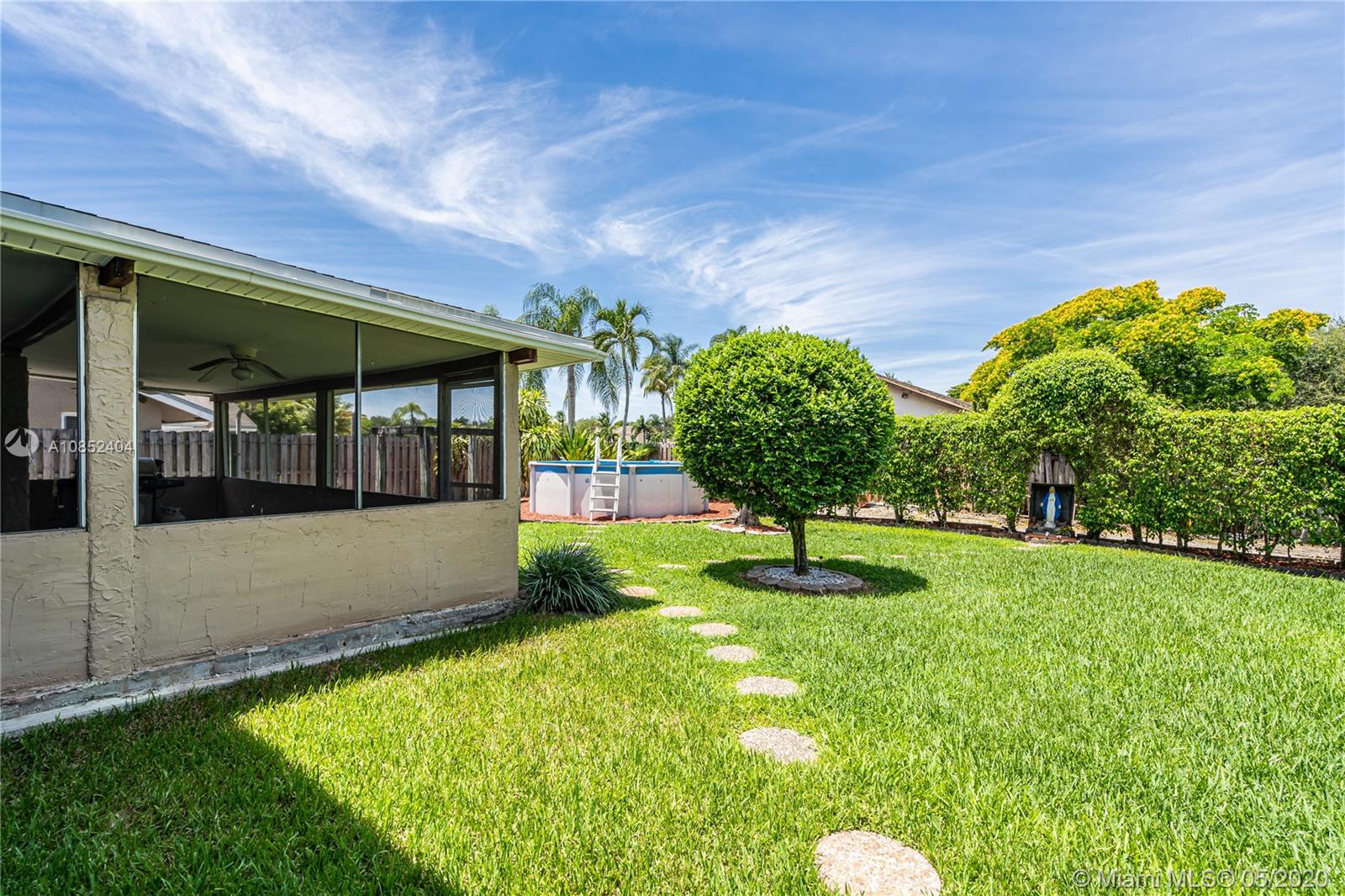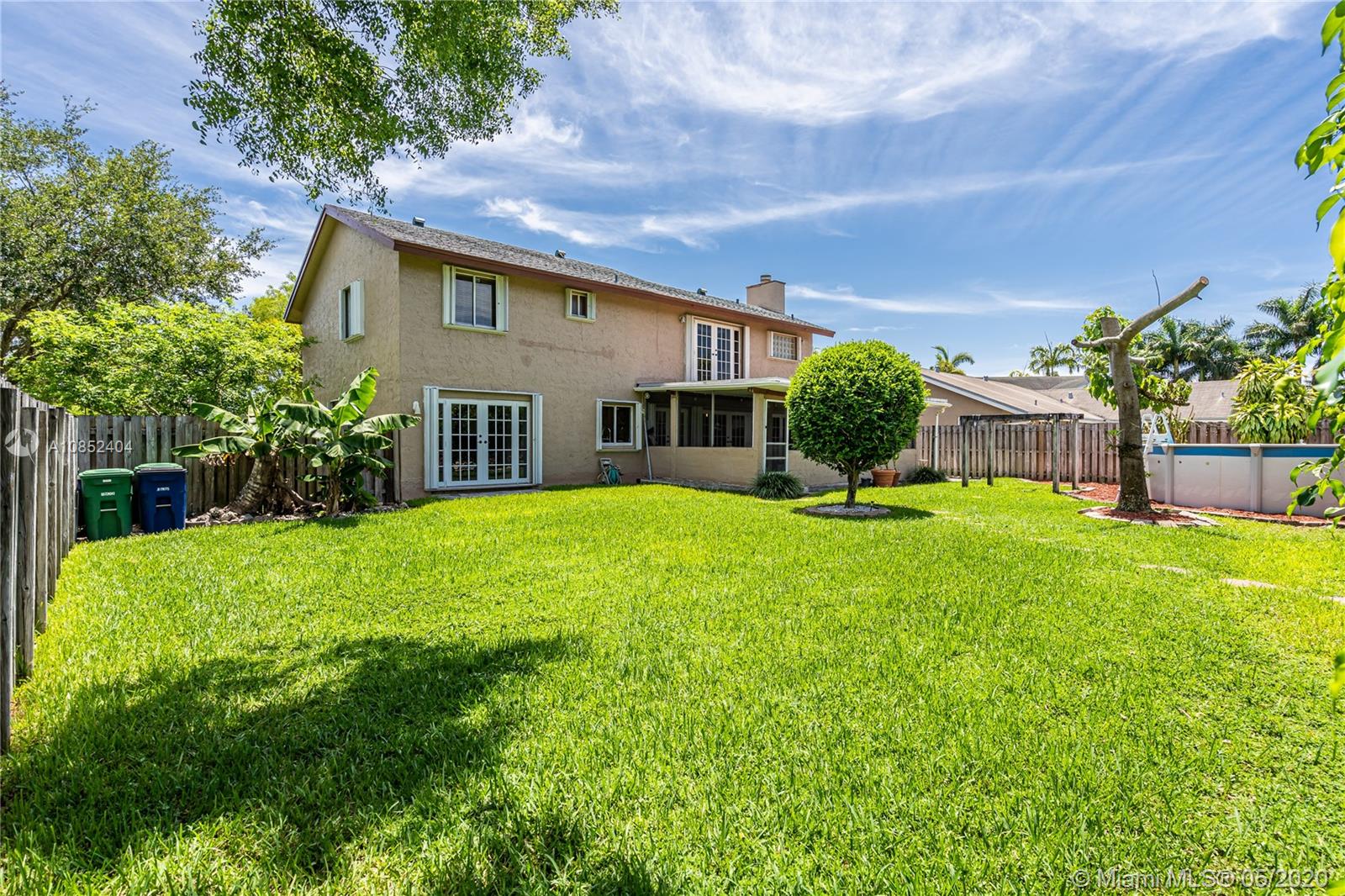Spectacular and private COOPER CITY corner house in a cul de sac with many parking spaces, in more than 9sq ft lot,4 beds,2 1/2 bath,Marble tile on the first floor and ceramic tile on the second floor, new kitchen with granite countertops and appliances, spacious family room, separate living room and dining room, the house boasts a good natural light thought the entire house, big master room with a combination of a jacuzzi and shower, big closets and office, accordion shutters on all windows and doors, enclosed back porch and a large patio with fruit trees like avocado,mango,plum and bananas are the few things that this property brings, PINE LAKE PARK,TREE TOPS PARK*Cooper City SPORT COMPLEX**EXCELLENT SCHOOLS** NEAR I-75 , shopping center, near I-75 food places and many other attractive