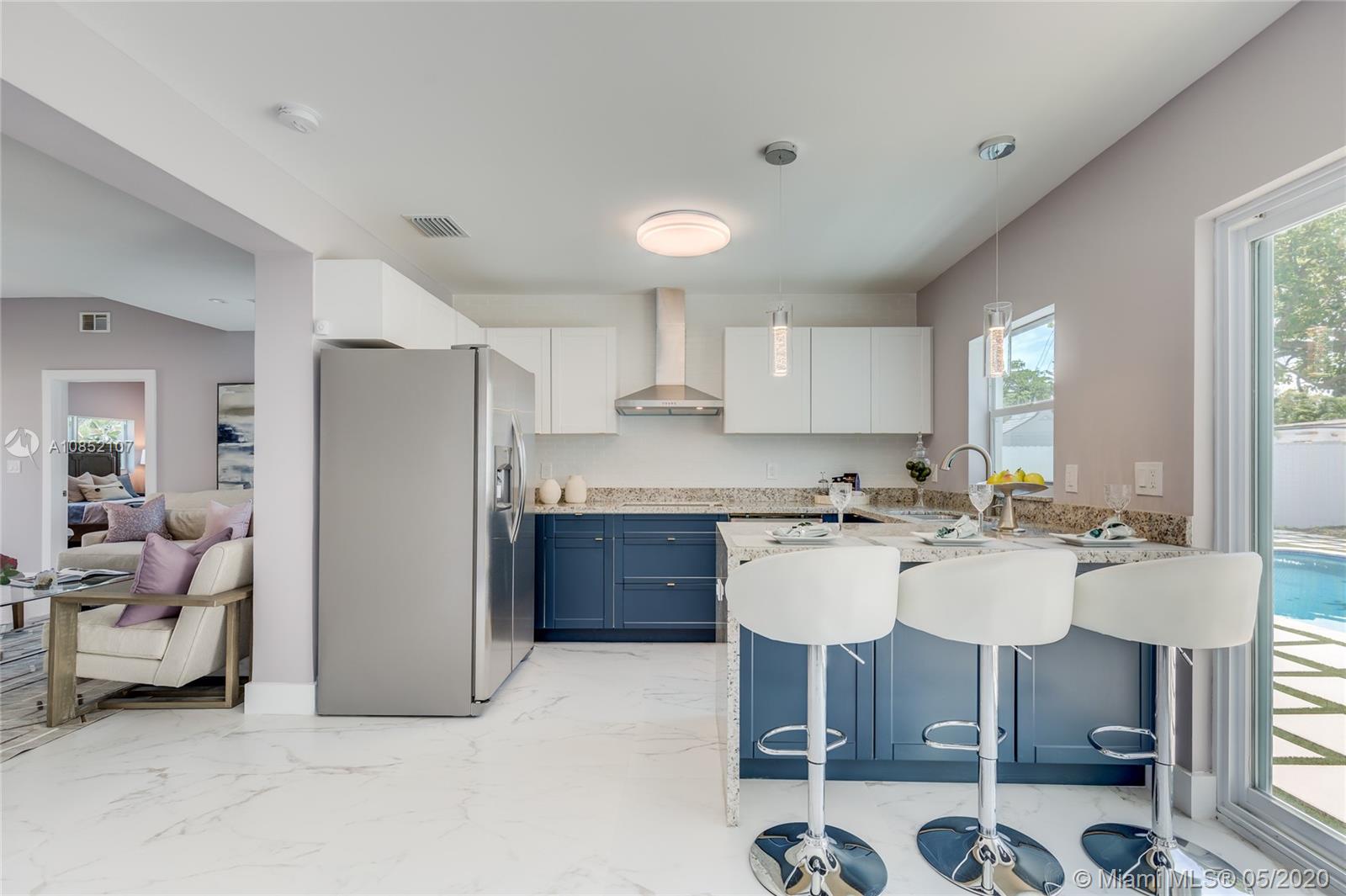 Be the First to Live in this Immaculate Brand New Remodeled Home. New Roof with Warranty, Impact Windows, HVAC, Water Heater, Plumbing, Electrical, Pool equip. All Appliances have Warranties. No Expense Spared! This Home offers a Spacious Open Layout boasting up to 1,900 SF under air. 3 Large Bedrooms & 3 Full Baths including a Junior Suite and generously spacious Master suite with high-end Italian cabinetry in the Baths and Custom Walk-in Closets. Designer Kitchen out of HGTV, Custom Shaker Cabinets, SS Appliances, Quartz Waterfall Counters, and attention to detail down to the Finishes. Laundry Room with a Utility Sink comes with a brand new LG Washer & Dryer. Expansive backyard with an Oversized Pool and huge entertainment area summer kitchen ready w/ hookups. Near to I-95 & the Airport.