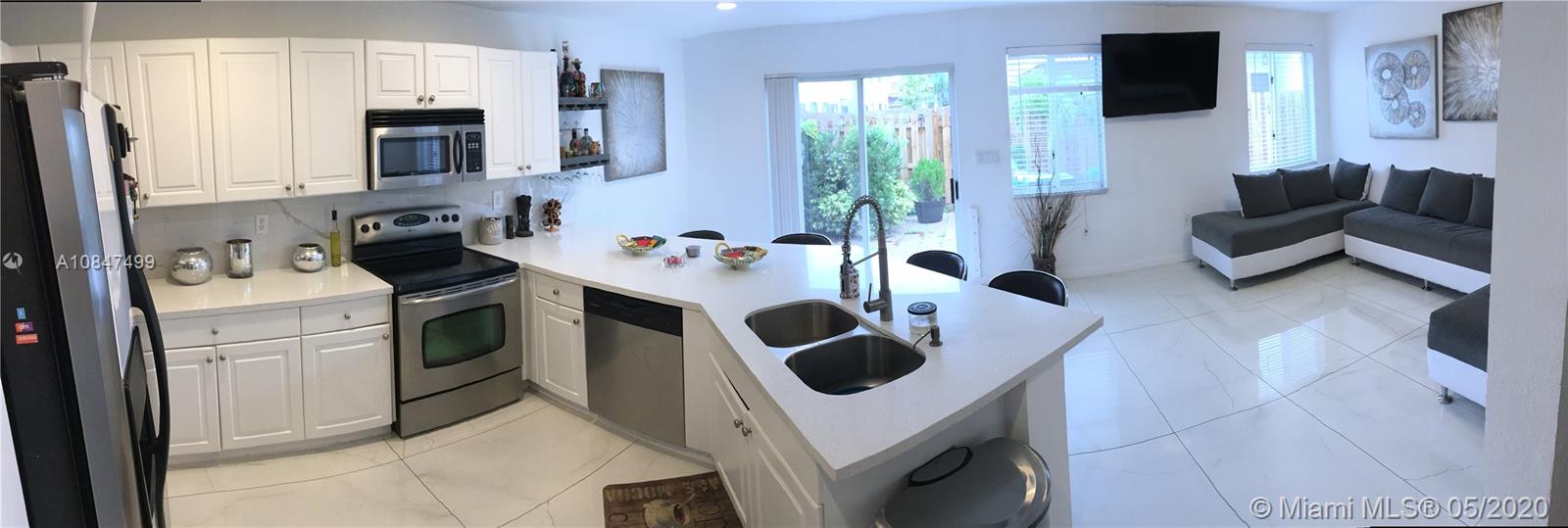 Fully renovated 4-bedroom 3.5 bath townhouse in Doral Landings West. Fall in love with this stunning home with its beautiful upgraded porcelain tile floors downstairs, laminate floor upstairs, bathrooms, quartz countertop in kitchen and master bathroom, stainless steel appliances, in-ceiling speakers and brand-new AC unit. Well maintained gated community with 24-hour security, community pool, children playground, private community park and plenty of visitor parking. Centrally located near restaurants, shopping, entertainment, major highways, MIA airport, excellent private and public schools. Schedule a private viewing today.