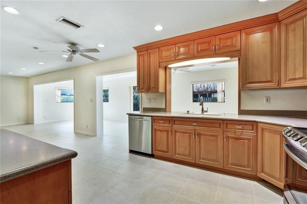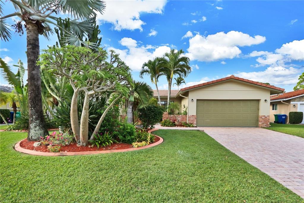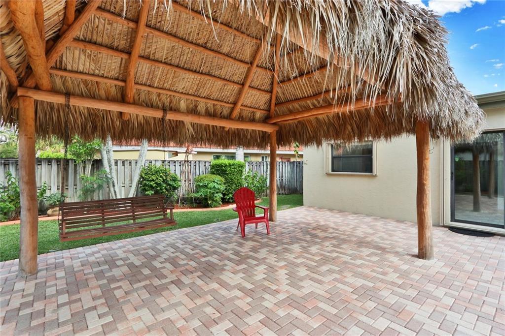 Tropical Paradise! This fully updated home has been freshly painted and ready for it's new family to call home! Featuring an updated kitchen with XL real wood cabinets, new stainless steel appliances, & corian counter tops. Paver brick backyard w/ HUGE tiki hut features a heated pool that was completely remodeled in 2019 featuring new diamond brite & pool tiles. Fully fenced in backyard features lush tropical landscaping. Tile flooring throughout the home - NO CARPET! Accordion hurricane shutters & impact-rated garage door for LOW INSURANCE & hurricane protection. Washer & dryer inside the house (not in the garage). Water heater replaced in 2007, AC replaced in 2008 - bring your toothbrush and move right in!