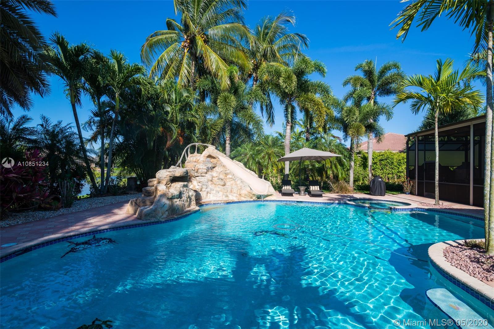 Welcome to your DREAM HOME at the luxurious Riverstone Community. Open and spacious 3-way split floor plan featuring 5 Bedrooms plus a Den, Circular Driveway, and Ornamental water fountain at the front of the home that adds to the amazing curb appeal. Spectacular LAKE views! BRAND NEW CONTEMPORARY STYLE KITCHEN w/ wood cabinets, apron sink, quartz countertops, & multifunctional kitchen island. Elegant Master Suite w/sitting area, 2 walk-in closets w/organizers. BUT WAIT… THE BACKYARD! Soak in the hot tub, take a plunge down the slide to your pool, kick back under the 2 tiki huts, or bake a personal pizza in the pizza oven. It’s your own private tropical retreat! Accordion Shutters. Most private cul-de-sac street. Amazing gated community w/ basketball and tennis courts play areas, and more!