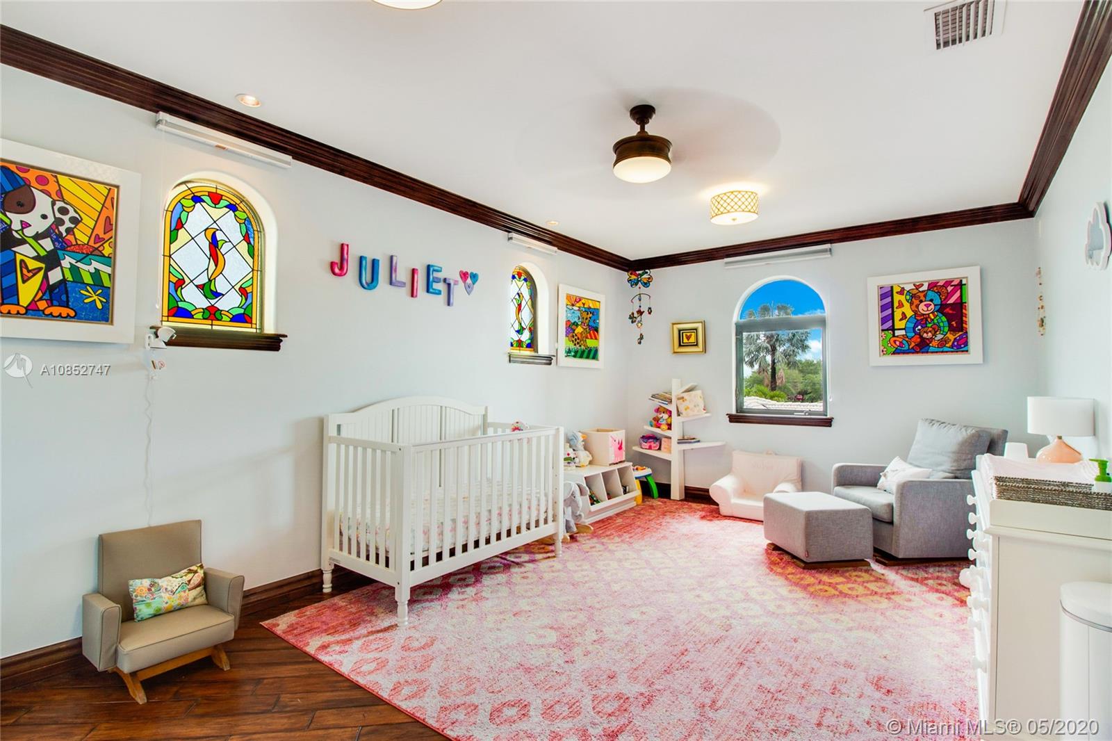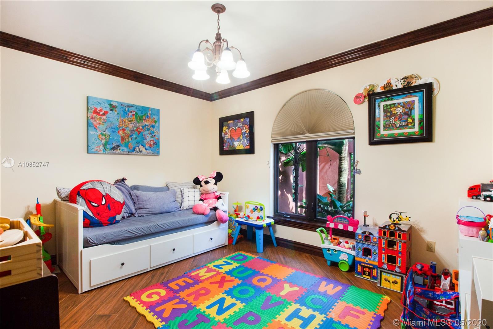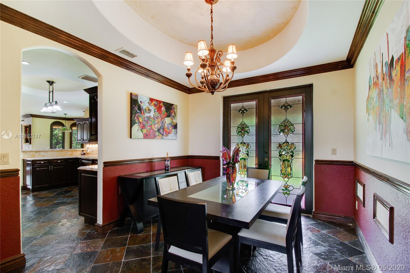 Beautiful, highly upgraded and move-in ready home in sought after Vanderbilt Park-High ceilings-crown molding, custom 10’ solid Mahogany arched doors in picturesque entranceway with stone columns- iron railing spiral staircase.Chef’s kitchen- granite countertops-custom backsplash-high end appliances-huge walk-in pantry, and vibrant stained glass windows/doors.Built-in wet bar-TV entertainment center with indoor/outdoor sound system. All bathrooms upgraded with tile mosaic on walls and natural stone floors. Large walk-in closets with built-ins.All Impact/hurricane doors and windows. Indoor/outdoor security cameras. Wi-Fi enabled alarm system, ACs, entrance swing gate-3 car garage-Architectural landscaping with lighting. Every detail of this house was carefully selected and quality crafted.