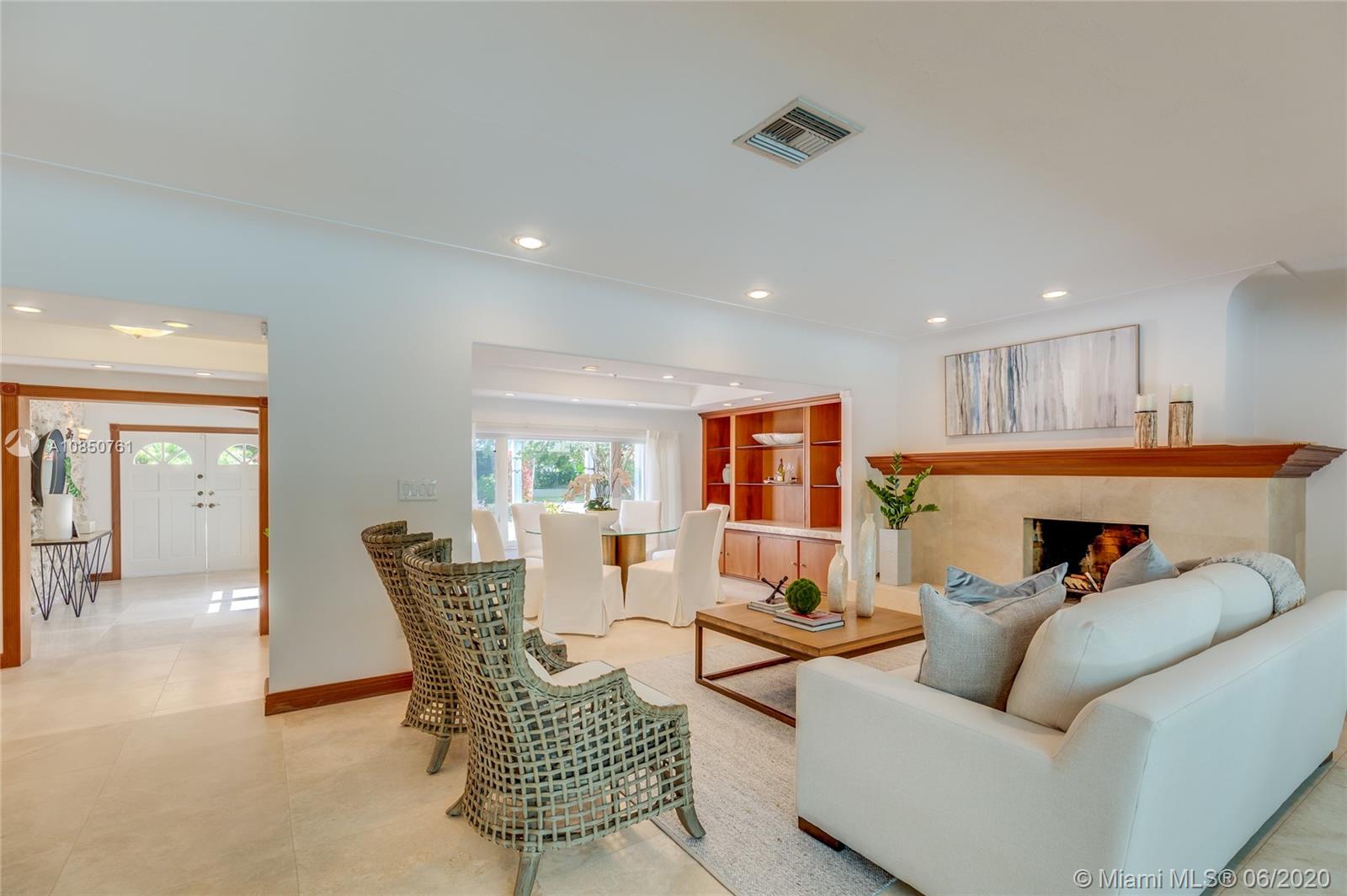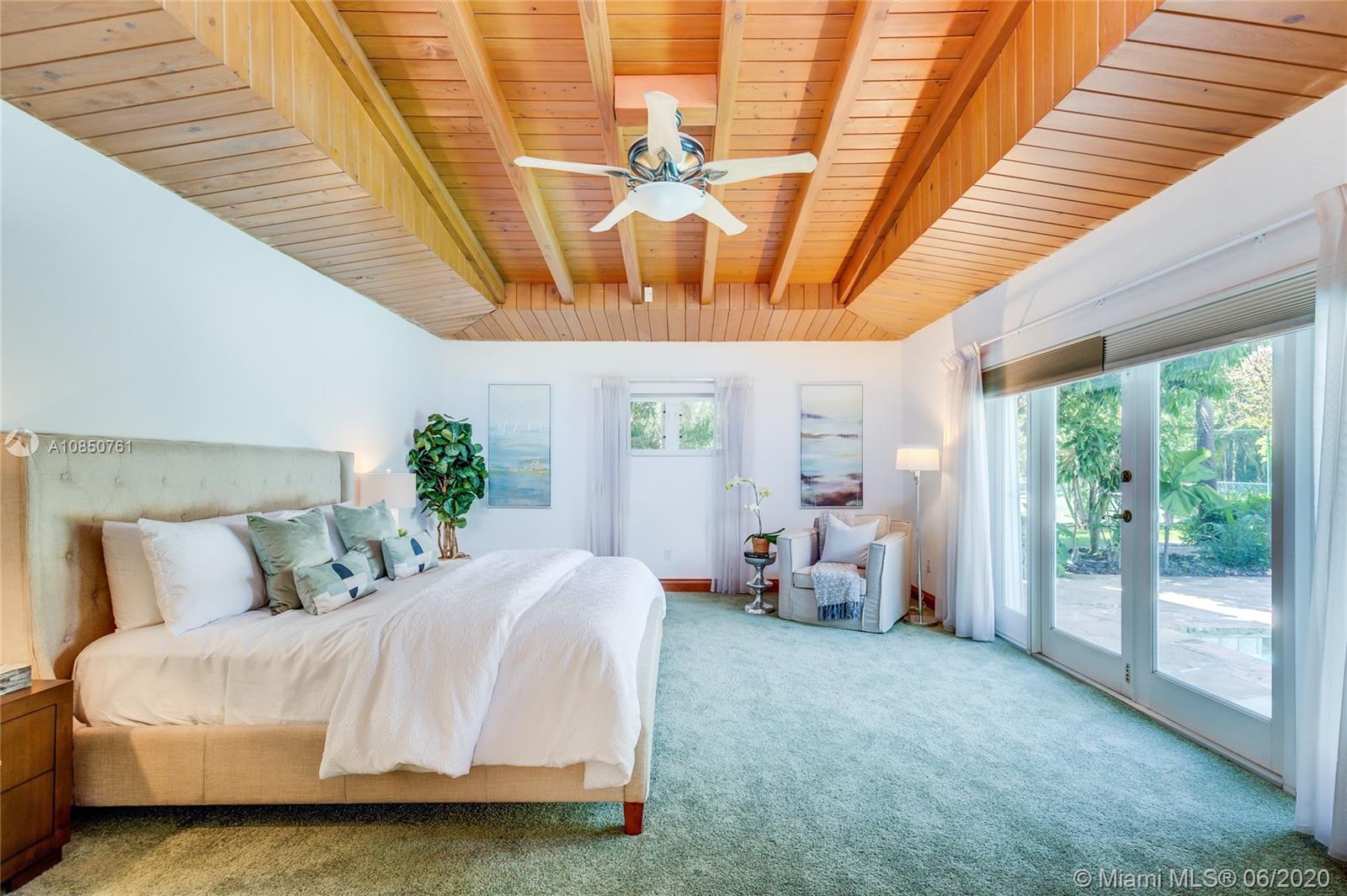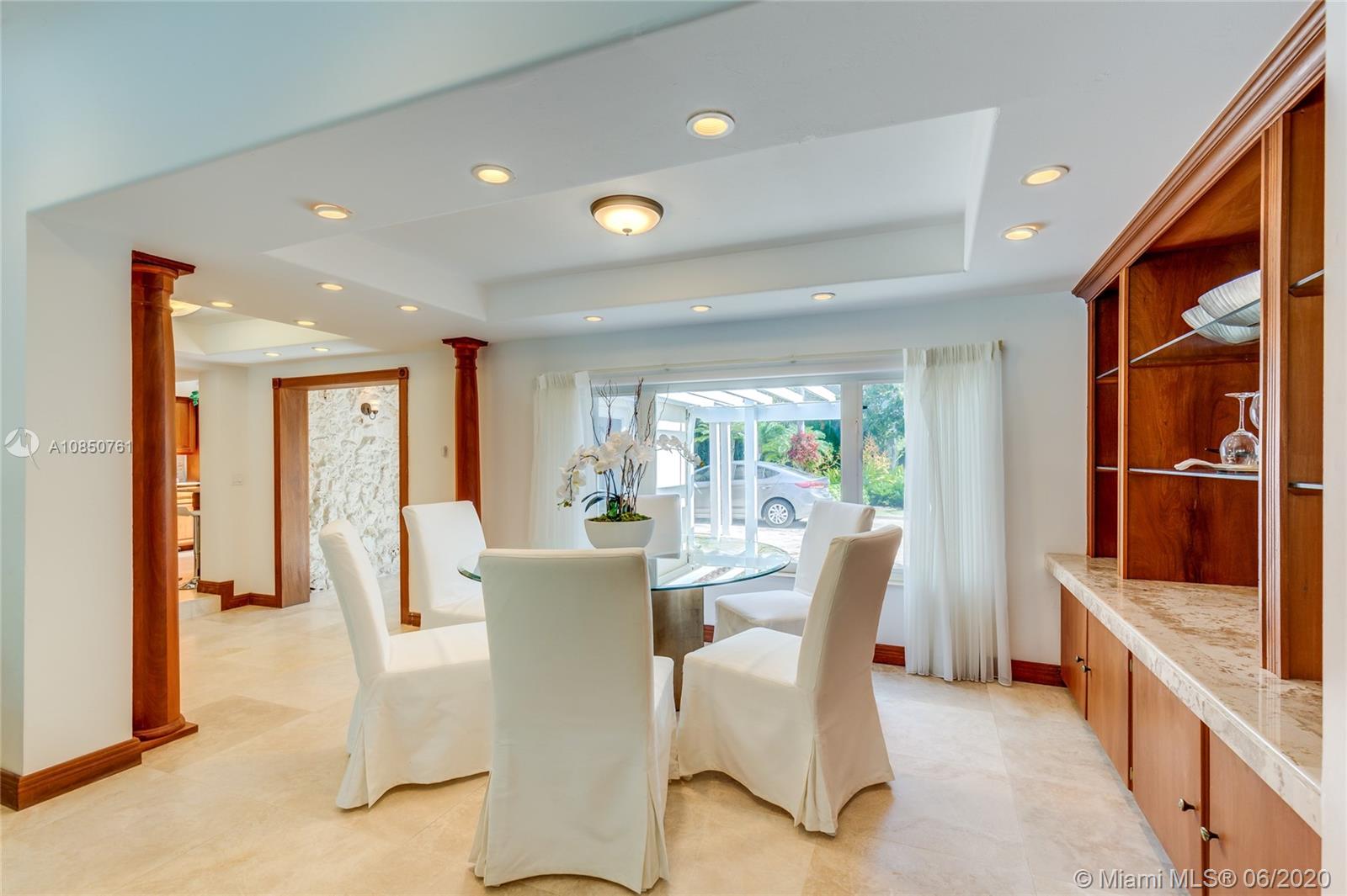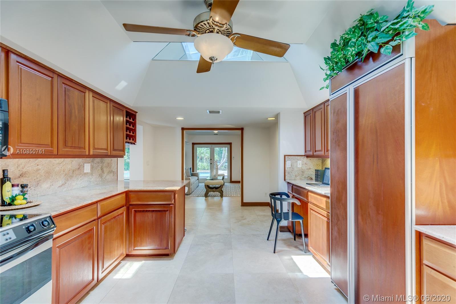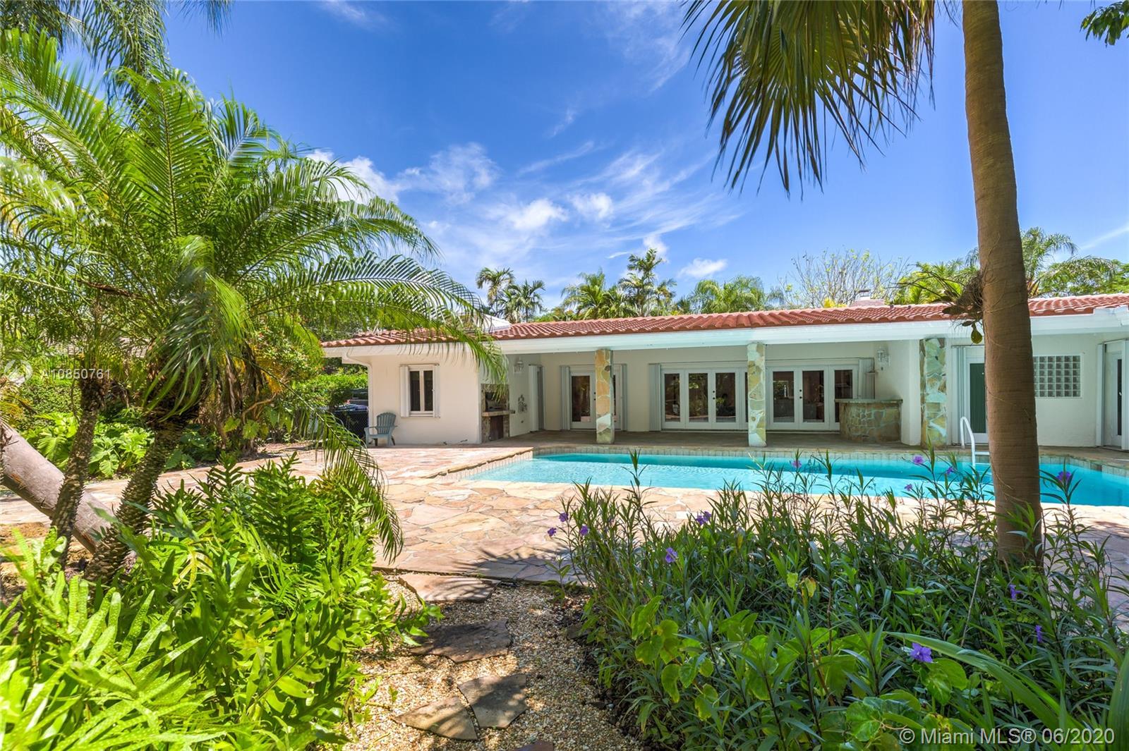 Enjoy a relaxed luxury lifestyle in this Pinecrest family oasis on a deep, private & lushly landscaped acre on a fabulous no-through street. This is the open floor plan you’ve been searching for w effortless flow between living, dining & family rooms & views of the pool & garden thru an expanse of French doors. A fireplace & sky lights add to the warmth & ambiance. This home was fully renovated in 2000 to include new plumbing, stunning travertine floors, an office + great kitchen w granite counters & huge butler’s pantry w extra frig & storage. The split floor plan has 2 masters w custom closets, built-ins and baths w jacuzzi’s. The quintessential entertainer’s dream w/ heated pool, covered patio, lit tennis court, koi pond, wet bar, bbq & fruit trees. New roof 2019, all Pinecrest schools.