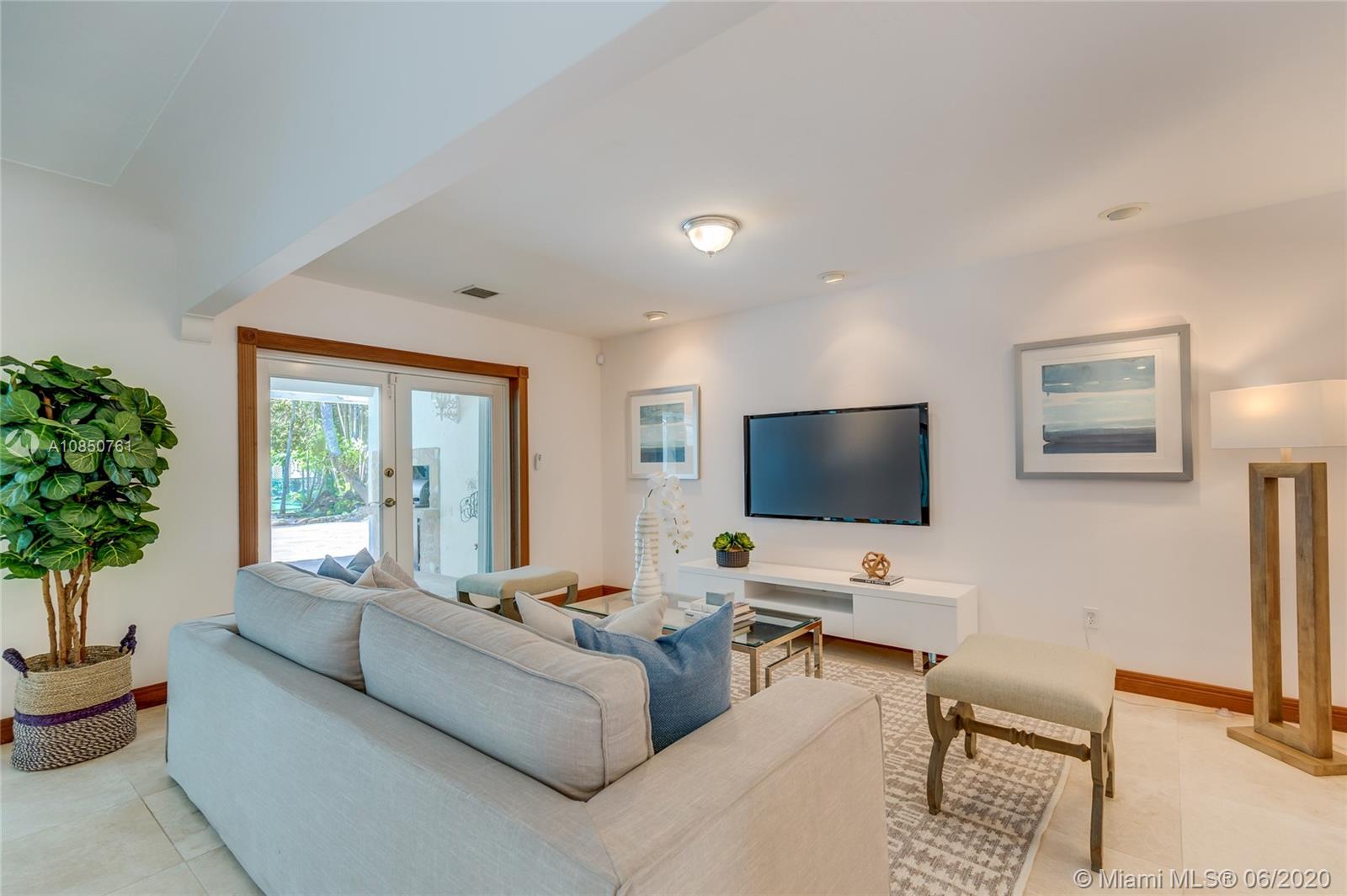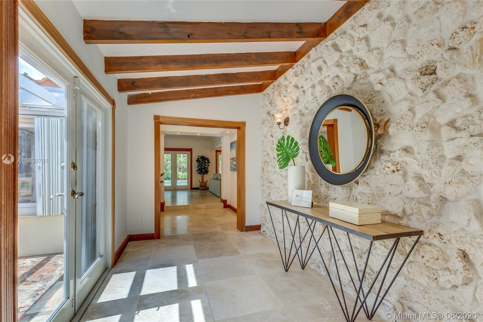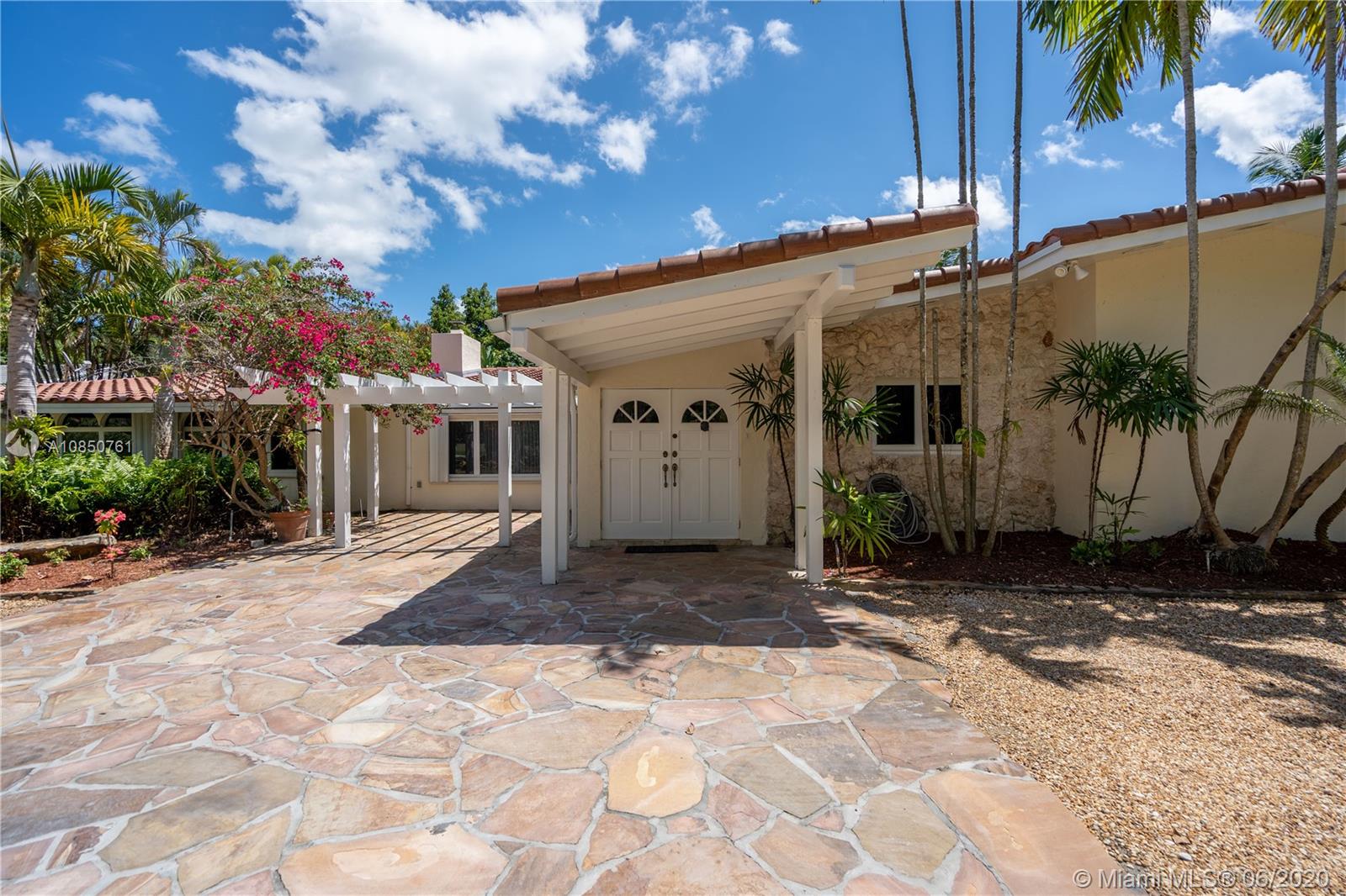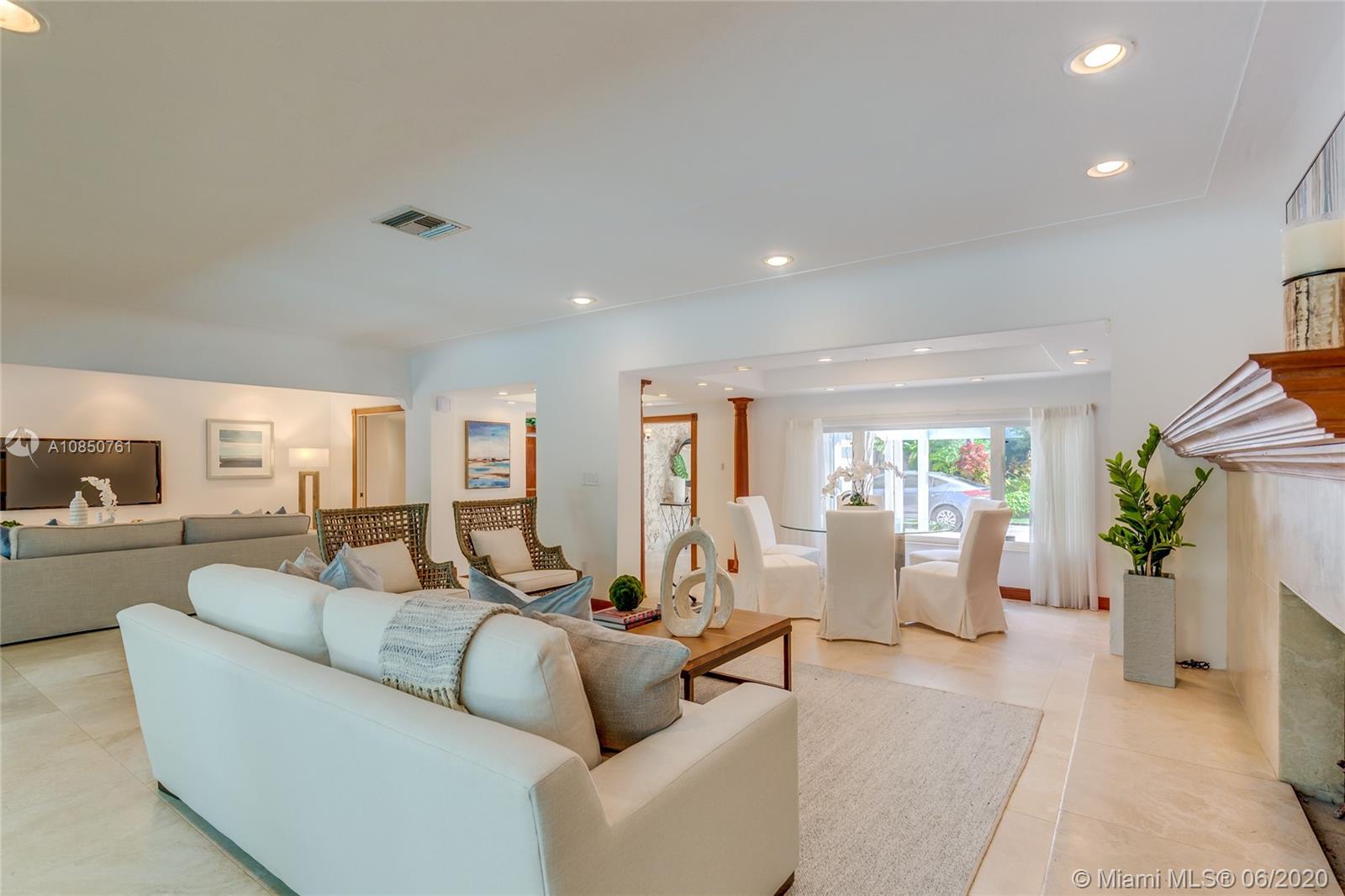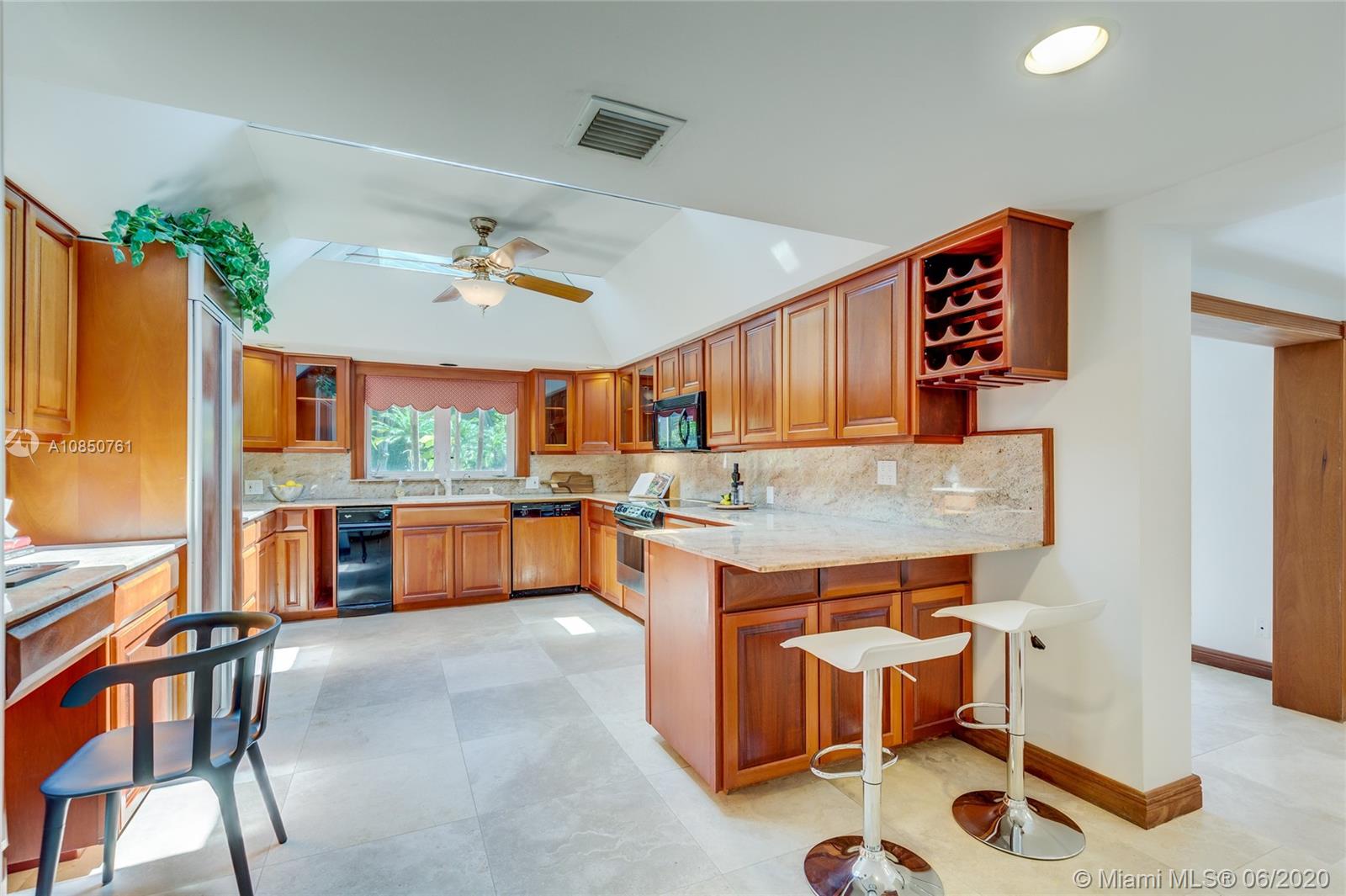 Enjoy a relaxed luxury lifestyle in this Pinecrest family oasis on a deep, private & lushly landscaped acre on a fabulous no-through street. This is the open floor plan you’ve been searching for w effortless flow between living, dining & family rooms & views of the pool & garden thru an expanse of French doors. A fireplace & sky lights add to the warmth & ambiance. This home was fully renovated in 2000 to include new plumbing, stunning travertine floors, an office + great kitchen w granite counters & huge butler’s pantry w extra frig & storage. The split floor plan has 2 masters w custom closets, built-ins and baths w jacuzzi’s. The quintessential entertainer’s dream w/ heated pool, covered patio, lit tennis court, koi pond, wet bar, bbq & fruit trees. New roof 2019, all Pinecrest schools.