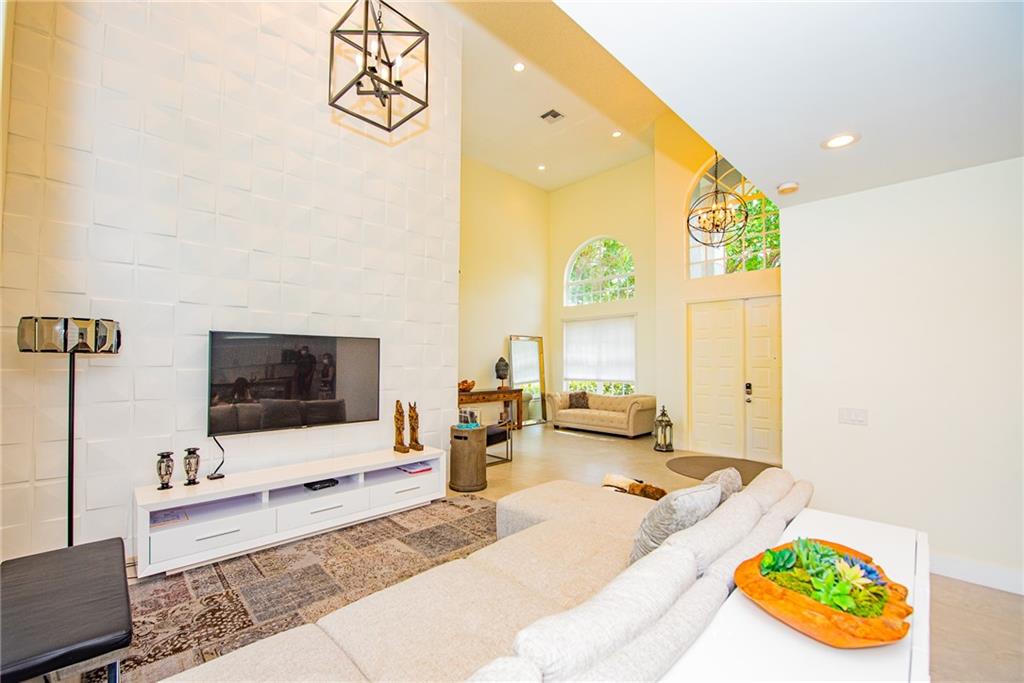 Don't miss out on this beautifully renovated/updated dream home! The most upgraded property in the neighborhood with Cathedral ceilings,very elegant Home with a finest decorator finishes. Open floor plan, 2 story, 3 bedroom + loft. Master w/ spacious Bath and walk in closet, Amazing Gourmet Kitchen with new stainless steel appliances Refrigerator/Freezer, Stove, dishwasher and microwave and a unique Quartz counter tops w/ breakfast bar. Hurricane impact doors and windows, accordion shutters and rolling shutters. Moderns chandeliers included, barbecue area with a gazebo and a perfect yard for a custom swimming pool! Great Location and Schools.