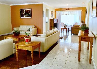 Attractive, spacious, immaculate house in exceptional condition, perfect for large family gatherings, featuring an expensive impact double size front door, pretty crown moldings, wooden laminate and tile floors throughout , a large sunken living room, a split 3 bedroom plan, a cozy family room, a functional kitchen with granite counter tops, awesome double size pantry, stainless steel appliances including gas range, an enclosed patio with granite counter and catering window, newer AC with convenient wall switch thermometers, MB has cedar walking closet, practical hurricane accordion shutters, 1 car garage, and circular driveway. It's a gem! Ready for new owner.