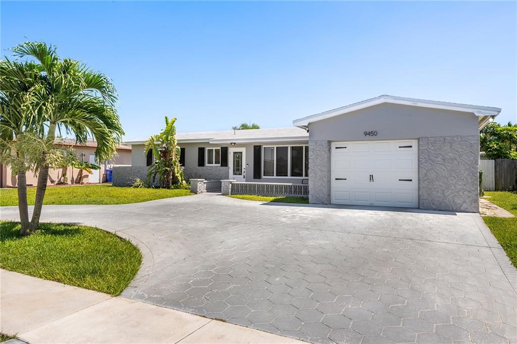 Bright, open & spacious 3 bedroom 2 bathroom 1600 sq ft home located on quiet cul-de-sac street. This home features living room-dining area, and a big Florida family room. Home has impact windows and a one car garage with overhead storage. The kitchen is updated with quartz counter tops and SS-appliances. The exterior features a spacious yard with plenty of room for a pool or just having outdoor fun, a screened in patio with a cabana bathroom. Features a stamped concrete circular driveway to park multiple cars. Roof 3 years old and A/C 5 years old, and no HOA. Closed to shopping malls, restaurants and neighborhood park including a dog park. Contact CO agent Carla for (954) 661-3086 more information or appointment to view.