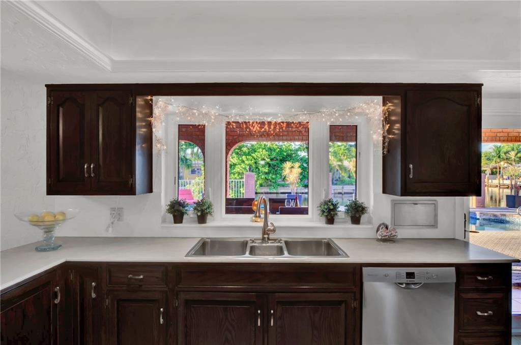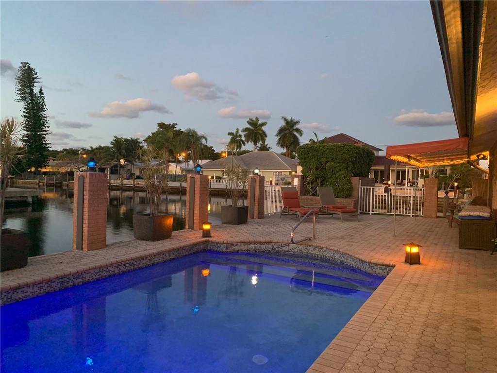 Welcome home to this exquisite, 212 ft waterfront 4 bedroom 3 bath estate in Landings,1 mile to the Lauderdale by the Sea beach. This one story home is an entertainer’s delight w/a privacy wall sitting on a corner lot surrounded by water on two sides. Private backyard features a beautiful pool w/special lighting effects, lush landscaping, tranquil water views, 30 ft dock.Large split bedroom plan with a separate maid’s quarters off the kitchen side next to the updated laundry room. Two master suites, one w/your private sauna. A formal dining area with fireplace and custom bar. A Chef's Kitchen w/second dining area, corian countertop, butcher block cooking island w/hand crafted wood cabinetry by RuttCustomKitchen.Fixed bridges will allow up to 25 ft boat to enjoy the waterfront lifestyle.