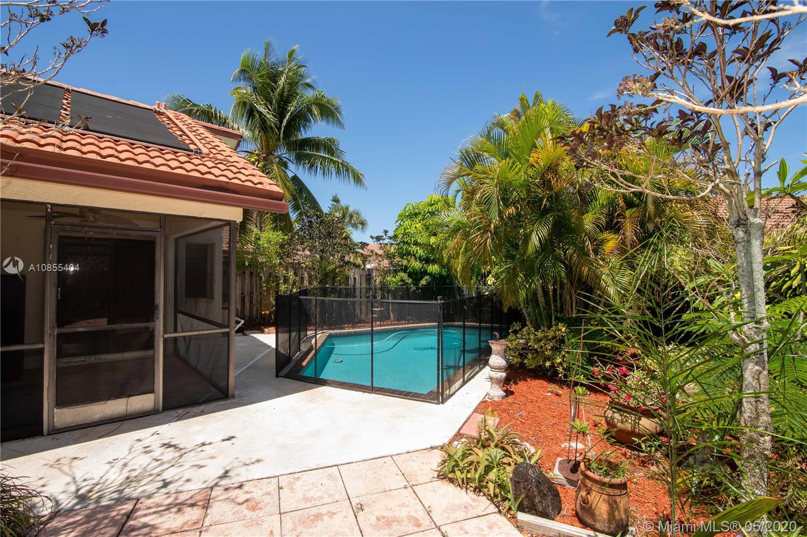 THIS ONE STORY SINGLE FAMILY HOME SITS IN THE HEART OF MUCH DESIRED PEMBROKE PINES. THIS WELL MAINTAINED ESTABLISHED COMMUNITY IS MINUTES AWAY FROM SHOPPING, DINING, PARK & HIGHWAYS. BEST VALUE FOR 2 BEDROOMS 2 BATHS & POOL WITH PRIVATE BACKYARD. DRIVEWAY BIG ENOUGH TO PARK 3 CARS. THIS HOME HAS FRESH PAINT, ACCORDION HURRICANE SHUTTERS, VAULTED CEILINGS & 4 CEILING FANS. MASTER SUITE OFFERS HIS & HERS WALK IN CLOSET & MASTER BATHROOM HAS SKY LIGHT. IT ALSO HAS A LAUNDRY ROOM WITH FULL SIZE WASHER & DRYER. THE POOL COMES WITH SOLAR WATER HEATER, CLEANING EQUIPMENT & CHILD SAFETY FENCE. THIS HOME DOES NOT BACK TO HIATUS ROAD. SUPER LOW HOA 150 QUARTELY. COMMUNITY HAS KIDS PLAY AREA & PETS ARE WELCOME. EASY TO SHOW.