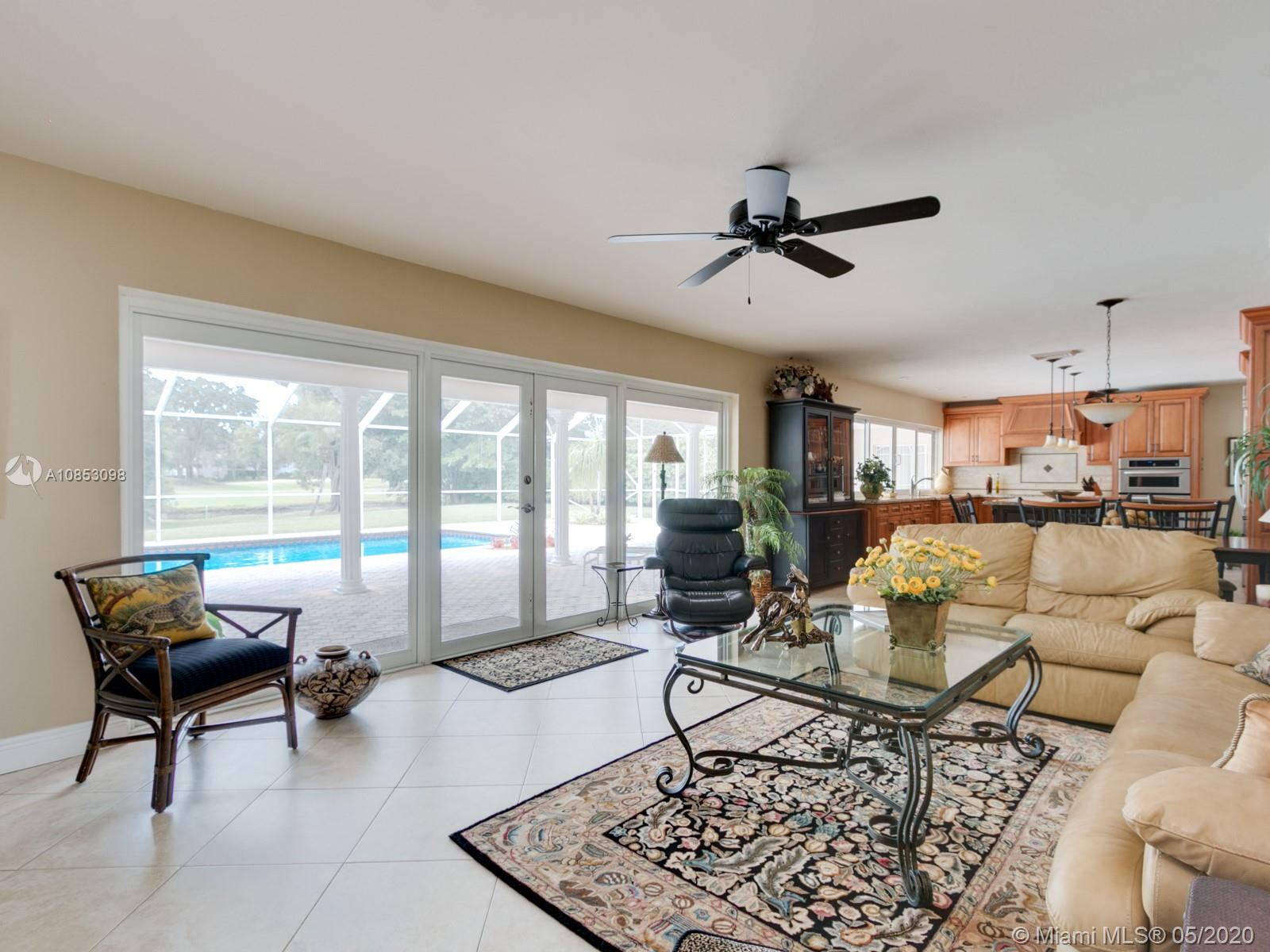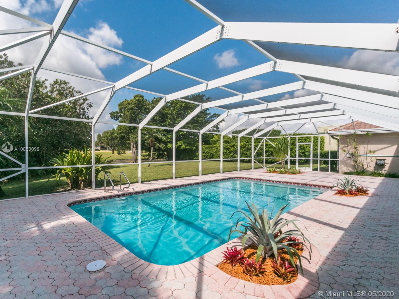 South Florida living at its finest in centrally located Jacaranda Country Club. This spacious 4 bedroom 3 bath home features circular driveway and unobstructed golf course and water views. Outside entertaining at its best with covered patio and pool, new diamond brite finish and new pool pump. Patio overlooks golf course, 15th hole east and Lake Frances, owned by homeowners. Water for sprinklers from lake. Impact windows in kitchen and family room and hurricane shutters. Tile floors, crown molding, remodeled kitchen with granite countertops, stainless steel appliances and pull out wall cabinets. Remodeled bathrooms. Convenient location to 595, restaurants, stores, schools and airport. Minutes to all.