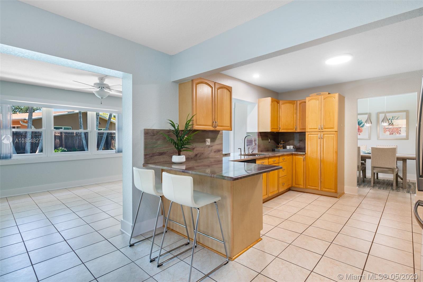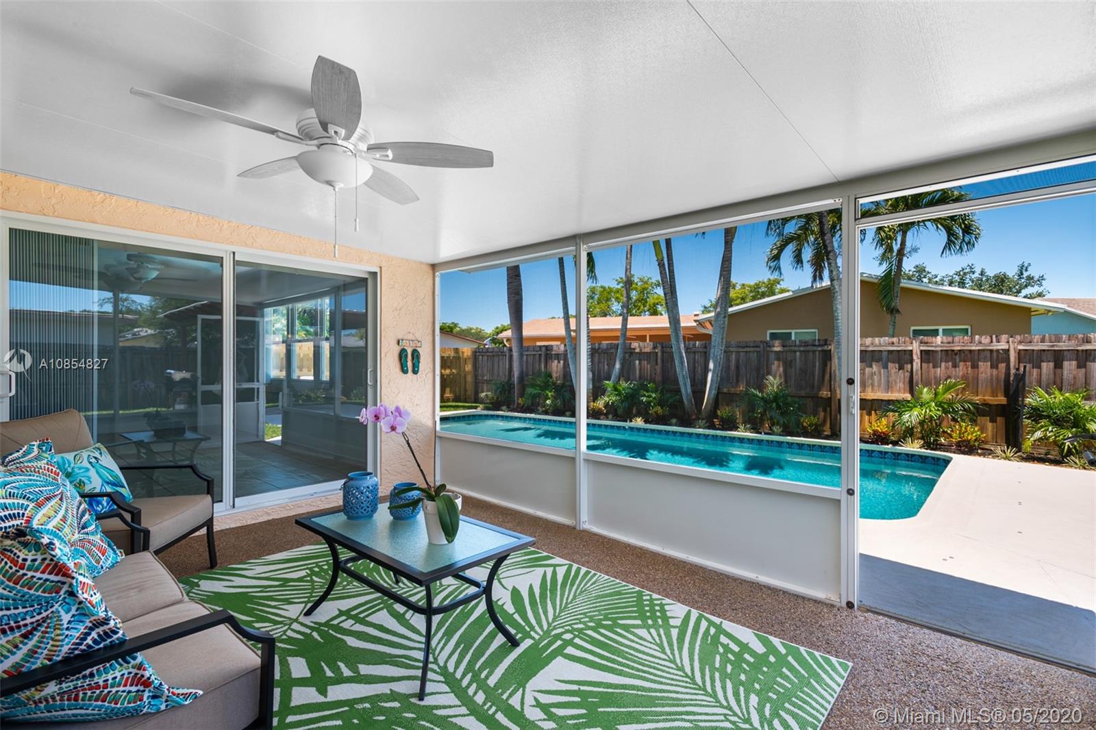 Beautifully updated 3 Bedroom 2 Bathroom POOL Home in the highly sought after neighborhood of Cooper City! The gorgeous salt-water pool, screened in patio and BBQ area offer the perfect balance between sun and shade. Home features brand new vanities with quartz counters in each bathroom, wood kitchen cabinets with a beautiful granite countertop, new baseboards, closet doors and window blinds all throughout, new carpet in the bedrooms and updated landscaping with a new sprinkler system. This home is on a quiet street ending in a cul-de-sac and a block away from a large park which features tennis courts, racketball, walking paths and a large kids play area. The designated schools are all A+ schools, which Cooper City is highly known for. This home is pristine and ready for it's new owners!