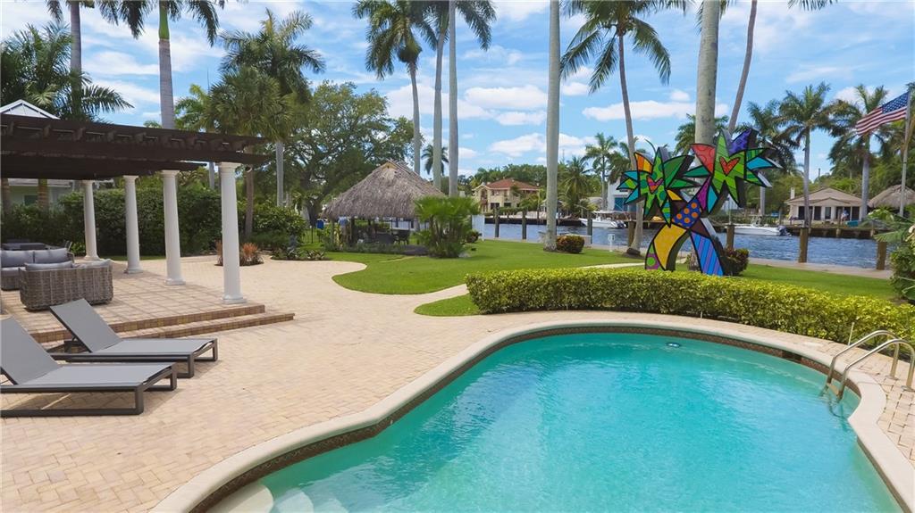 SPECTACULAR GATED RIVERFRONT ESTATE ON OVERSIZE 22,000 FOOT LOT W/ 103' DOCK, EXCEPTIONAL VIEWS, WONDERFUL PRIVACY, & FULLY DESIGNER RENOVATED, RESORT-STYLE, SINGLE LEVEL HOME! LUSH, TROPICAL LANDSCAPING (INCL. ENTIRE PROPERTY MOSQUITO SYSTEM), SERENE POOL AREA, LARGE COVERED LANAI'S & RIVERFRONT TIKI HUT, KOI POND WITH WATERFALL, ALL PROVIDE FOR SENSATIONAL OUTSIDE LIVING/ENTERTAINING! FUN STARTS W/ 103' OF DEEPWATER DOCKAGE W/ FULL POWER & WATER READY FOR ALL THE MARINE TOYS! 3 CAR A/C GARAGE & HUGE MOTOR COURT FOR THE OTHER TOYS! RECENT TOTAL INTERIOR REMODEL INCL IMPACT GLASS, NEW HI-END CUSTOM CHEF'S KITCHEN, FRESH/MODERN BATHS, & ELEGANT PORCELAIN WOOD TILE THROUGHOUT & GENERATOR! ATTENTION TO DETAIL & LEVEL OF INVESTMENT IS IMMEDIATELY OBVIOUS!! ONE OF THE LAST BIG PROPERTIES LEFT!!