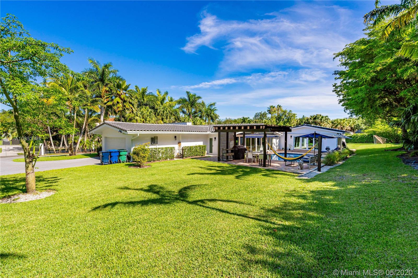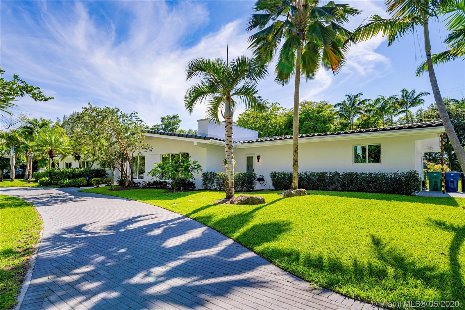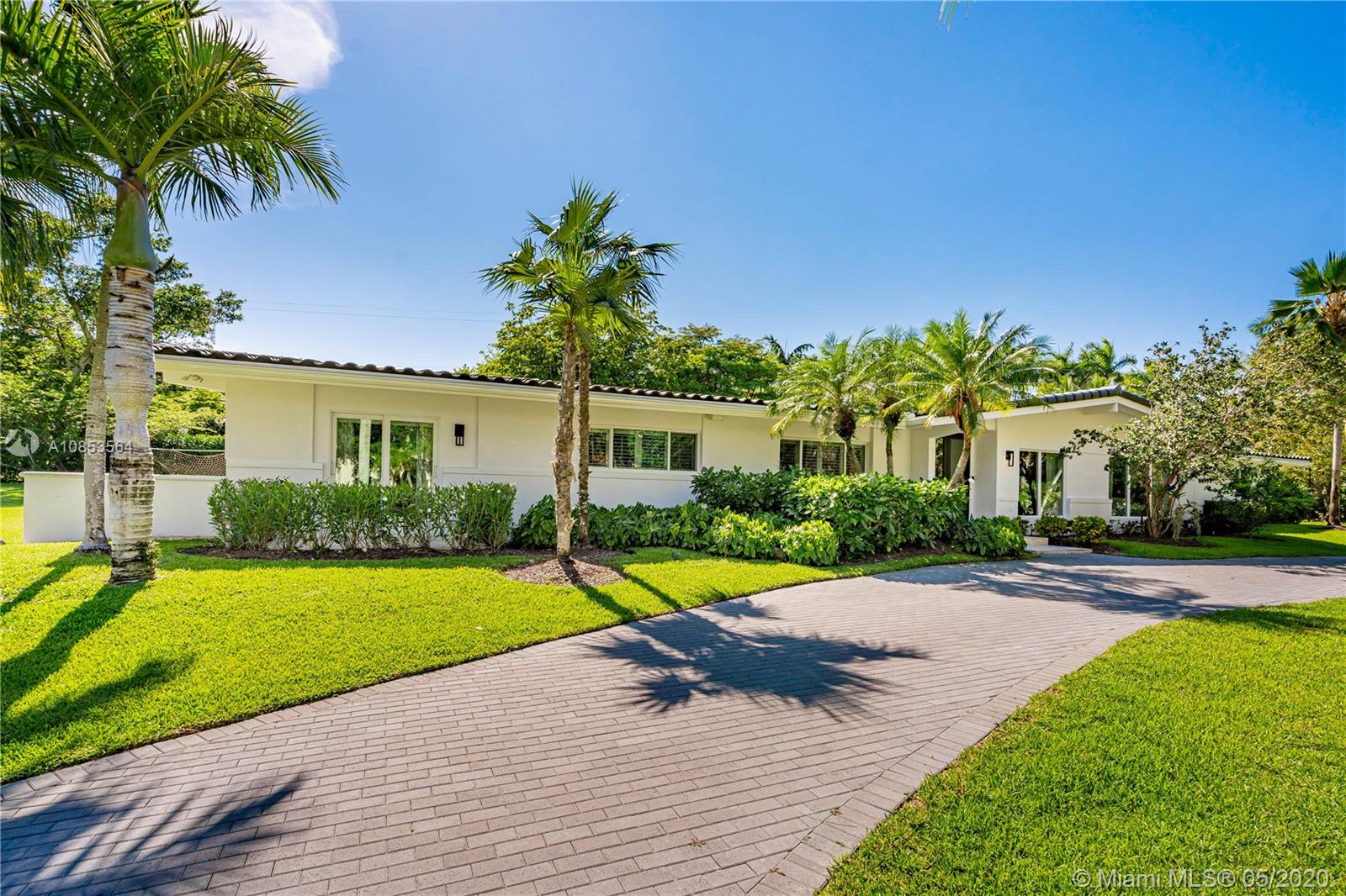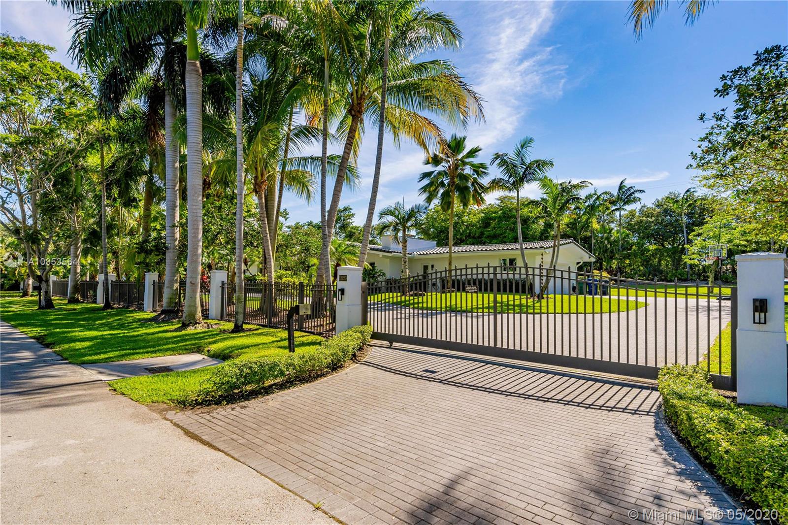 Sought after 1-story 4,519 total sf home in a prestigious area and street in Pinecrest resting on 37,461 sf gated lot. Significantly renovated including impact windows/doors throughout, tastefully bathrooms finishes, shaded BBQ pergola with fan, and 3 new AC units. Large windows makes this bright house enchanted. The Kitchen has a working island, 2 ovens, a gas range and warming drawer. Oversized family room and great entertaining areas are part of well thought floorplan. Some significant features are: 2020 roof and driveway pavers; plantation shutters; large pantry; oversized laundry w/ outdoor access; two car garage. Very private lawn with beautiful trees. In Pinecrest Elem school area and close to Gulliver, Palmer and other top schools.