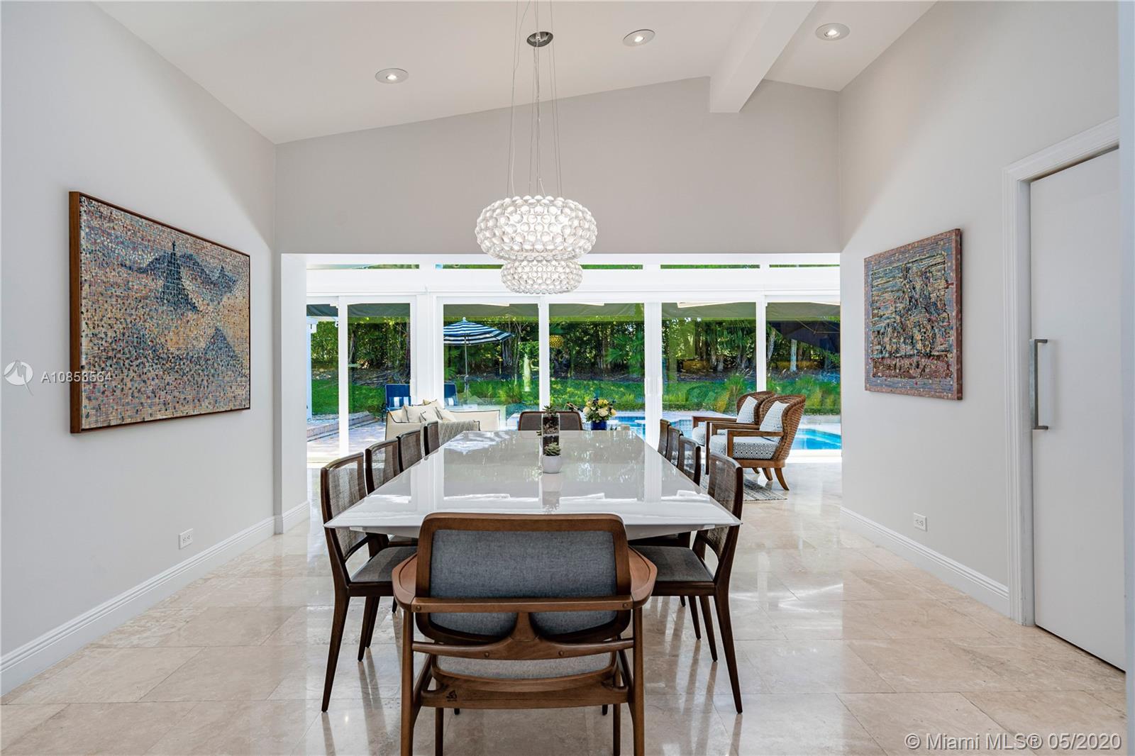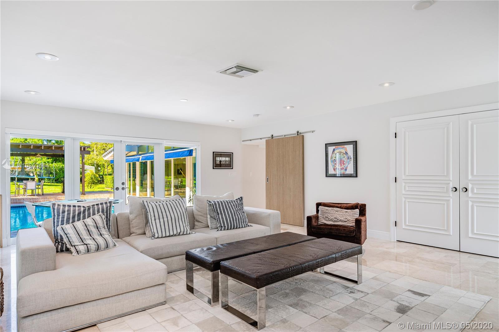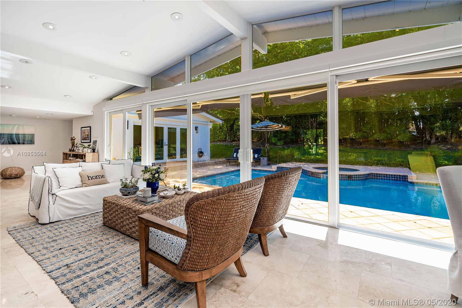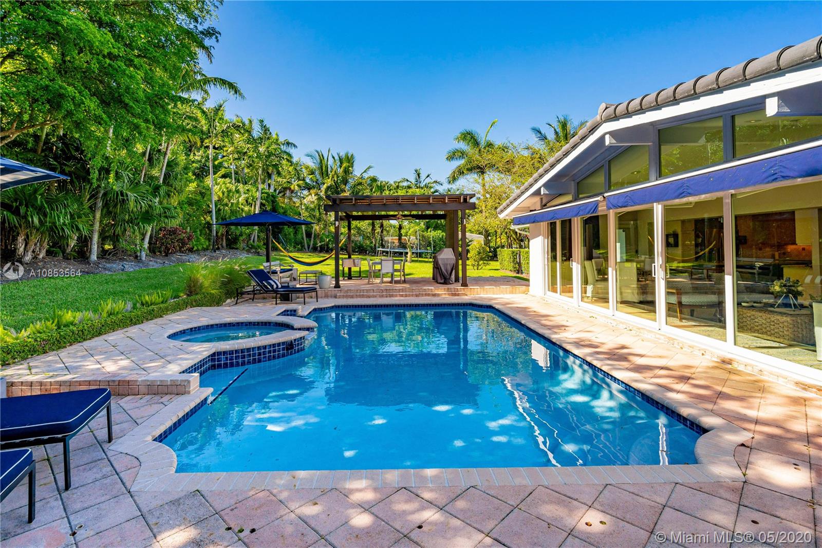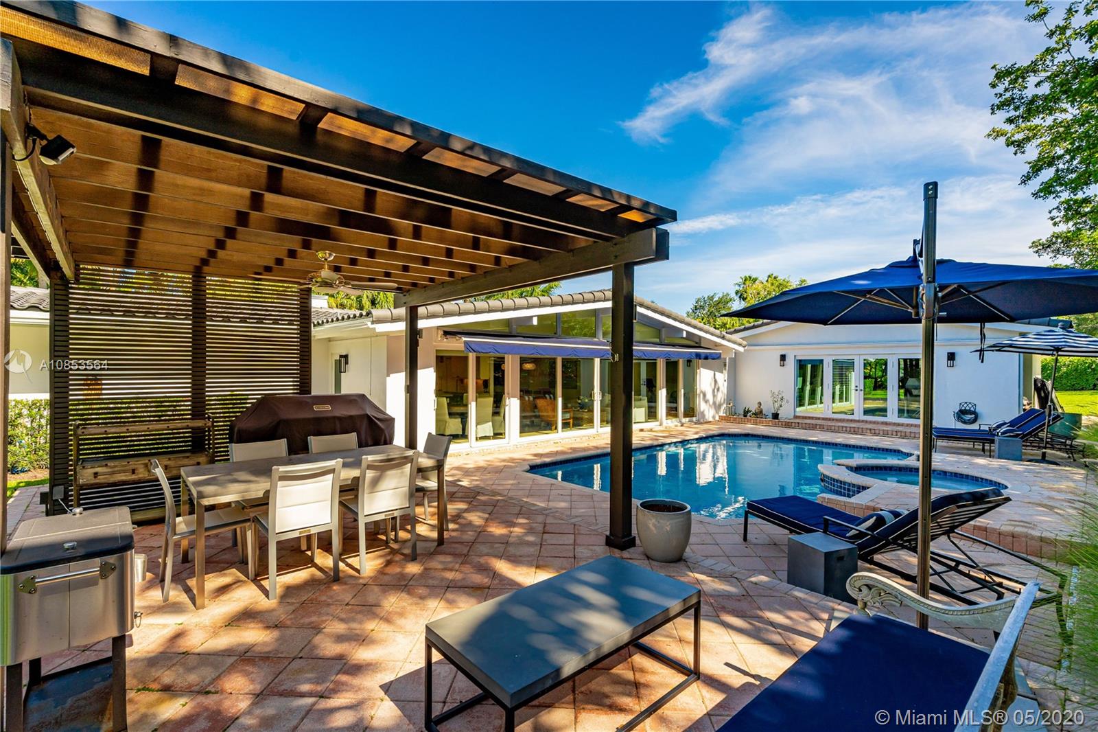 Sought after 1-story 4,519 total sf home in a prestigious area and street in Pinecrest resting on 37,461 sf gated lot. Significantly renovated including impact windows/doors throughout, tastefully bathrooms finishes, shaded BBQ pergola with fan, and 3 new AC units. Large windows makes this bright house enchanted. The Kitchen has a working island, 2 ovens, a gas range and warming drawer. Oversized family room and great entertaining areas are part of well thought floorplan. Some significant features are: 2020 roof and driveway pavers; plantation shutters; large pantry; oversized laundry w/ outdoor access; two car garage. Very private lawn with beautiful trees. In Pinecrest Elem school area and close to Gulliver, Palmer and other top schools.