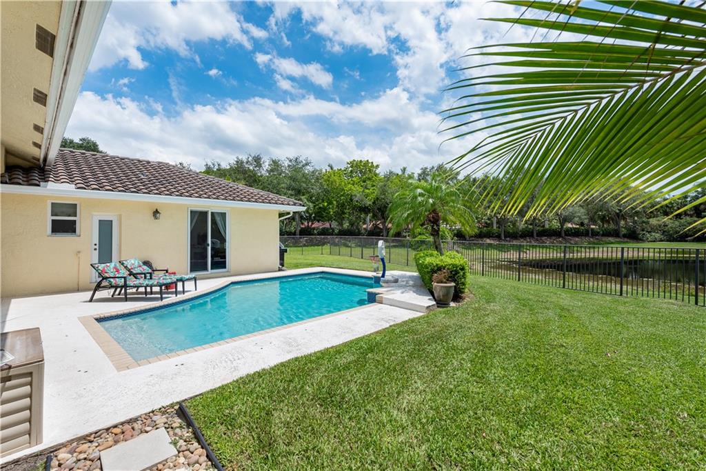 This home is special. Newer roof(2013)Impact Glass throughout(2018) AC(2017)….And those aren't even the best parts. The backyard is one of a kind where you get a great big backyard fully fenced on a prime waterfront lot with total privacy across the lake with no neighbors. Pool has new motor(2019)As you enter the home- you'll notice the immaculate condition floor to ceiling. Marble floors throughout entire home except for Master which has real wood floors(2016). High ceiling throughout. Tons of light. Kitchen has island which opens to the family room and has stunning views of lake,pool, & yard. Family room is spacious. Cabana Bath out to pool. Split bedroom plan with secondary bedrooms across house from Master. Gated community. A plus schools.
