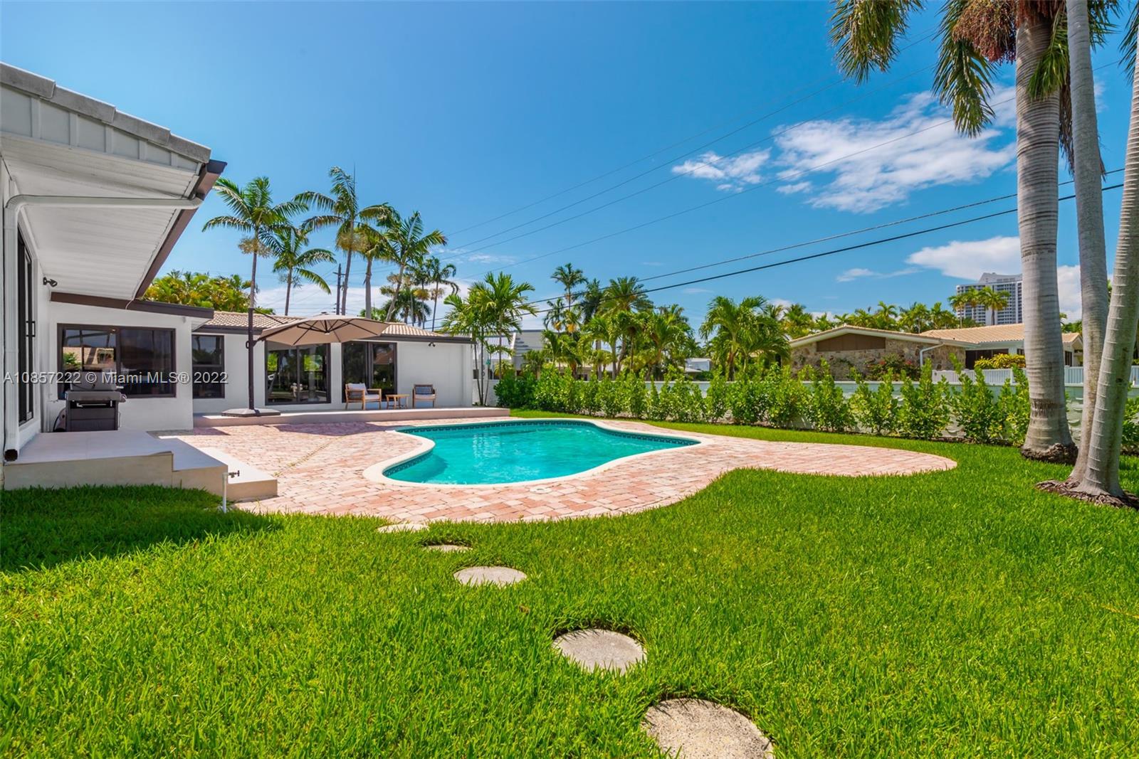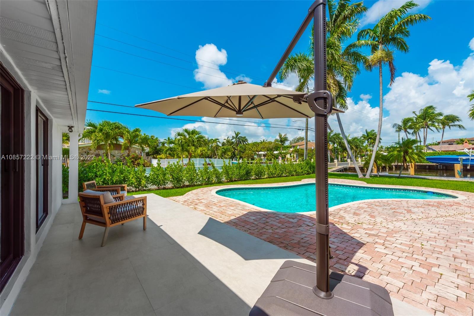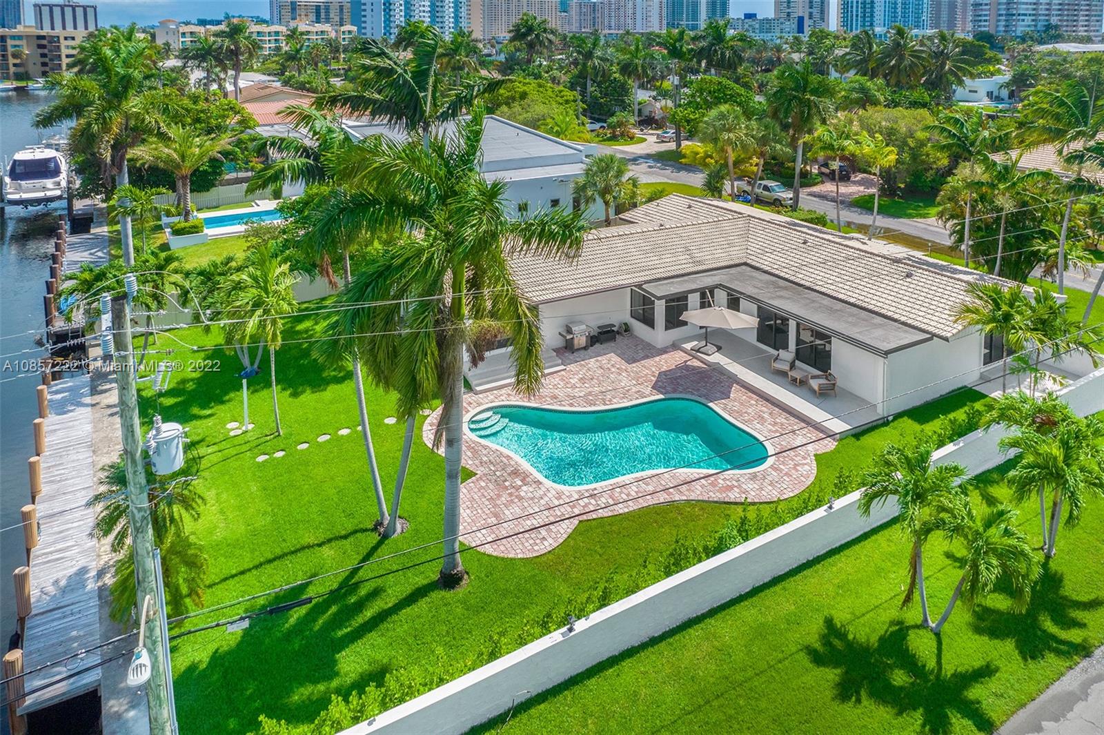 One-Story Corner Waterfront Home on 85' X 135' Lot. Open living spaces and lots of natural lighting throughout. Oversized Master Bedroom. Dockage for your vessel, ocean access, no fixed bridges and deep water. Backyard is ideal to take in the South Florida waterfront lifestyle with covered terrace, pool and plenty of green yard area. Central Location in sought after gated waterfront Golden Isles community.