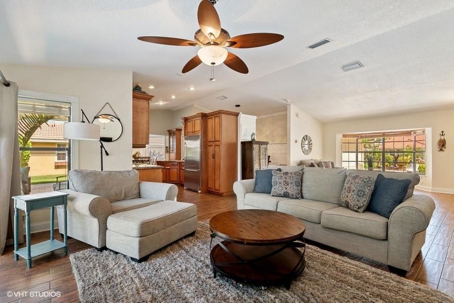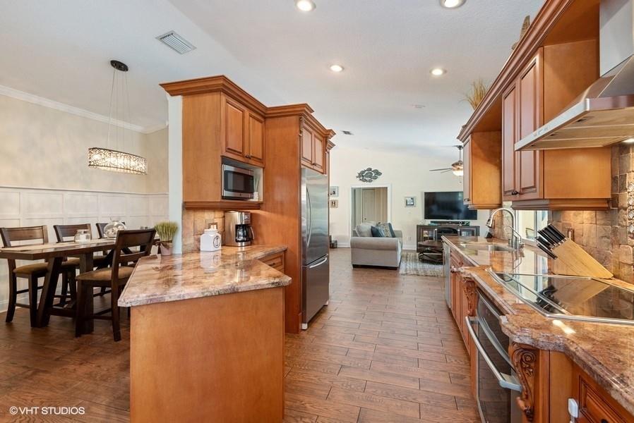Highly sought after Pine Ridge pool home. Absolutely Perfect! The owners have gone to great lengths upgrading this beautiful home. Inside you will find a fantastic gourmet kitchen with solid wood cabinets, gorgeous granite counter tops & SS appliances. Wood look tile floors thru-out living area. Custom mill work in several rooms. Beautifully renovated bathrooms and all new textured ceilings. Outside you will find a newly installed travertine stone driveway, with a "widened footprint" and walkway that leads to a completely renovated resort style pool area! Fully fenced yard, lush landscaping and much more! True pride of ownership.. Excellent family community. Low HOA. Shops, restaurants, parks and expressway all close by. Easy to show.. Don't wait! This one will not last...