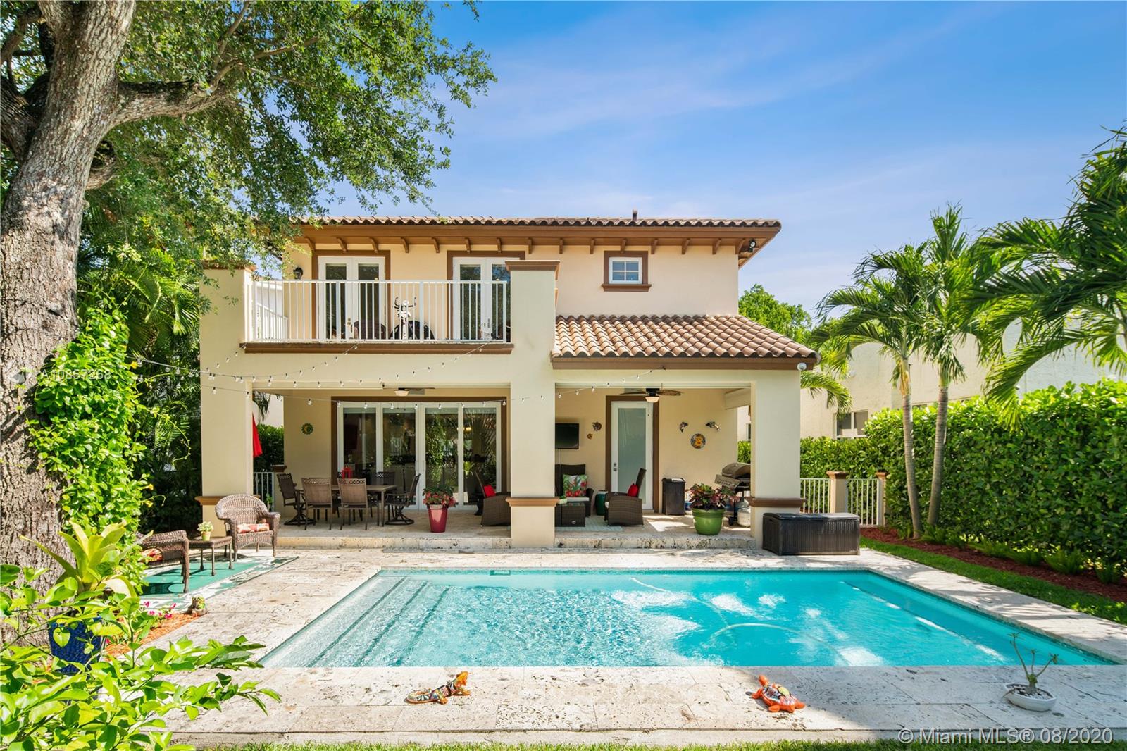 Priced to Sell! First time on the market, a rare find in the heart of Coral Gables, 2016 construction, 405 Majorca was built with all the modern luxury finishes while keeping the charm and beauty of a Gables home! Featuring 10ft ceilings, open concept, lots of impact windows, smart ready w/ security system, all bathrooms have marble throughout including the classy white kitchen, pantry and laundry room, 1 car garage. Back of the home opens up to the covered terrace surrounded by beautiful foliage and pristine salt chlorinated pool with a full cabana bathroom! Bedrooms are on 2nd floor, master suite comes with its own terrace overlooking the pool/garden walking distance to Miracle mile and City Hall, mins Merrick Park, and more! The perfect family home for those seeking the new feel!
