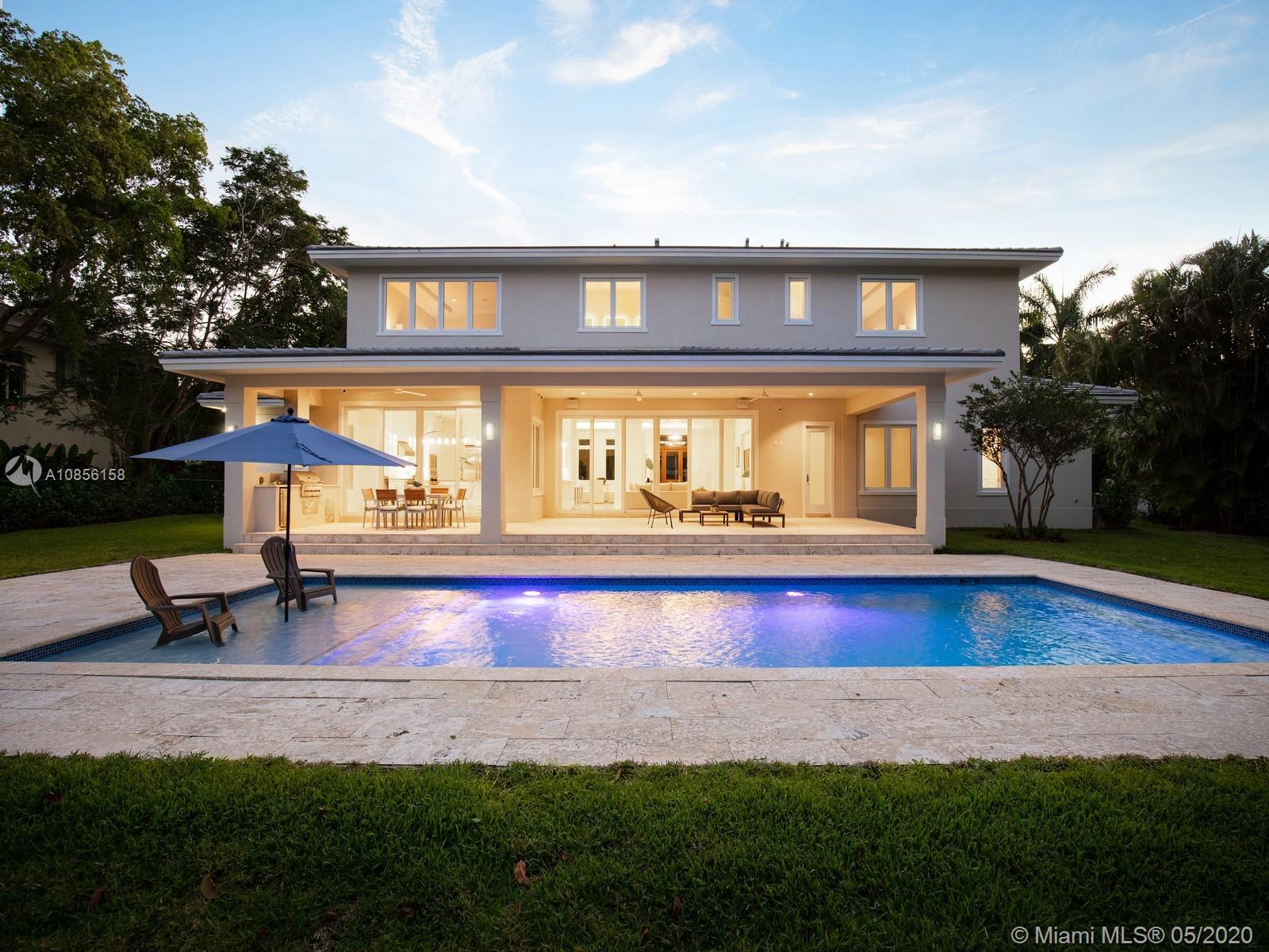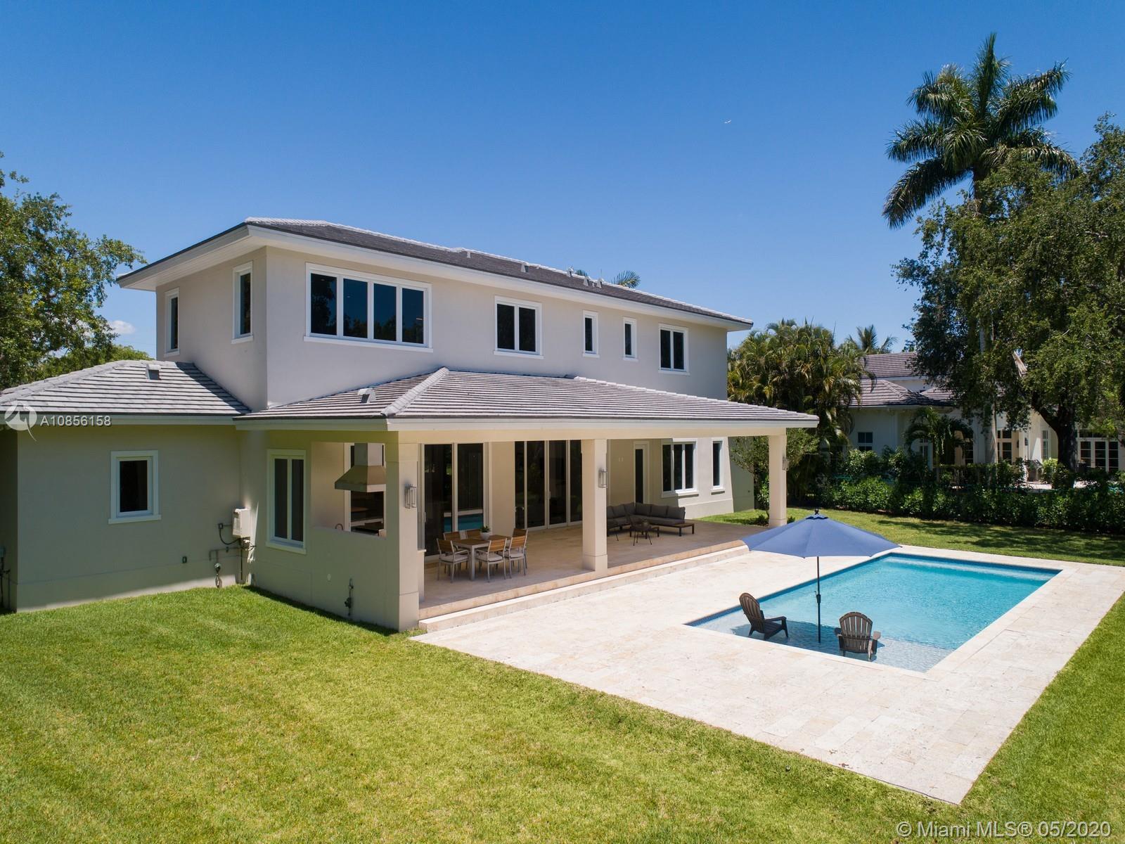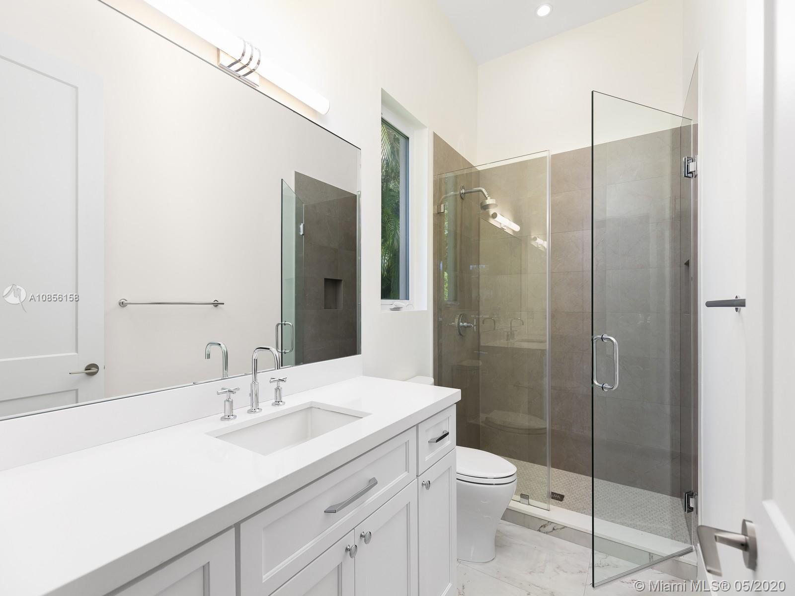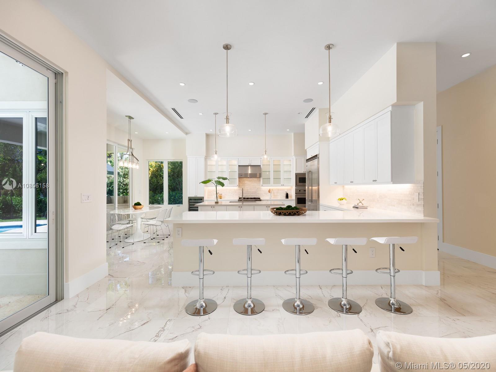 Impeccable Brand-New 7,222 sf Construction on 18,388 sf lot offering flawless modern architecture in N Pinecrest. This stunning estate spans 5 bds & 6 bth w/great attention to detail. Greeted by volume ceilings, great open flr plan, gourmet chef’s kit & pantry, built-in Viking appl w/gas range & wine cooler. First flr offers natural light radiating from every angle, 2 bedrms all en-suite & stylish cabana bath. Elegant wd & glass stairwell leads to an expansive 2nd flr w/ lavish master ste, walk-in closets, spa-like bath & 2 bedrms w/ den/family rm. Indulge in the ultimate retreat w/resort-style pool, expansive grounds & covered coralstone terr w/summer kit. Extra feat incl: elevator & generator ready, imp win/drs, built-out closets, smart & surround sound, 2 car gar. 1 Year Builder’s Warr.