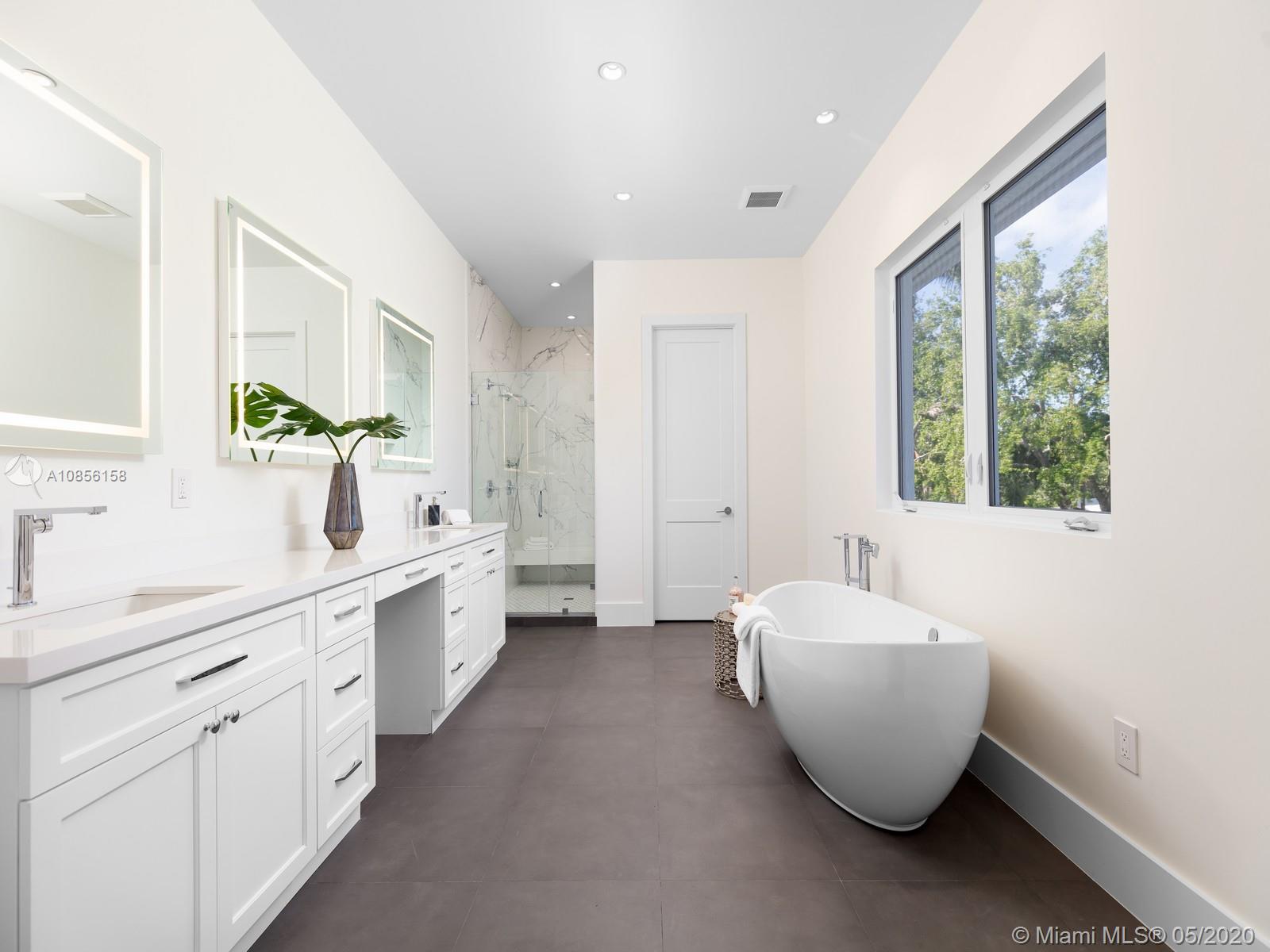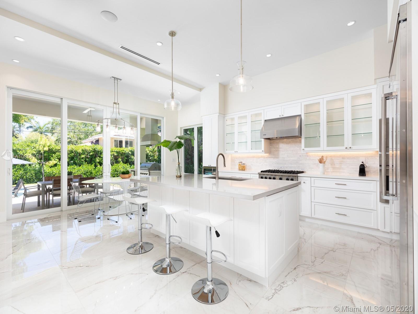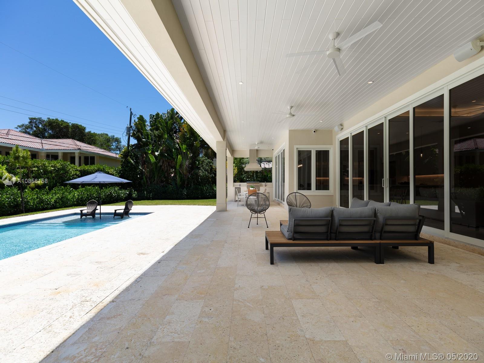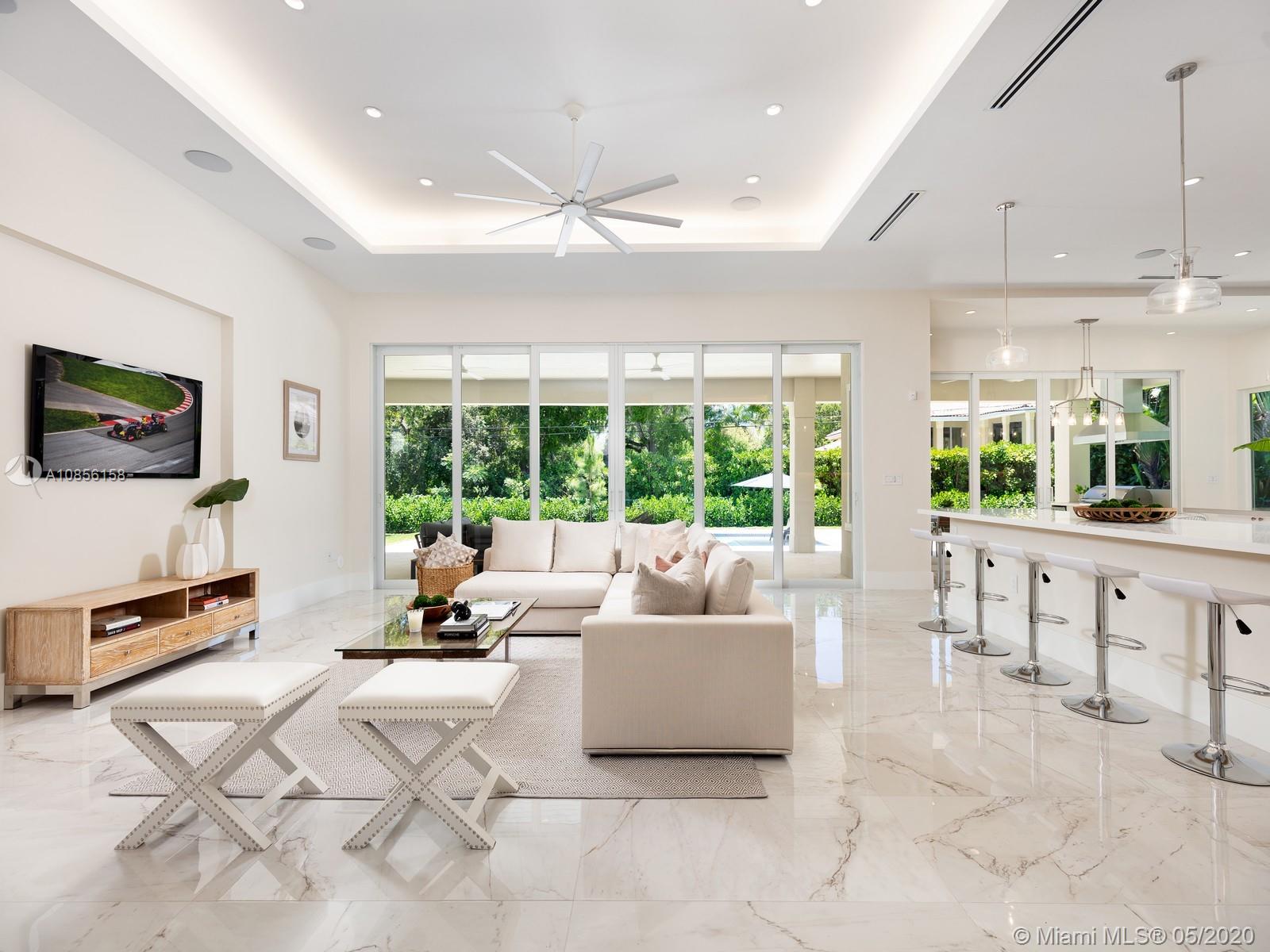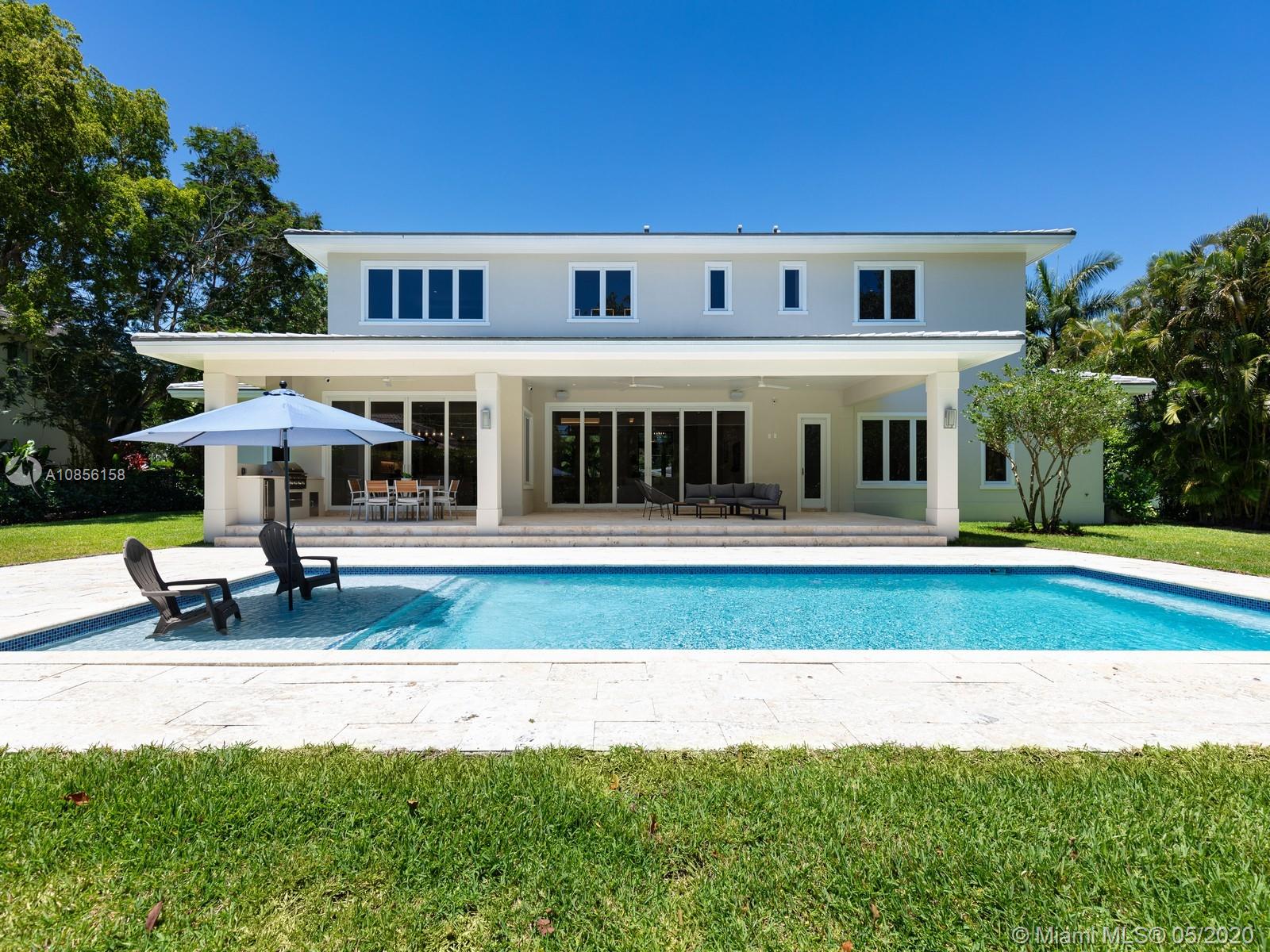 Impeccable Brand-New 7,222 sf Construction on 18,388 sf lot offering flawless modern architecture in N Pinecrest. This stunning estate spans 5 bds & 6 bth w/great attention to detail. Greeted by volume ceilings, great open flr plan, gourmet chef’s kit & pantry, built-in Viking appl w/gas range & wine cooler. First flr offers natural light radiating from every angle, 2 bedrms all en-suite & stylish cabana bath. Elegant wd & glass stairwell leads to an expansive 2nd flr w/ lavish master ste, walk-in closets, spa-like bath & 2 bedrms w/ den/family rm. Indulge in the ultimate retreat w/resort-style pool, expansive grounds & covered coralstone terr w/summer kit. Extra feat incl: elevator & generator ready, imp win/drs, built-out closets, smart & surround sound, 2 car gar. 1 Year Builder’s Warr.