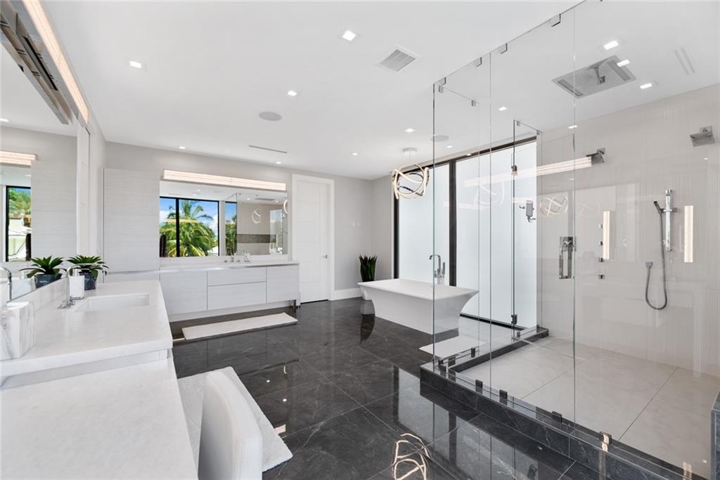 Simply stunning Coastal Modern Deepwater custom residence has just been completed to the highest standard! Walled, gated & desirably located on a 110 ft wide canal offering dockage upto 80 ft. The residence has ICW views from poolside & some rooms with spectacular views from 3rd level/club room. There is a huge WOW factor from immediate entry & throughout. Chef's kitchen with breakfast area, wet bar, laundry room elevator to all 3 levels, 2 large covered patios, Summer kitchen, formal dining area, adjacent wine cellar plus office/6th bed, downstairs VIP/Secondary Master Suite. 2nd Level: guest lounge, 3 expansive bedroom suites, 2nd laundry room plus ultra-luxurious Master Suite with custom closets, spa bath & ICW views. Elevator access to the 3rd level Club room covered & open roof deck