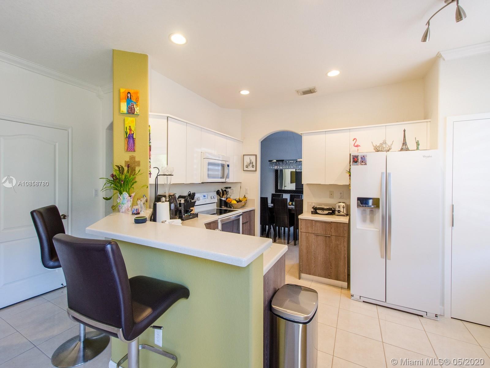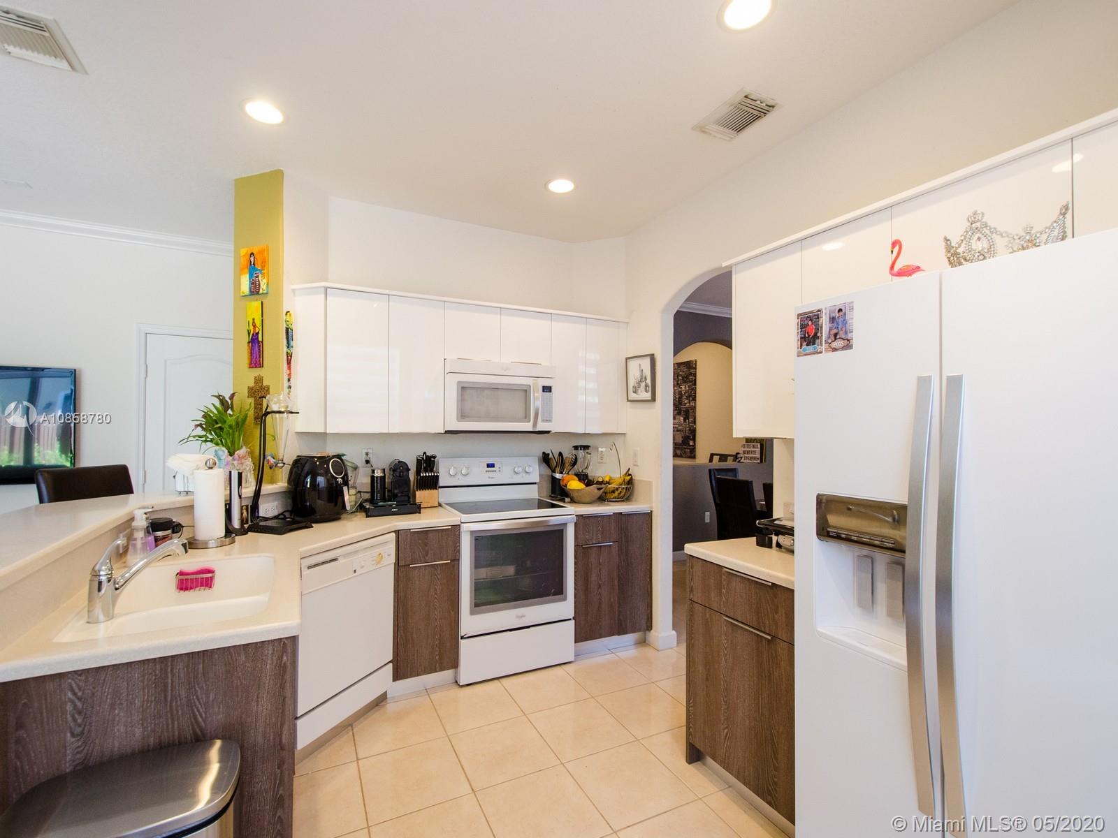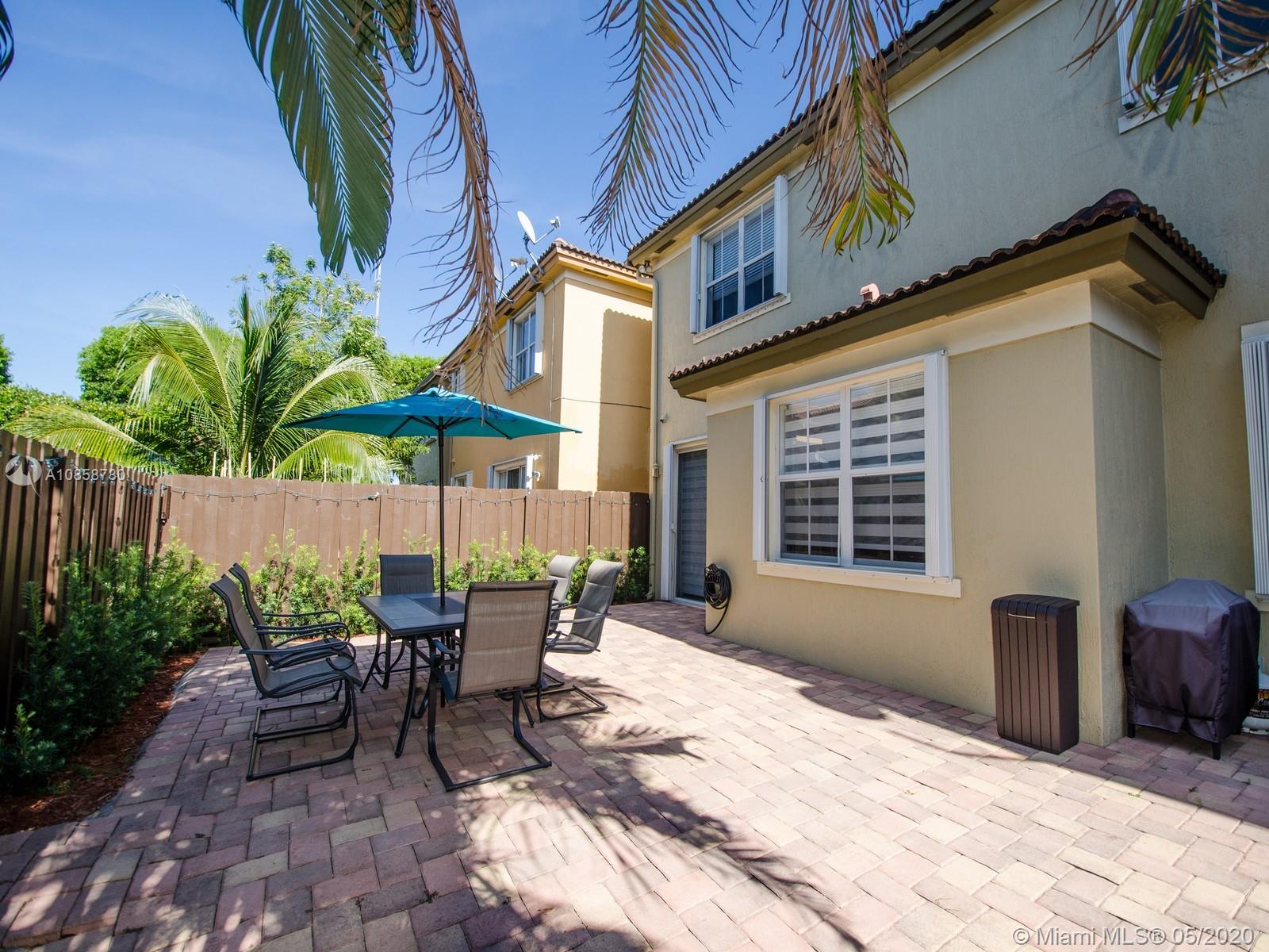 Two Story well maintained Couch Home, 3 bedrooms 2.5 bathrooms, tile on the first floor, laminated on the second floor, open kitchen, with lots of cabinets, corean counter top, fenced backyard with beautiful landscaped, 2 covered car garage, accordion shutters. Maintenance include two community clubhouse, with swimming pools, gyms, tennis and basketball courts, inside and outside playground for kids. Great Location near excellent schools, very good restaurants, shopping's, supermarkets, Banks, Miami International Airport, Beaches are 15 minutes away, easy access to Mayor Highways
