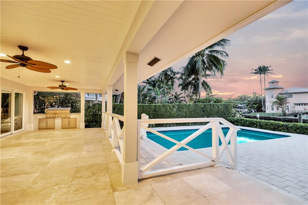 Exclusive Bay Colony private gated waterfront community. Ideally situated minutes from Intracoastal Waterway. Completely remodeled. Coastal design offers abundance of natural light and open floor plan. Features formal living area, family room and dining room areas, bonus office/gym room with half bath. Chef's kitchen with gas stove, top of line appliances and fixtures, wine cooler and custom cabinetry. Large master suite with walk-in closets, light filled master bath with separate shower and free standing tub. Three additional bedroom suites. All new impact windows and doors, A/C Garage. Outdoor entertaining area with covered patio, summer kitchen, fire pit, pool and cabana bath. New landscaping and new dock.