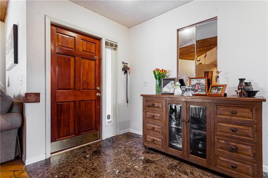 Tranquil 3 bed 2 bath lakefront retreat, featuring vaulted ceilings and private atrium. Views of the lake can be seen from the master bedroom, kitchen, living room as well as the large back patio perfect for evening cookouts. Master suite features a cedar lined walk-in closet and an updated bathroom with walk-in shower. Oversized one car garage with washer/dryer and access to extra storage in the attic. Updated bathrooms and kitchen make this a true turn-key experience.