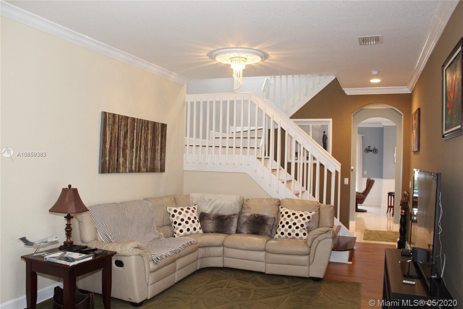 Rarely available spacious townhome in Cimarron. This boutique community is located in the heart of Davie close to Parks and A rated schools. The corner unit is nestled at the end of the community with a wetland area in front and no neighbors in back. Recently remodeled with new flooring including in laid wood stairs, crown molding, new appliances, high ceilings, recessed lighting. The master bath has been completely remodeled. Each bedroom has a walk in closet with two walk ins in the master. The kitchen extends into the family room or it could be a formal dining room your choice. The family room area leads out to a nice size covered patio which is great for entertaining or just sitting outside with a cool drink. Full sized garage with extra storage. Call for a private showing today.