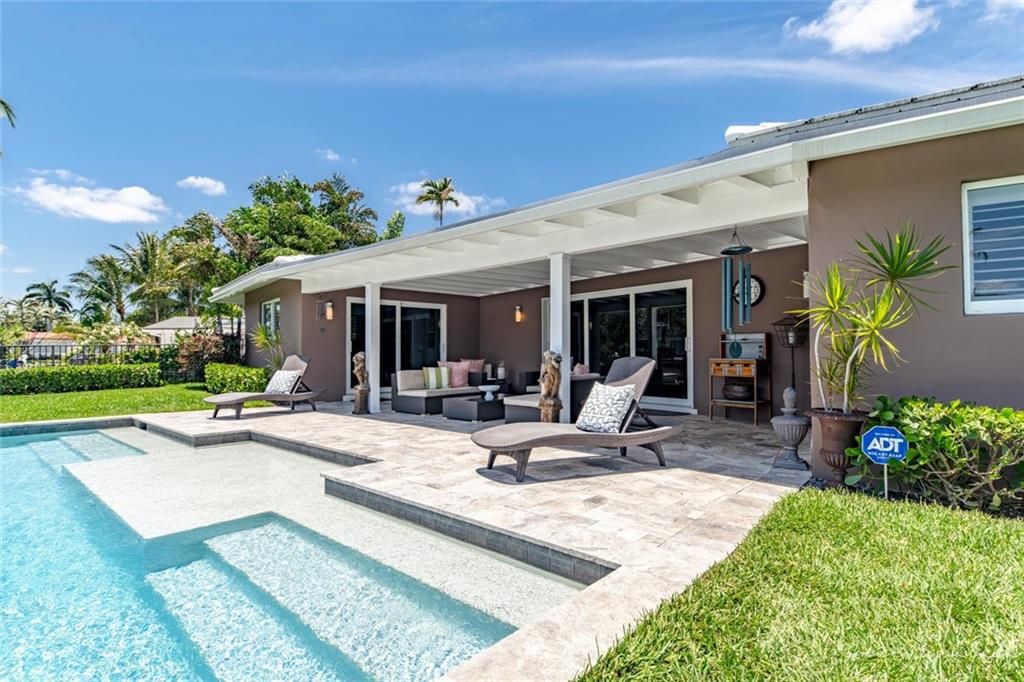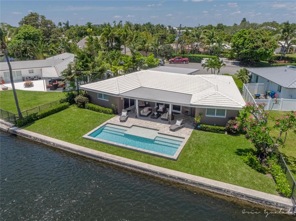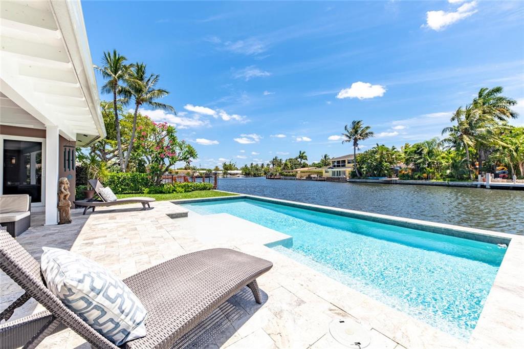 This is the waterfront home you've been waiting for! Imagine relaxing out back by the pool overlooking the river from this 3 bedroom 2 bath home in the Coral Shores neighborhood of Fort Lauderdale. A stunning contemporary home with wide expansive river views on a quiet cul-de-sac street, off the main road. Interior features a gorgeous modern chef's kitchen with Quartz counter-tops, stainless appliances and wine cooler. A split bedroom plan Terrazzo floors throughout the house. Hurricane Impact windows and doors. A wall of glass sliders that lead out to a large covered patio overlooking an infinity edge pool and waterway. Stack stone exterior, Newer Tile roof is less than 3 years old. Extra storage room. Lush tropical landscaping adorns the property. Marble pavers and so much more.