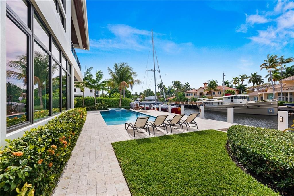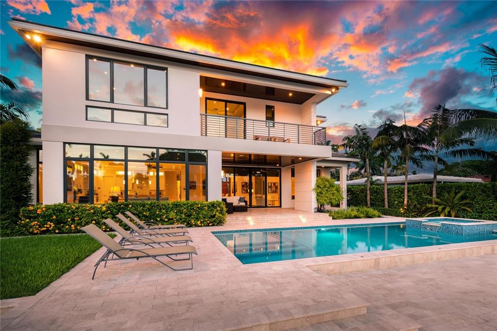 Timeless architecture in this Recently built Randall Stofft designed Waterfront home in Seven Isles! This stunning 4 BR/4.5 BA residence, boasts over 5700k TSF, with impeccably curated interiors and baths, volume ceilings and expansive glass. Chefs kitchen with Thermador appliances, Great Room, Dining and Living areas all open to the water and flow to generous covered loggia, leading to heated salt water pool and spa & 80' concrete dock. Home theater, full cabana bath, plus a dramatic powder room. 2nd level with 4 BRs, 3 face the water, a luxurious Owners suite, with sumptuous Bath, two walk-in closets and a tranquil terrace. Huge Utility area and reading nook complete the floor. Control 4/Lutron, Elevator, Natural Gas, Security Patrolled 7 Isles. Minutes to Beach, Las Olas & DWTN.