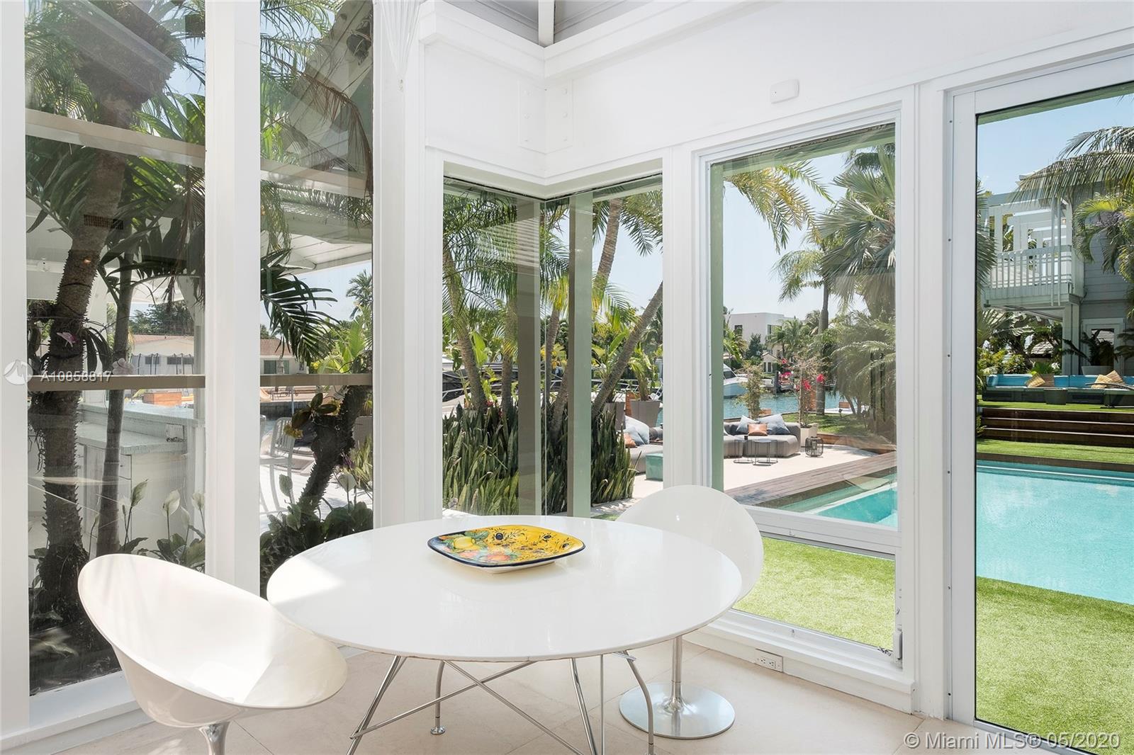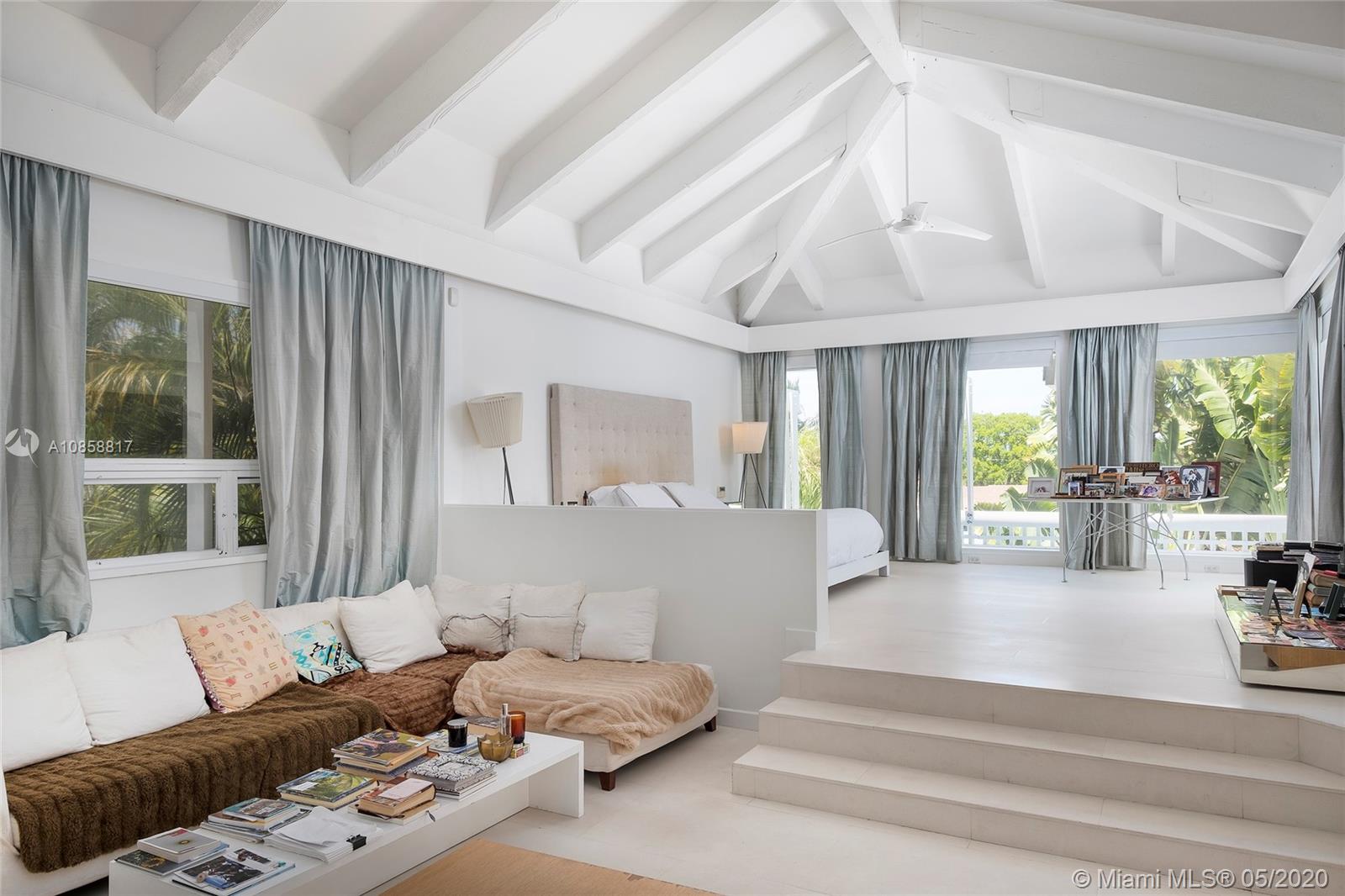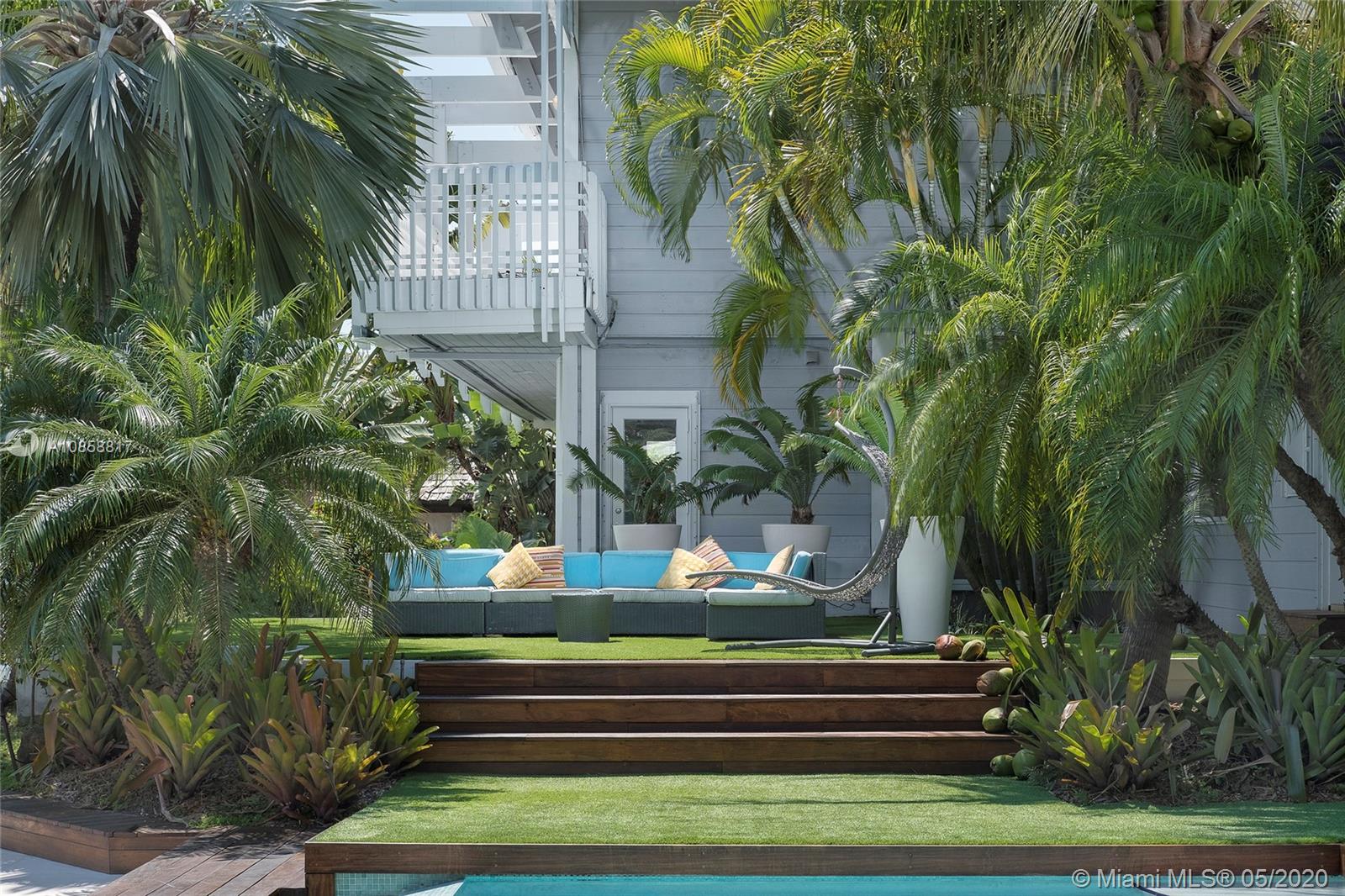 Exceptional St. Barth’s style tropical 18,750 SF double lot estate. Features 6,771 Adj SF area plus professionally designed open layout kitchen/dinning/living provides an ideal lifestyle for large dinner parties, entertaining or lounging w/family. High ceilings & impact sliders bring in natural light making for an incredible indoor/outdoor feel. Private master suite encompasses entire 2nd level & features high beamed ceilings, living area, office & 2 walk-in closets. Luxurious limestone master bath w/free-standing deep soaking tub, glass shower & access to huge private terrace offering open water bay views. Exterior features infinity edge pool, covered bbq/bar pavilion, curated landscaping, 150 FT dock w/no fixed bridges & direct ocean access. Minutes to Bal Harbour shops & beach.
