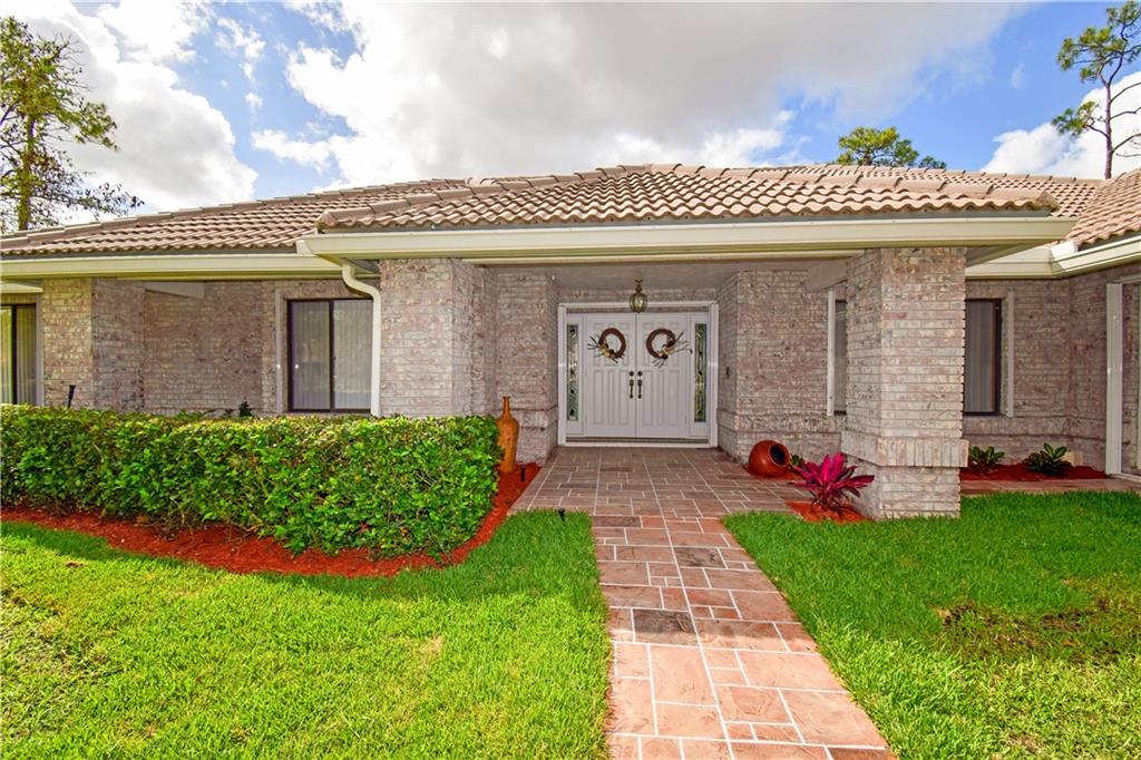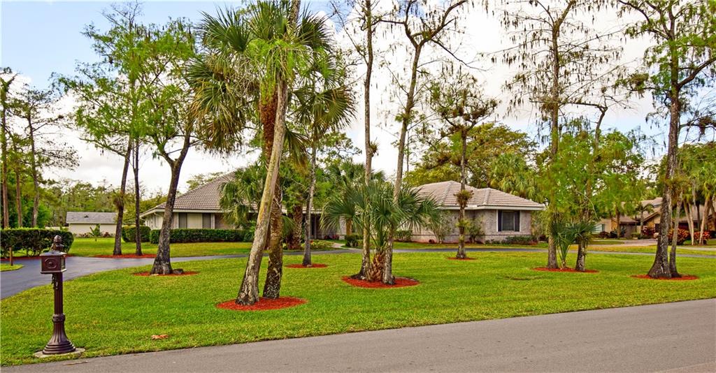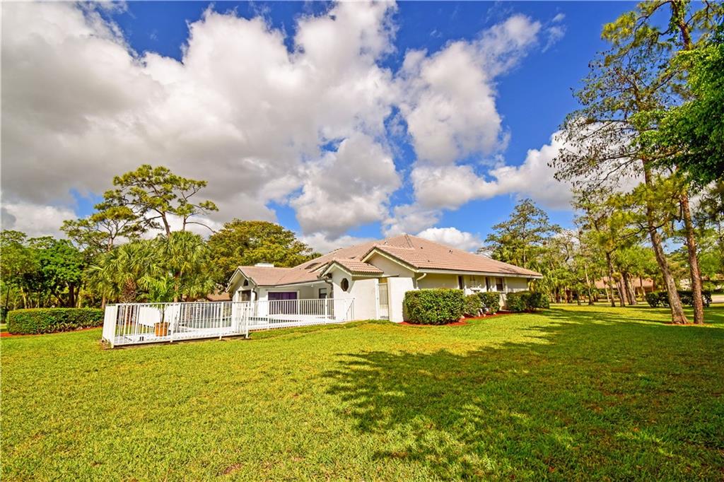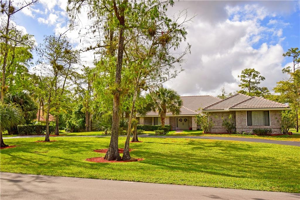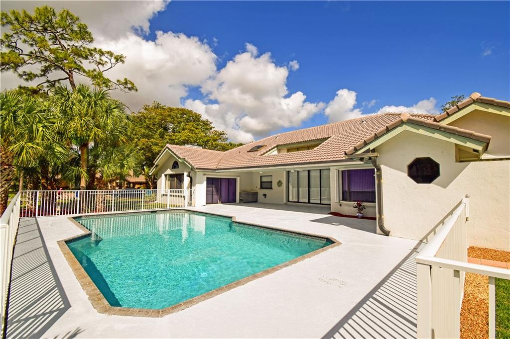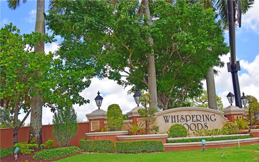 Spacious 4/3 pool home on corner acre homesite in desirable development of Whispering Woods. Quality construction & well maintained. Home site offer a lot of privacy. Too many features to list here: volume & vaulted ceilings, split bedroom floorplan, formal living & dining, renovated kitchen with large eat-in component, extra large family room with stone fireplace & wet bar with kitchen extension, full hurricane shutters (accordion & panels) & hurricane impact garage doors, covered patio with built-in grill, 3-car garage with extra tall doors & attic access, well for main sprinklers, City water for sprinklers next to home... $12,500 buyer credit offered at full price. 24/7 guard gated. Conveniently close to everything: HWYs, plazas w shopping & restaurants, parks, schools, hospital...