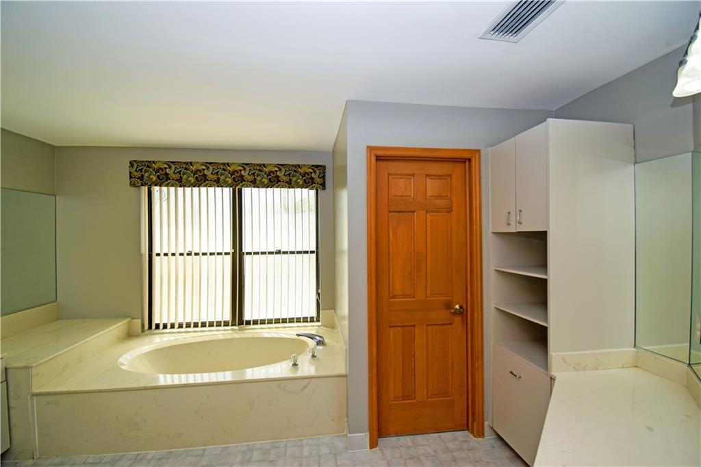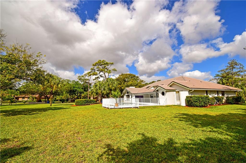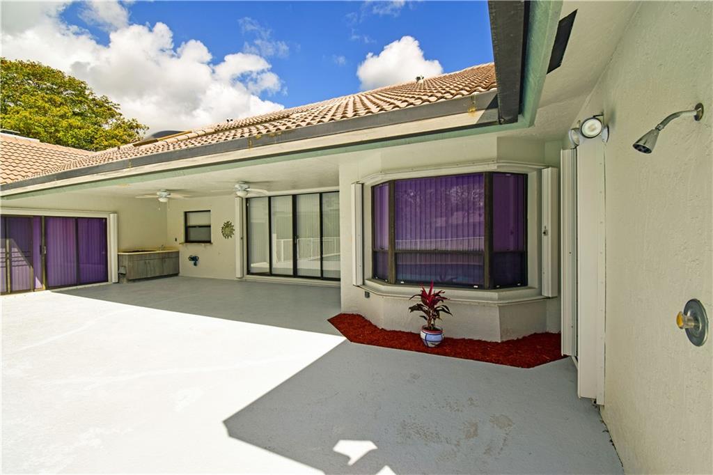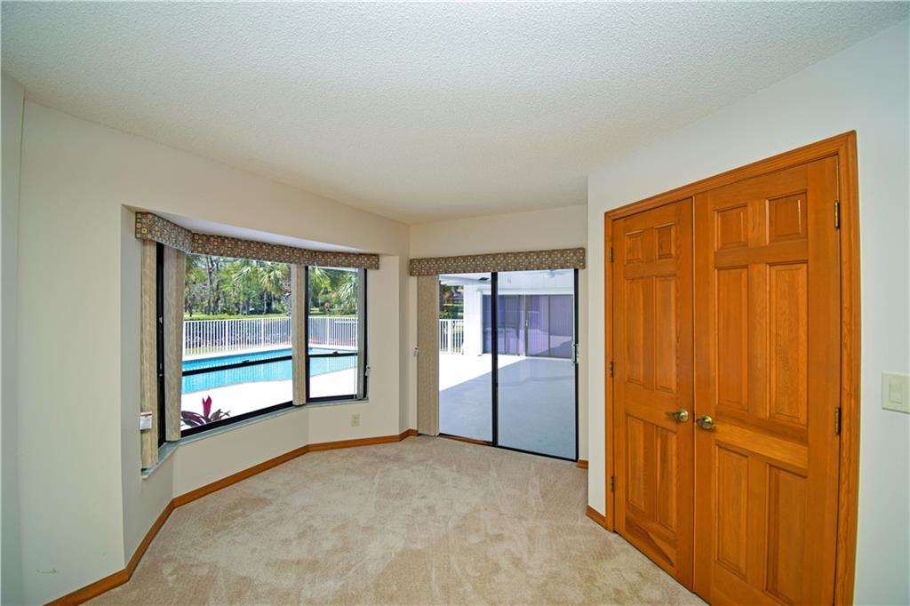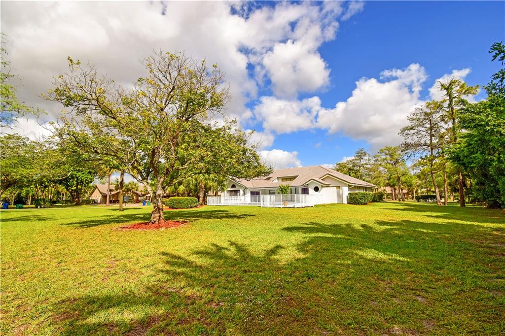 Spacious 4/3 pool home on corner acre homesite in desirable development of Whispering Woods. Quality construction & well maintained. Home site offer a lot of privacy. Too many features to list here: volume & vaulted ceilings, split bedroom floorplan, formal living & dining, renovated kitchen with large eat-in component, extra large family room with stone fireplace & wet bar with kitchen extension, full hurricane shutters (accordion & panels) & hurricane impact garage doors, covered patio with built-in grill, 3-car garage with extra tall doors & attic access, well for main sprinklers, City water for sprinklers next to home... $12,500 buyer credit offered at full price. 24/7 guard gated. Conveniently close to everything: HWYs, plazas w shopping & restaurants, parks, schools, hospital...