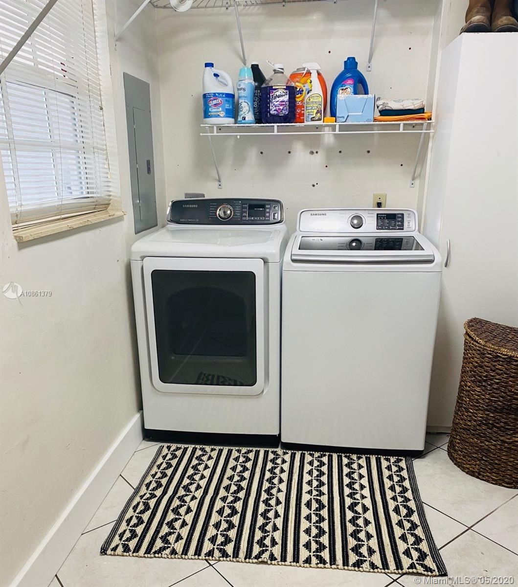 Tastefully remodeled. New roof installed 2019, As per Owner this is a 3 bedrooms and 2 bathroom with a downstairs half a bath. New Kitchen & SS Appliances 2019, Washer & Dryer 2019, Bathrooms remodeled, AC is 2019 and New Tank Less Water heater. All lights have LED lighting through out the whole home. Top and back according shutters with Panels for the front of the property. Brand new yard fence with terrace exterior and shed. Property is in Excellent condition.