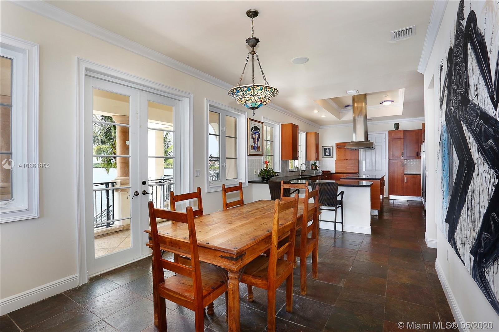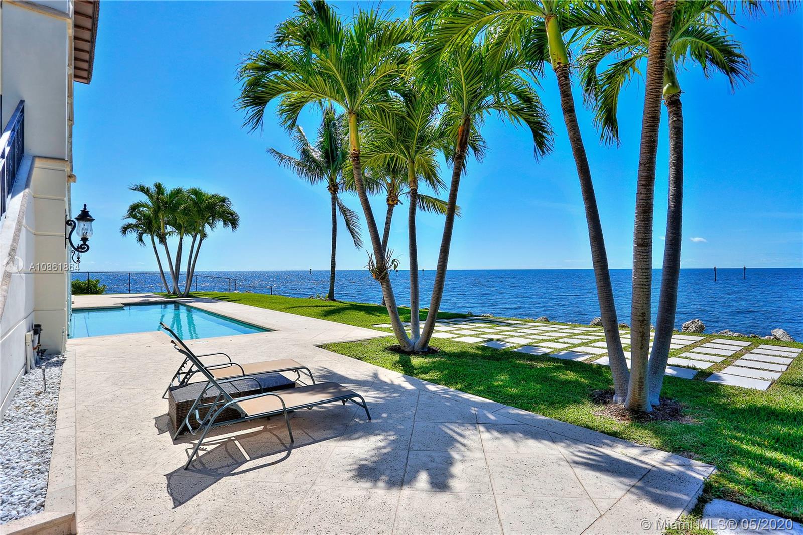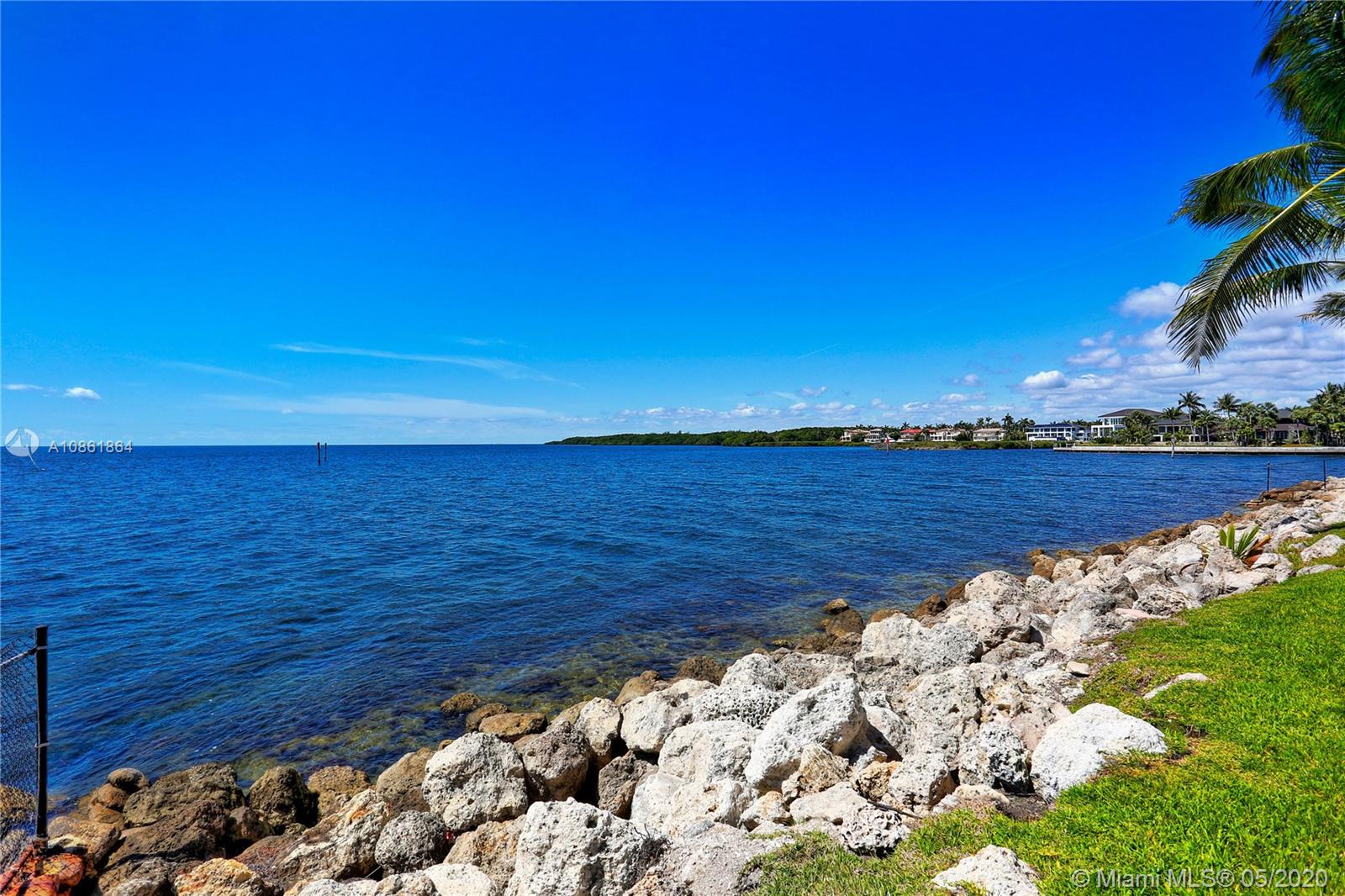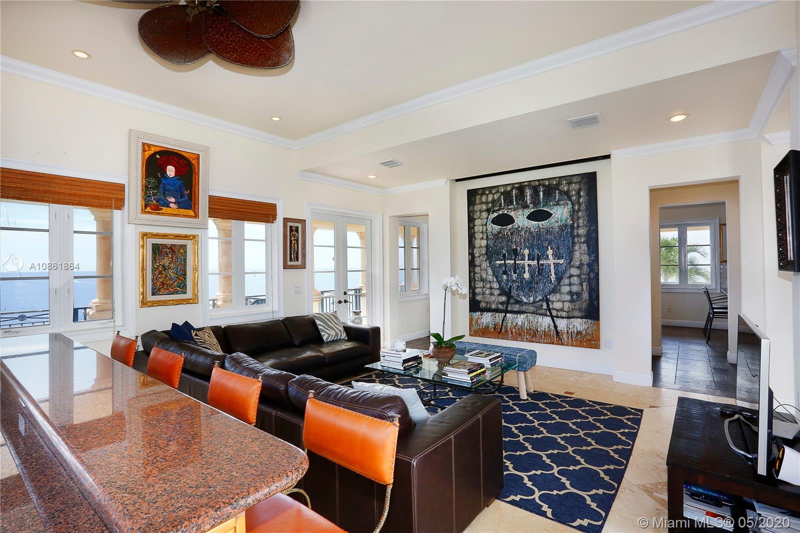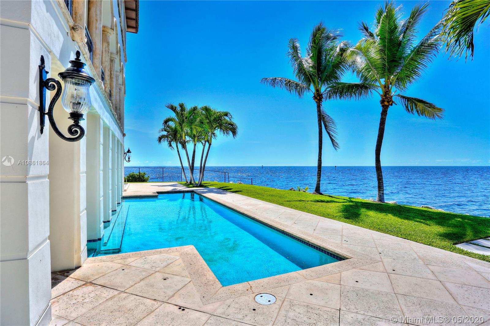 Stunning Palladian style bay front estate commanding the best location in the gated community of Gables By The Sea. Breath-taking views of the bay from the spacious living areas, gourmet eat-in kitchen with top quality appliances, split floor plan with a private balcony access from each bedroom, impressive master suite, marble, wood and slate flooring, open roof top terrace, heated pool, lush landscaping and 2 car garage. New owner can build a dock at this property.