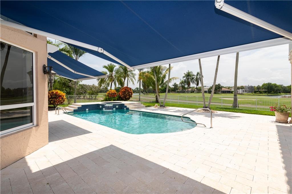 Welcome home. Situated one of the most desired lots in Santa Barbara and all of Grand Palms, this majestic estate home boast 4 Beds + Office, 3 baths, 3 CG. The open floor plan features a stately master bedroom suite on the main floor with an elegantly remodeled master bath. Volume ceilings and open floor plan makes for ideal family living. Large open kitchen and family room boast impressive views of the golf course, lake and tropical pool, providing a seamless transition from indoor to outdoor entertaining. This home has been impeccably maintained and offers impressive upgrades, including a brand new roof, high impact windows/doors, motorized blinds, retractable awnings, remodeled baths, oversized driveway. You'll appreciate all that this home offers, most of all the unparalleled views.