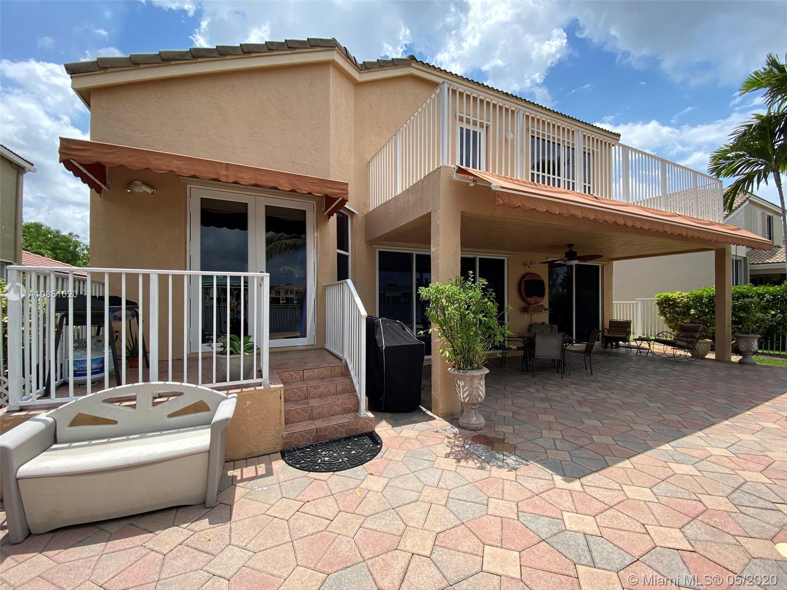 Beautiful & luxurious 2-story, 3-bedrooms & 3-baths (original floor plan 4/3), 2-car garage, pool/lake family home. Master bed on 2nd story w/balcony overlooking lake. Many upgrades:custom kitchen cabinets granite counter & backsplash, stainless steel appliances, washer & dryer, upgraded lighting, tile & wood flooring, awnings. Great schools. Gated community w/security & clubhouse w/exercise facility, community pool, tennis & basketball courts. Immaculate & Quick Move-In Condition. All furniture negotiable. Must See!